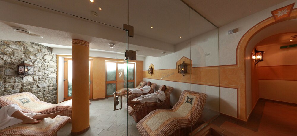 Das Hallenbad war super, das Wasser perfekt warm. Am besten man geht um die Mittagszeit und nachmittags bis 16 uhr oder abends ab 19 uhr. Dann ist am wenigsten los. Der saunabereich ist für dieses hotel echt super geworden. Klasse Saunen mit Blick zu den bergen.
