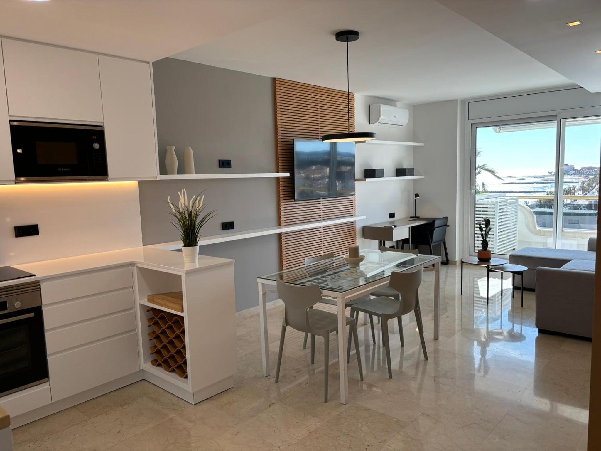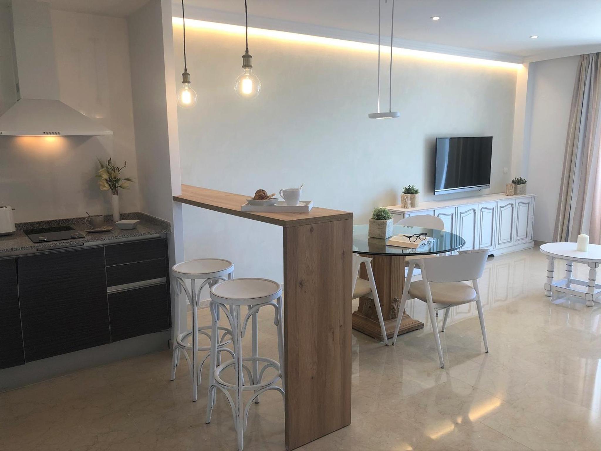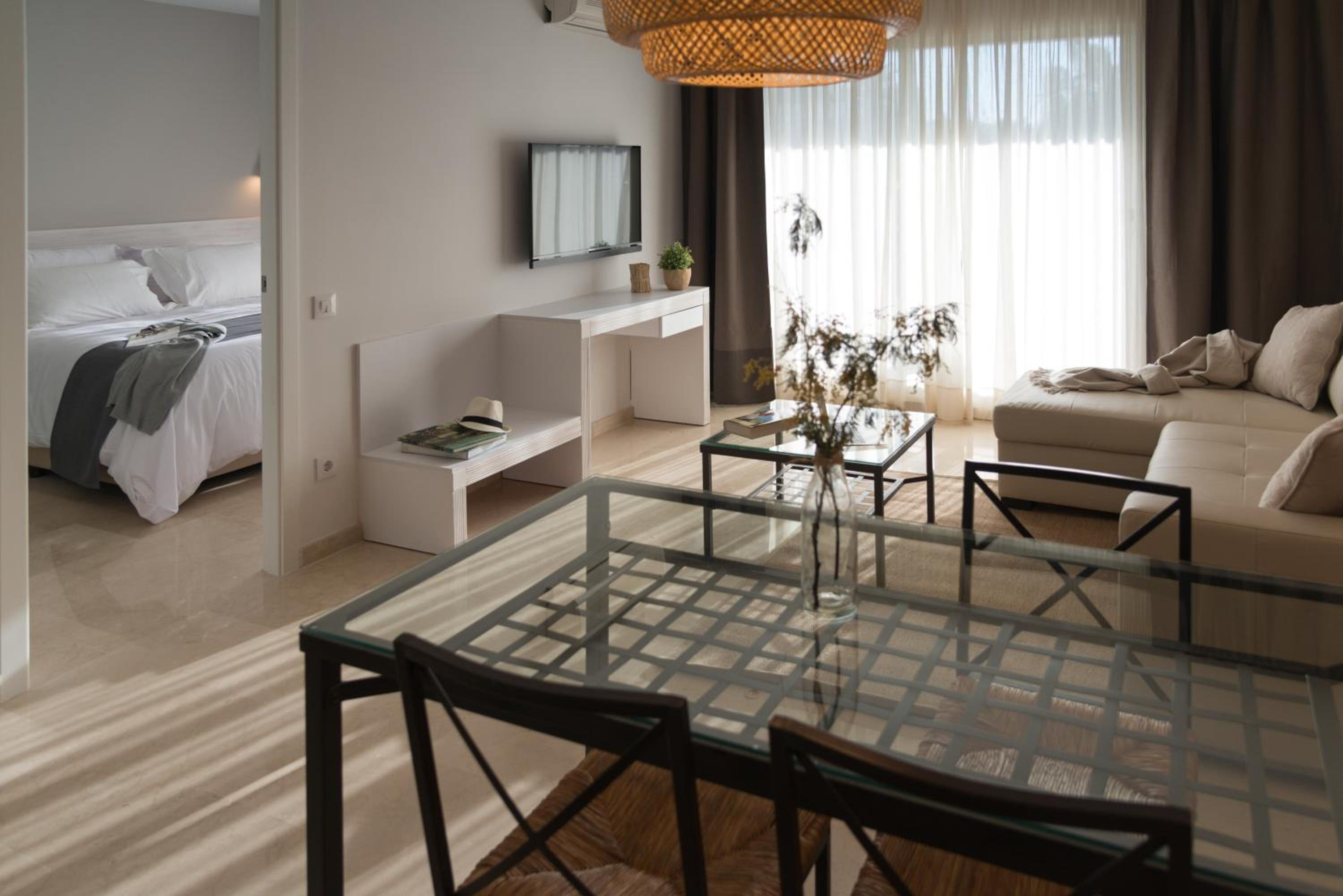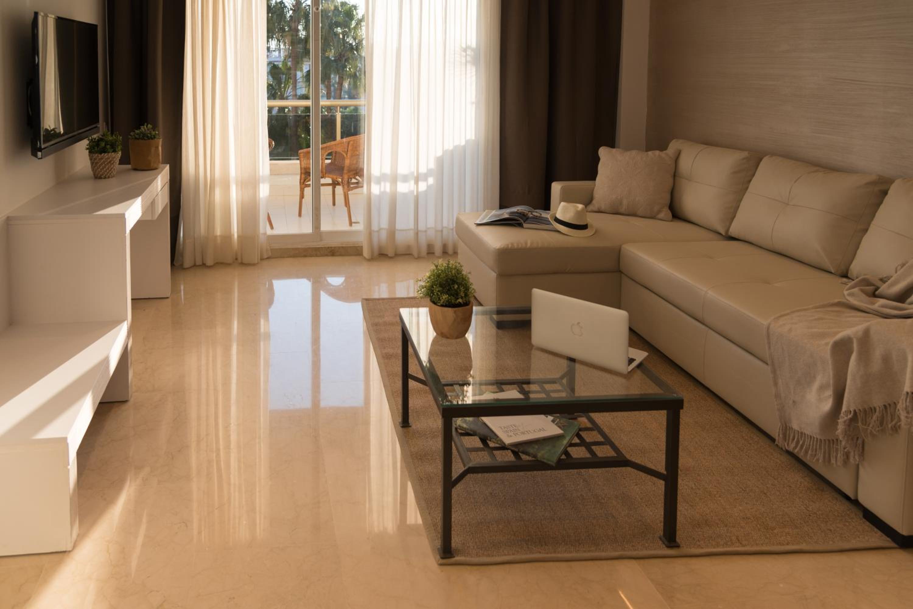 Experience comfort and style in our modern apartments equipped with flat-screen TVs, marble bathrooms, and private terraces. Enjoy the convenience of an equipped kitchen and the luxury of sea views from most terraces.