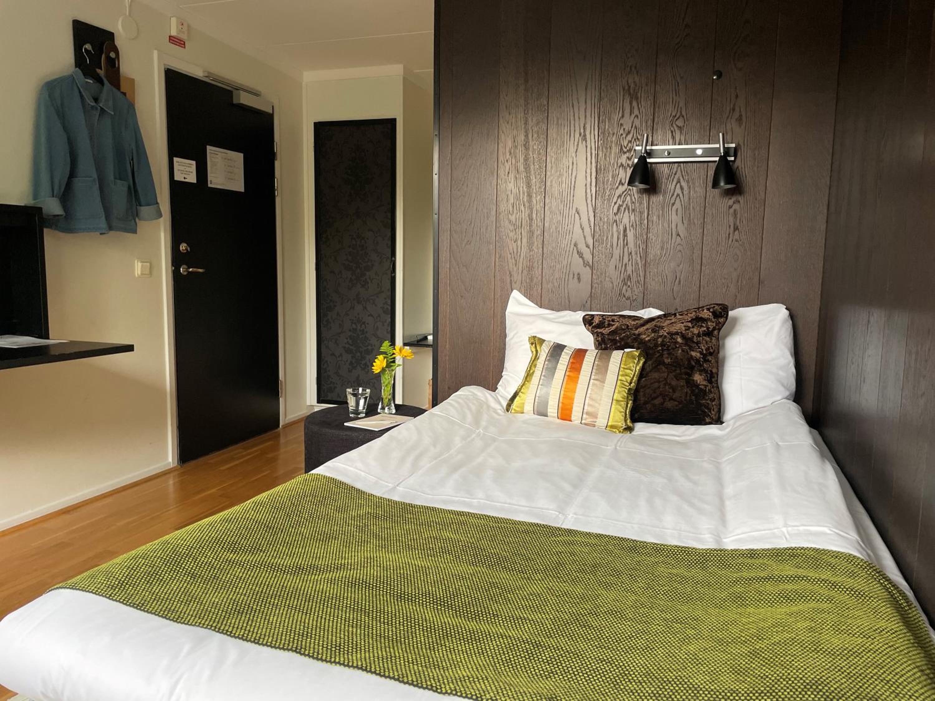 The breakfast was phenomenal! Tons of options, most of it was organic, and all of it was very tasty. The location was lovely, very quiet and peaceful but close to town. It was easy to get to the town and local attractions by walking, taking the bus or borrowing a bike from the hotel. The windows had black-out shades which made it easy to sleep even when the sun was up late in the Swedish summer. There is a nice swimming spot within walking distance.