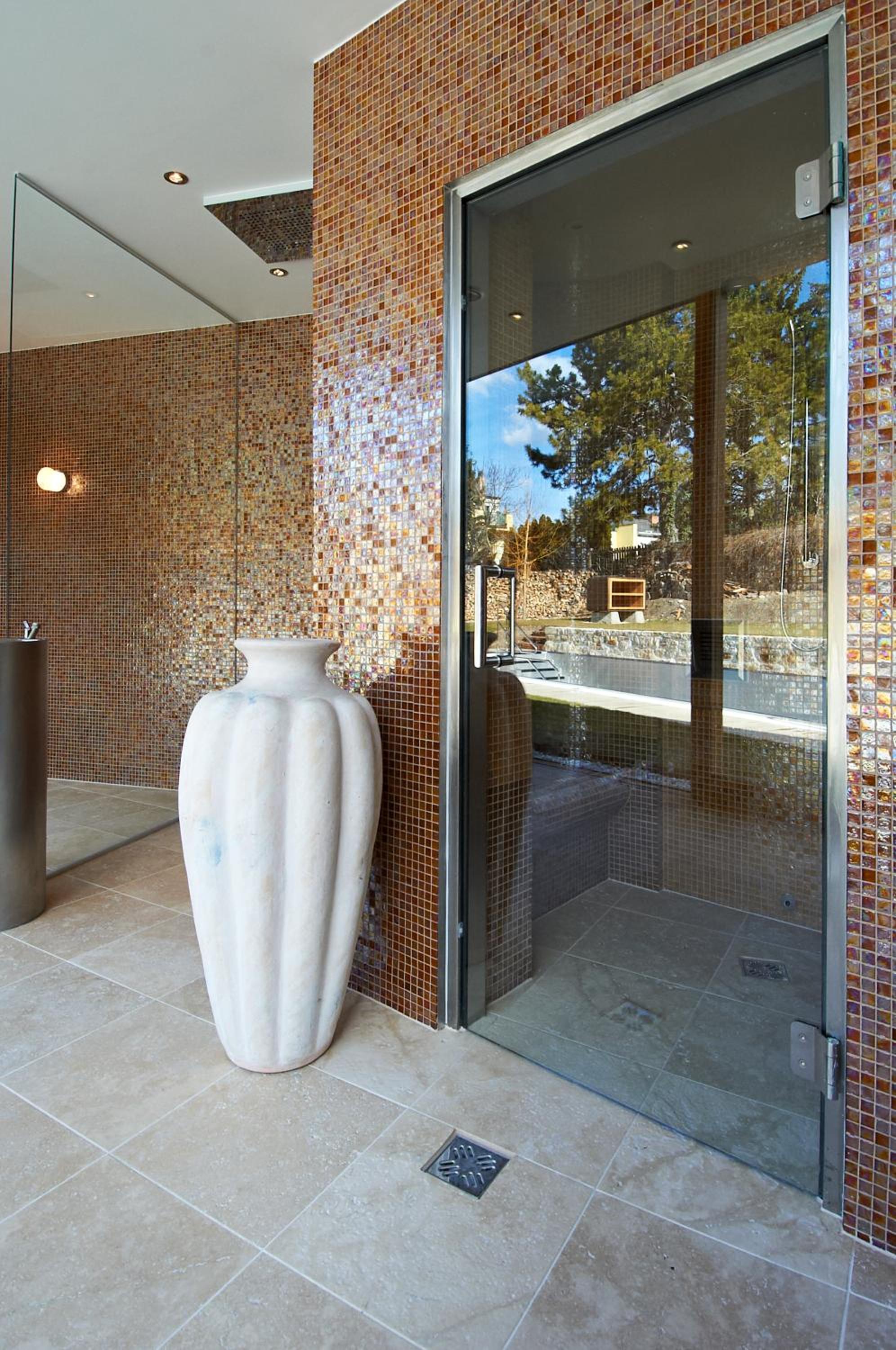 Guests can unwind in the on-site wellness area, complete with a sauna, steam bath, and outdoor swimming pool. During summer, the sunbathing terrace is the perfect spot to soak up the sun and relax.