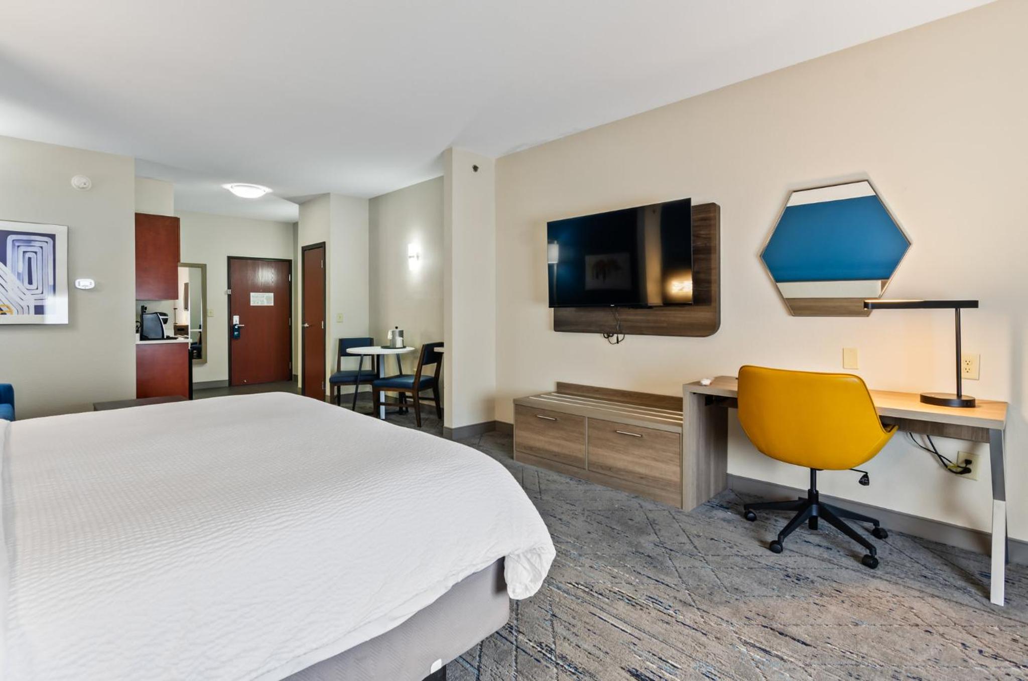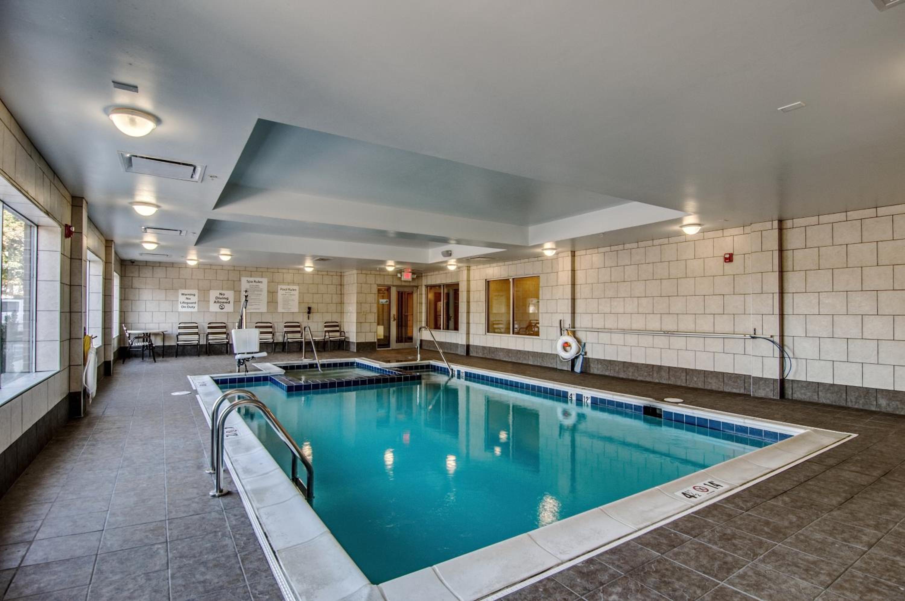 Start your day with a complimentary breakfast offering hot coffee, fresh fruit, and pastries. Unwind in the indoor pool, fitness center, or hot tub for ultimate relaxation.