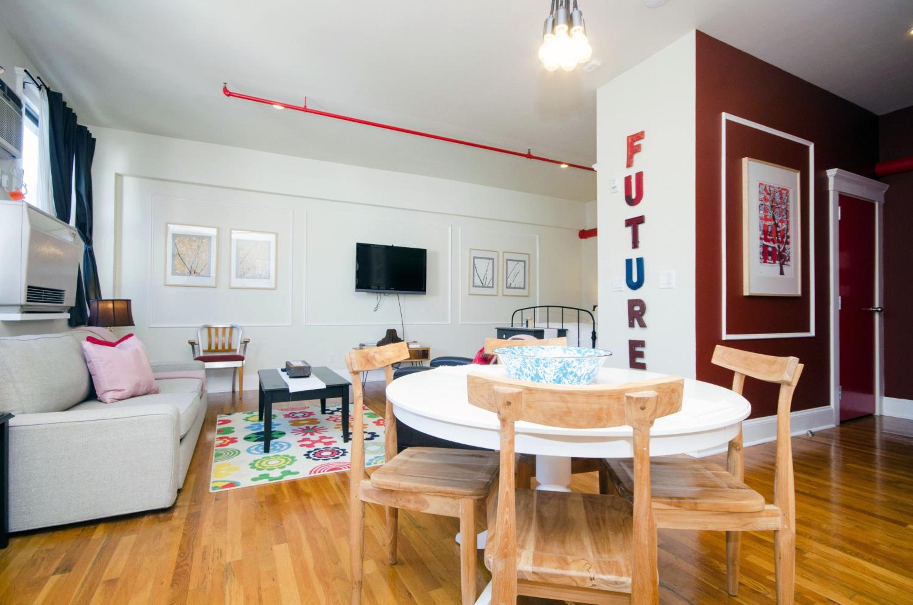 Experience a unique stay at our converted factory hotel in Greenpoint, Brooklyn. Each loft and suite is adorned with curated original artwork, offering a blend of creativity and comfort.