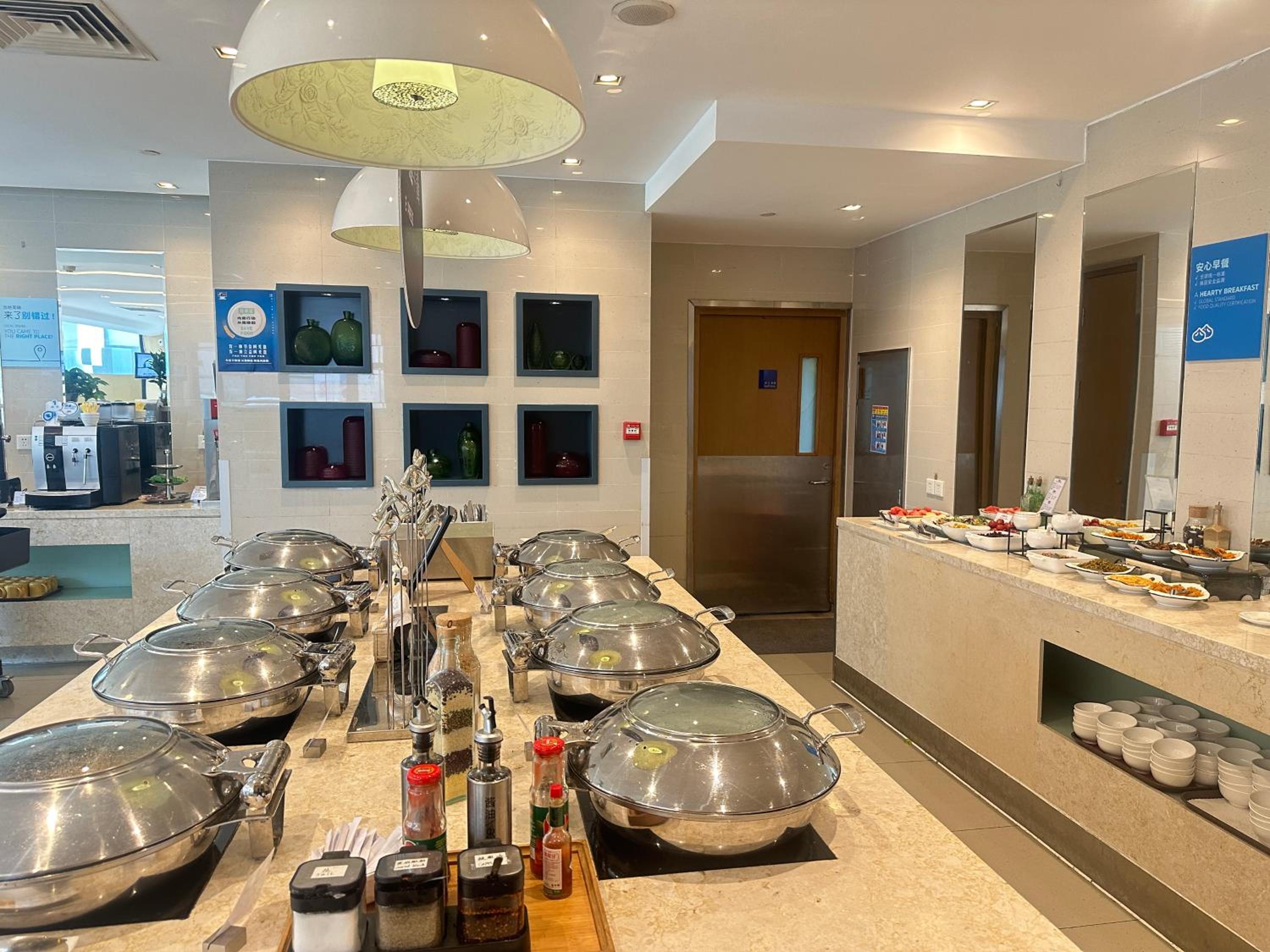 The hotel's modernly decorated rooms provide a cozy retreat with amenities such as a seating area, electric kettle, and complimentary toiletries in the bathrooms. Guests can enjoy a variety of Western and Chinese dishes at the Great Room restaurant.