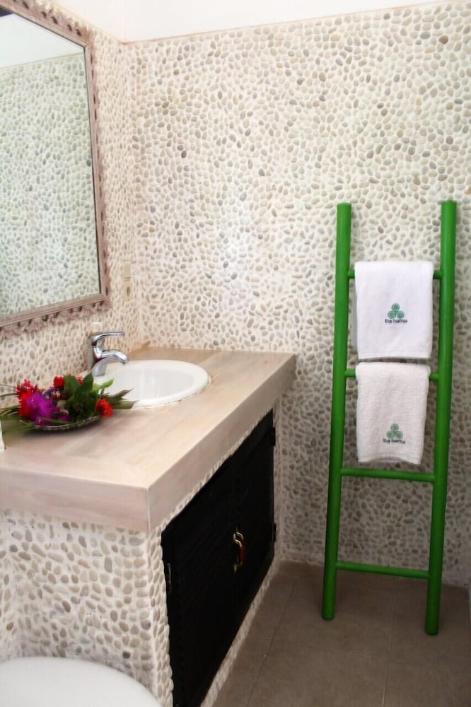 Beau complexe hôtelier, les bungalows et les installations ont du charme, néanmoins il y a un manque d'entretien des espaces verts,(plantes desséchées, abimées) et des structures (une tuile décorative tombée du toit de notre bungalow qui est là depuis tellement de temps qu'elle est recouverte de végétaux et sert de nid à insectes, les cascades de la réception qui ne fonctionnent plus, les bassins à poissons verdâtres,le couvercle des toilettes cassé, la poubelle SdB sale à l'exterieure,...) l'hôtel est en travaux sous la piscine... mais je suis sûre que le propriétaire en a conscience et saura améliorer cela.