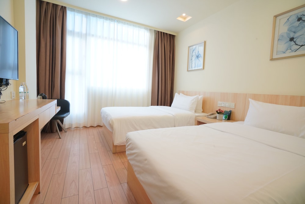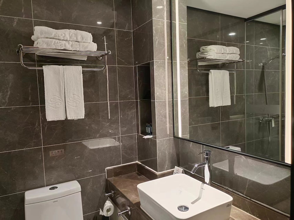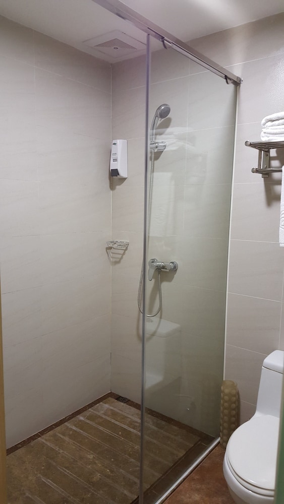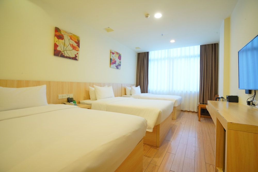 The cleanliness of this hotel leaves a lot to be desired. There is clearly flood damage in the room, yet they still allowed this room to be rented out. Wallpaper near the windows was wet and falling down. The carpets was wet and dirty. I think they know hence they provided slippers for us. During our 1 night stay there. There was a few mosquitoes in our room despite the air con being on the lowest and the mosquito repellent plug being put on. Another minus for this hotel is that although it is next to the train station. To try a get a taxi of didi (Chinese Uber or grab) is extremely difficult as the policemen outside do not allow the cars to stop there