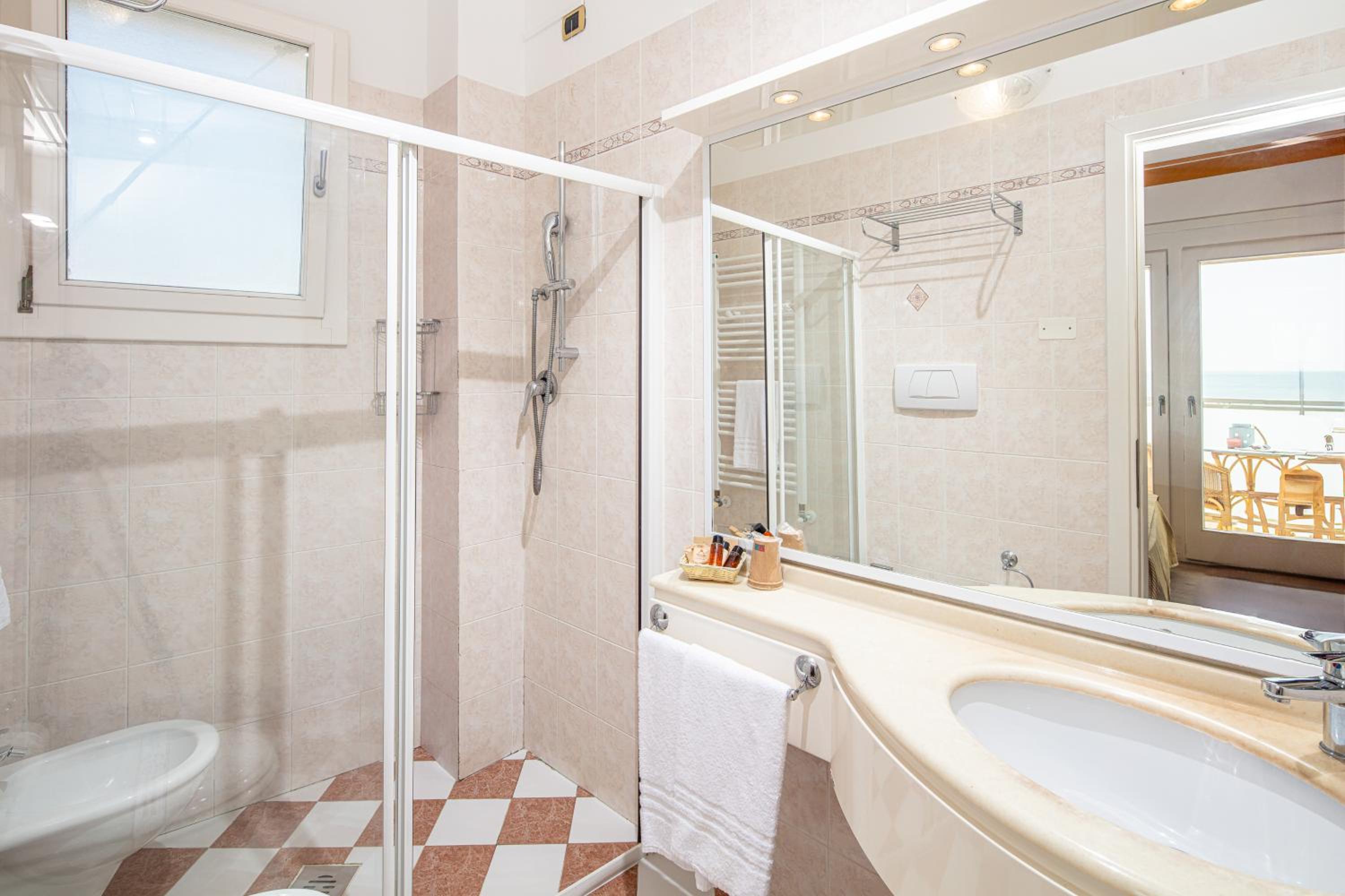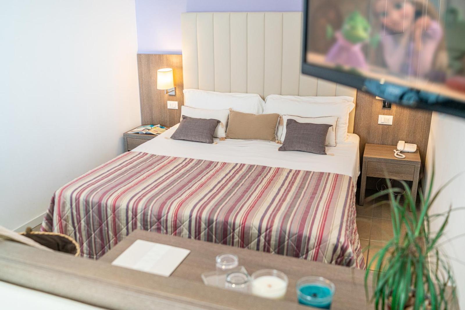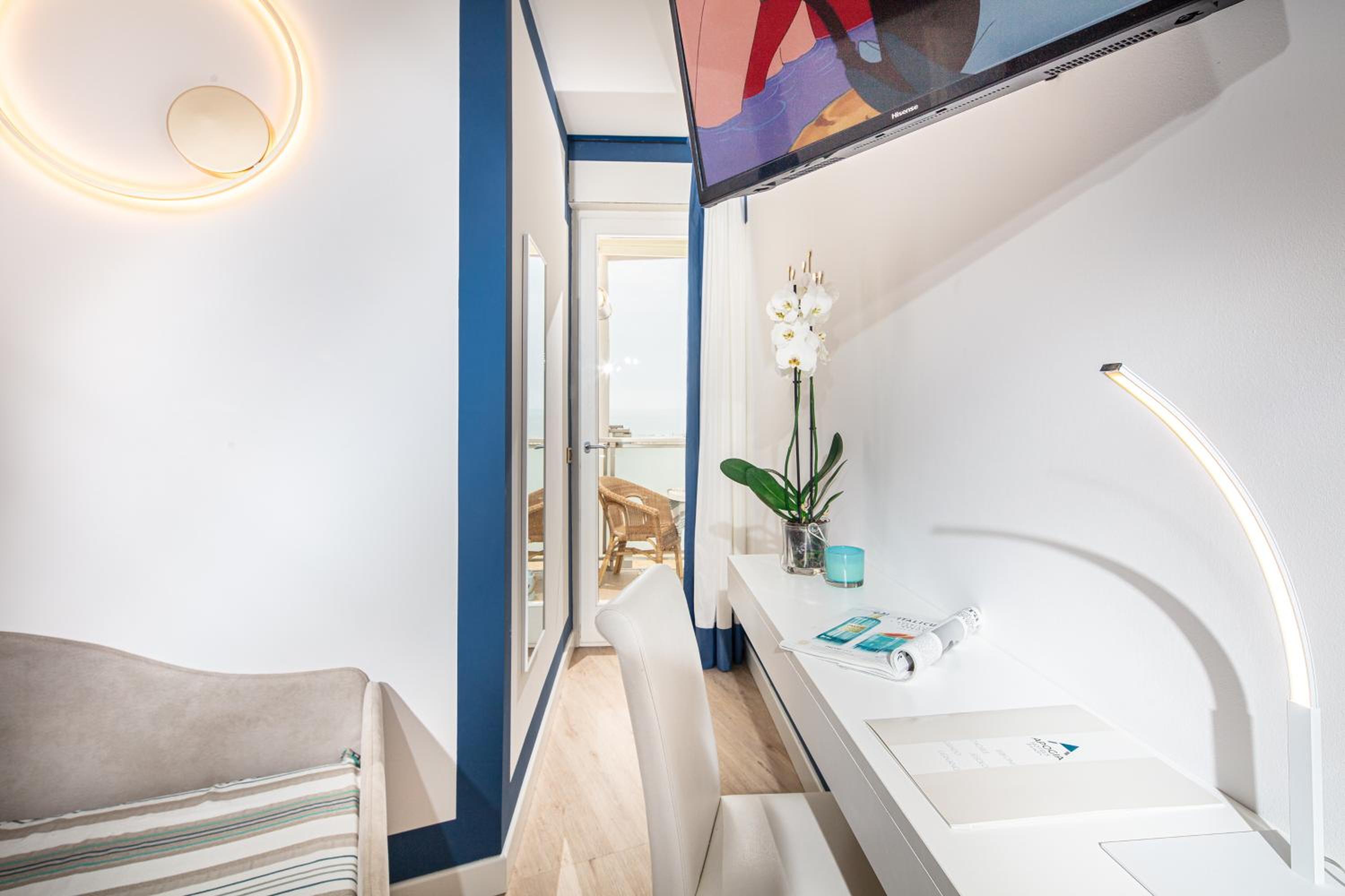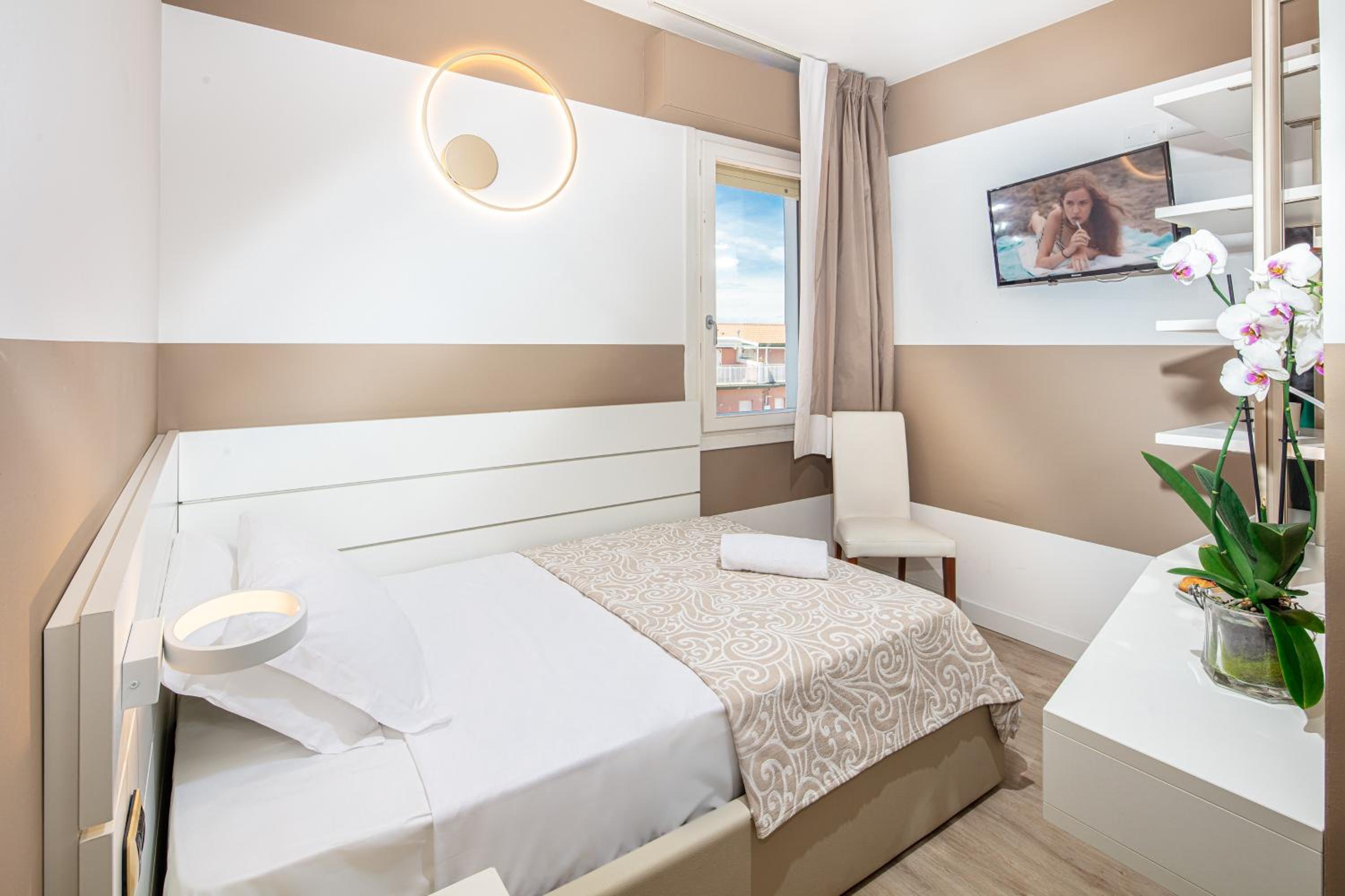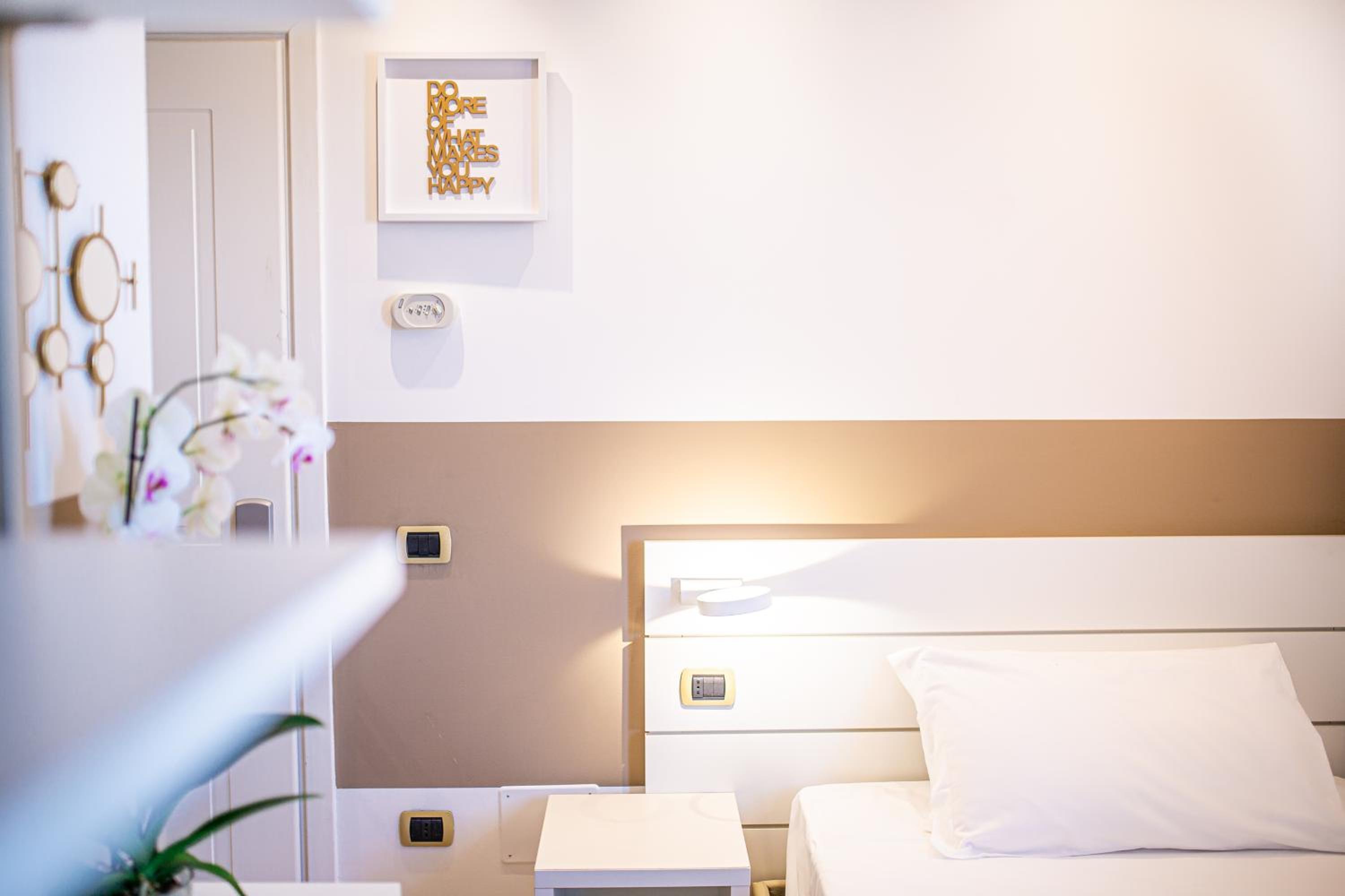 Az egész szálloda nagyon rendben van. A szobában praktikus rakodóhelyek, nagyszerű fürdőszoba. A személyzet, különösen az esti recepciós hölgy és az úr a bárban nagyon kedves és segítőkész. Nagy plusz az ingyen bicikli, perceken belül elérhető vele az óváros. Ingyen napágy és napernyő kis széffel. A reggeli átlagon felüli: olasz reggelihez híven sok édesség, de nagy és igényes választék (crosciutto crudo, parmezán, szárított paradicsom, stb.) a kontinentális reggelit kedvelőknek is. A parkolás nehézkes a városban, de a szállodának pár percnyire van fizetős parkolója (10 Eur/nap).