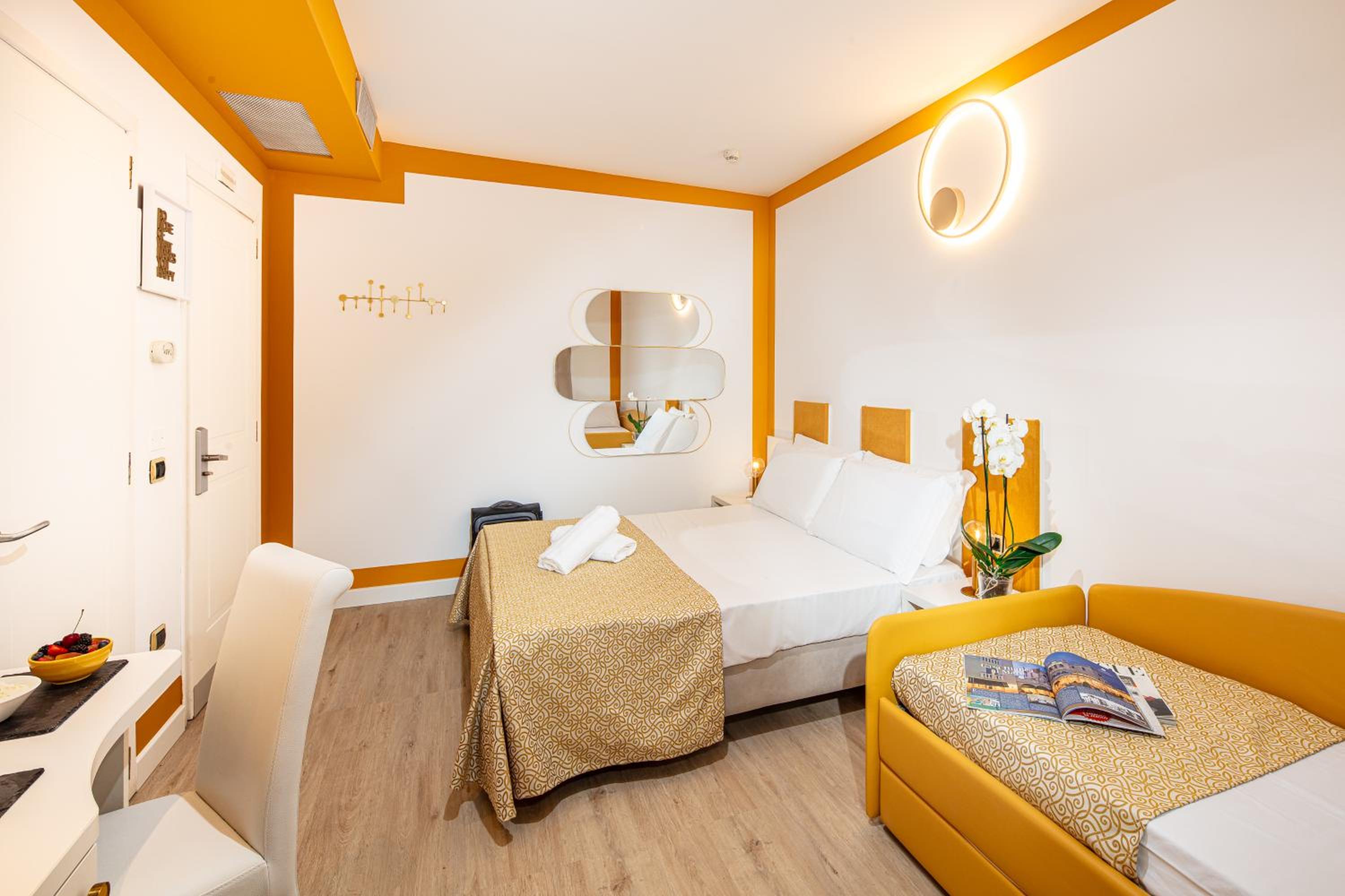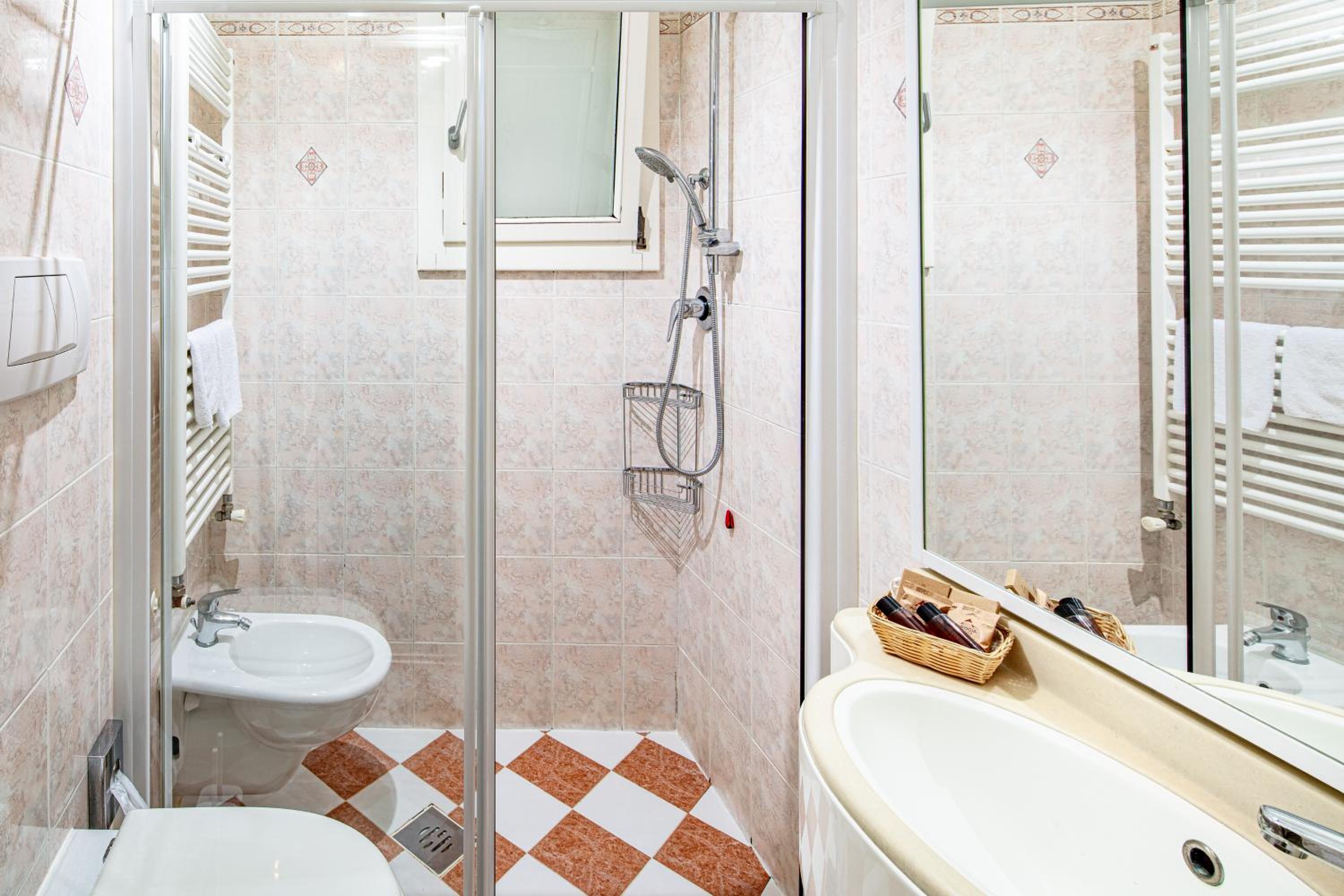 la stanza prenotata era una classic room, quindi le aspettative potevano non essere ottimali. Infatti era piccola per 3 persone con il bidet all'interno della zona doccia (cosa poco gradevole) mentre il lavandino posto in posizione angolare un pò scomodo. Al piano 6 dove si trova il solarium c'era una vasca idromassaggio un pò piccola; quache pianta in più avrebbe dato meglio idea di un solarium. All'ingresso dell'hotel avrei visto meglio una rampa meno adattata, più larga, con pendenza più idonea, per favorire meglio l'accesso ai disabili