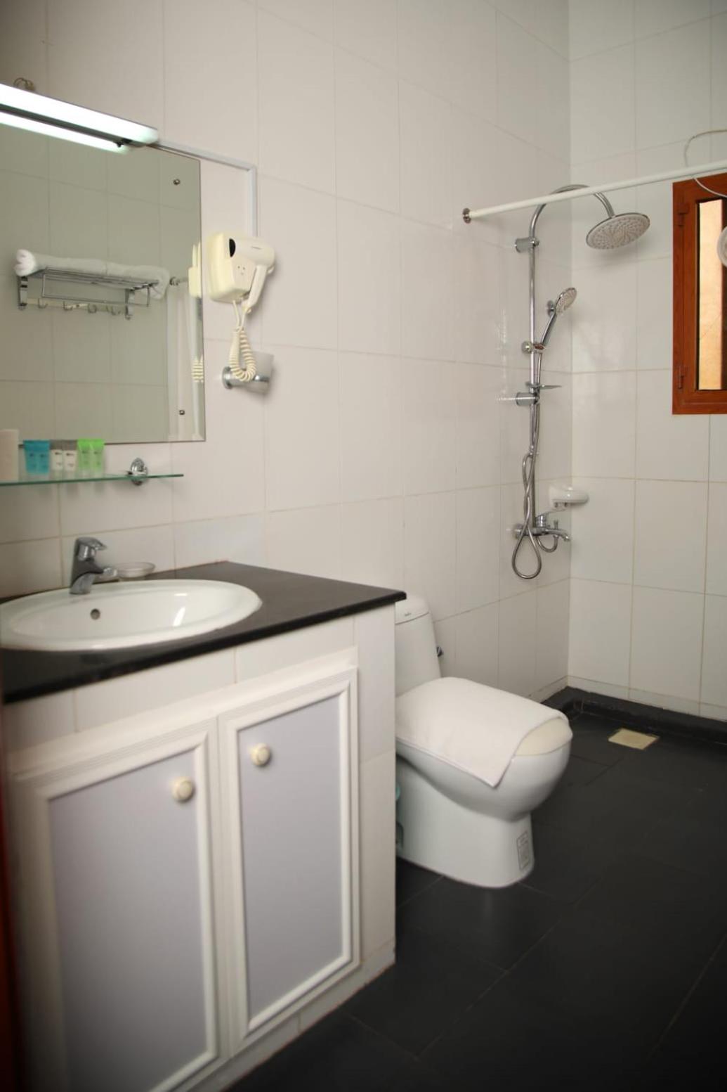Das Frühstück war vielfältig und lecker. Man konnte drinnen oder auf der Terrasse sitzen. Als kleiner Stop auf dem Weg zurück nach Muscat absolut in Ordnung. Das Beste Bad, das wir im Oman insgesamt hatten. Es lebe der Duschvorhang:-)