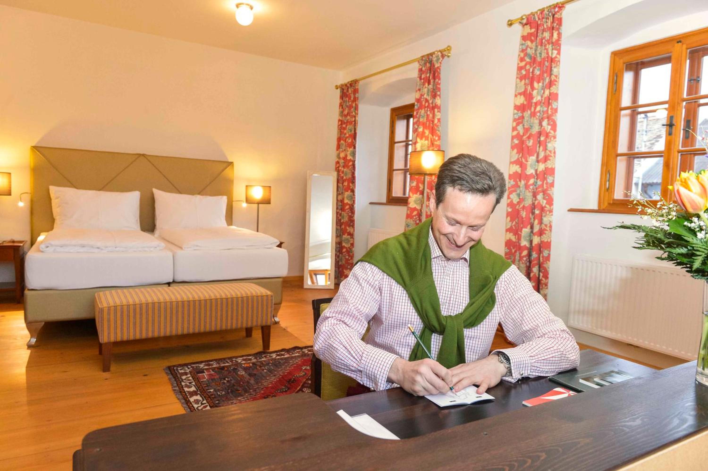Das Frühstück war sehr lecker, das Personal freundlich und aufmerksam. Ich habe hervorragend geschlafen – die Zimmer sind sauber, die Betten groß und bequem. Der Ausblick vom Schloss ins Dorf war wunderschön. Rundum ein sehr sehr angenehmer Aufenthalt! Empfehlenswert