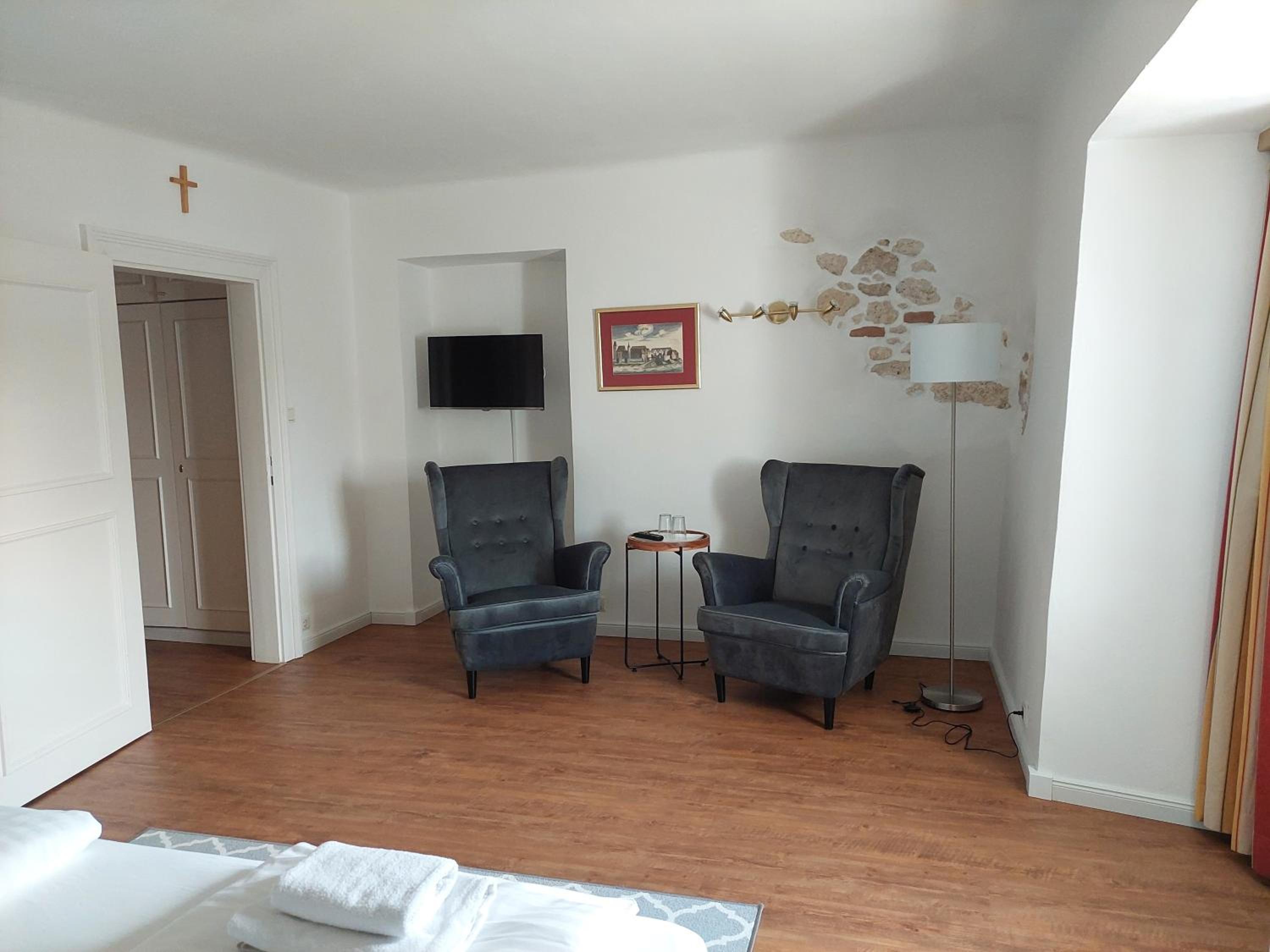 sehr ruhige Lage, schönes sehr sauberes Zimmer, gutes Frühstück , besonderes Ambiente im schön renovierten Schloß mit besonderer Geschichte