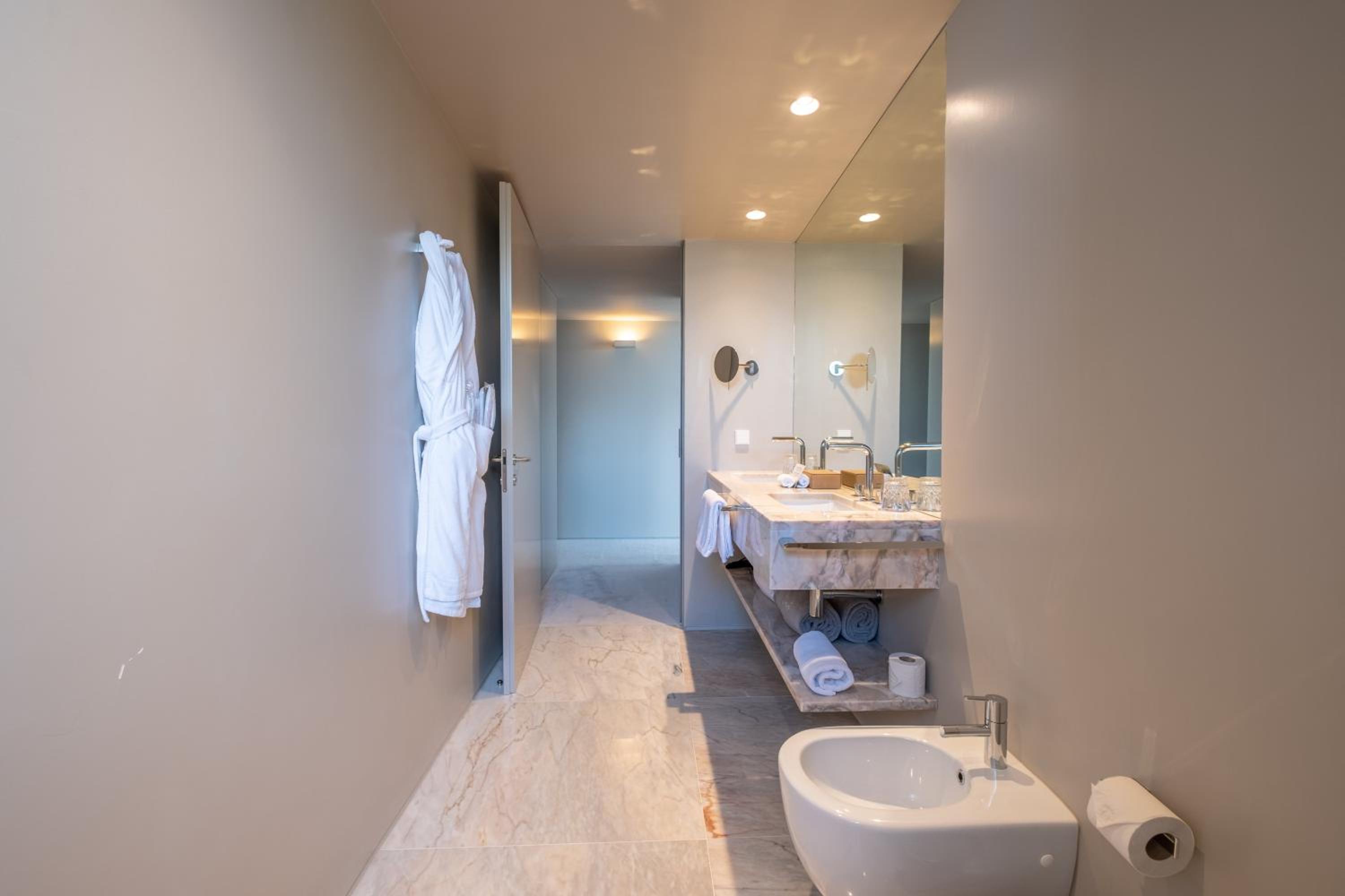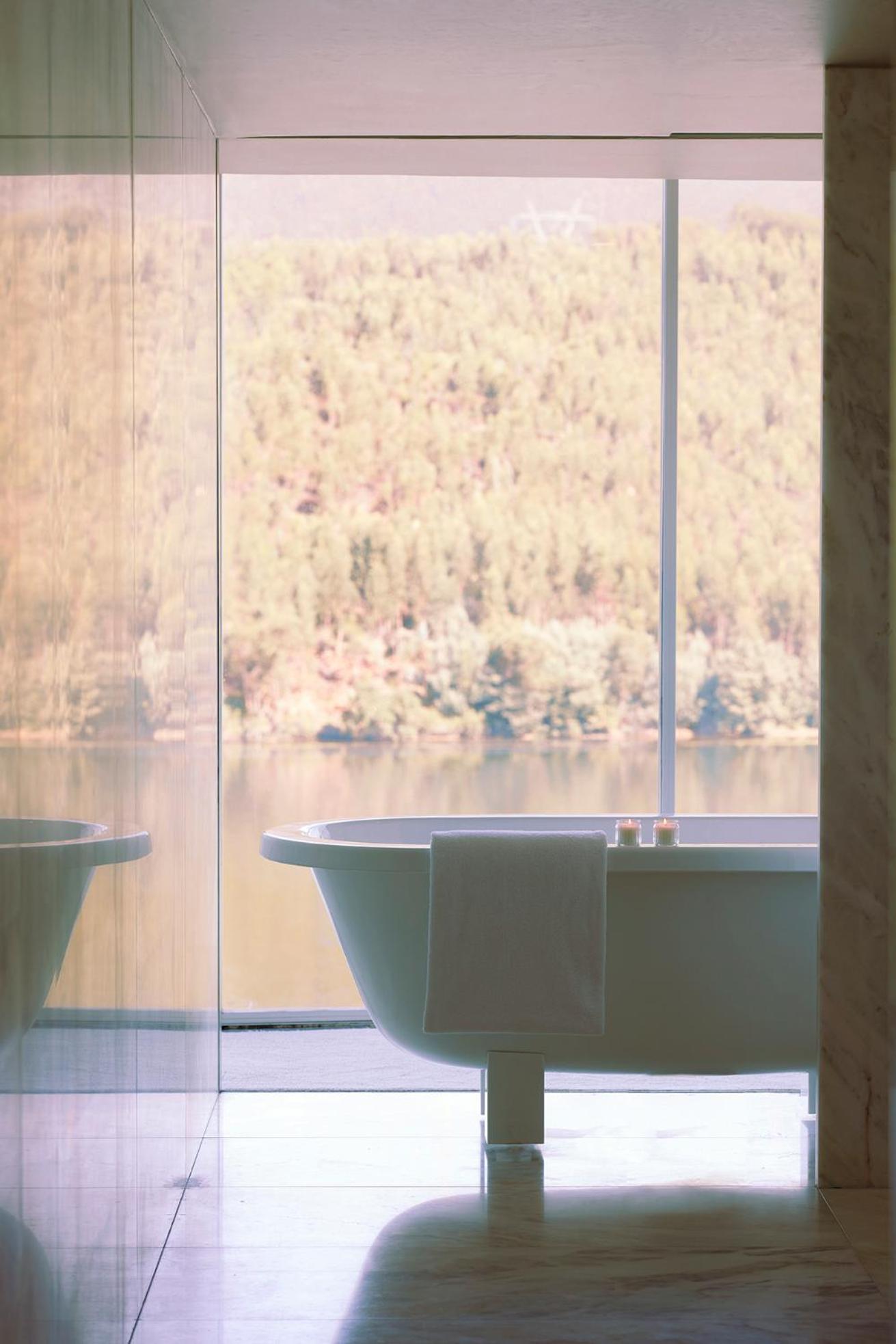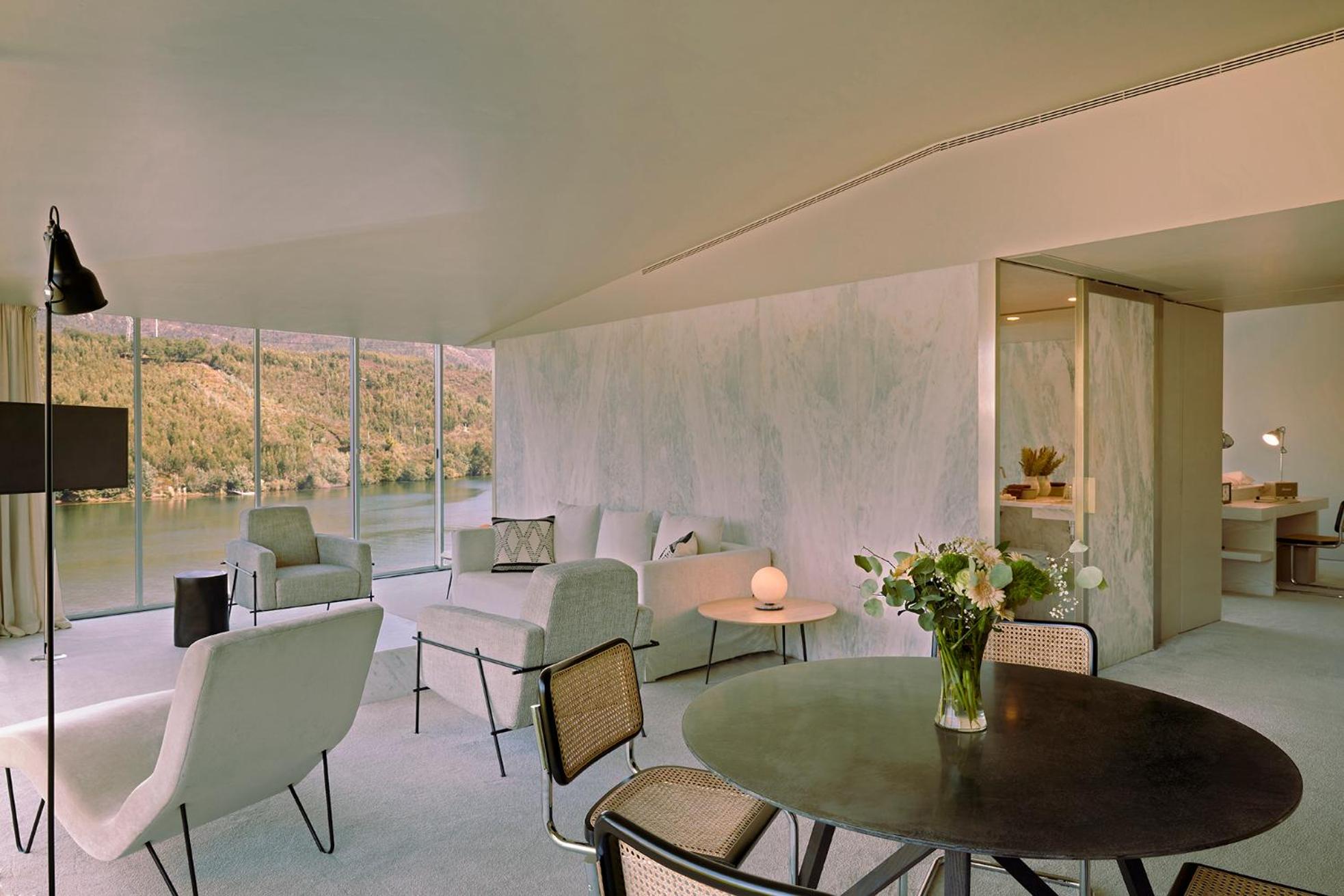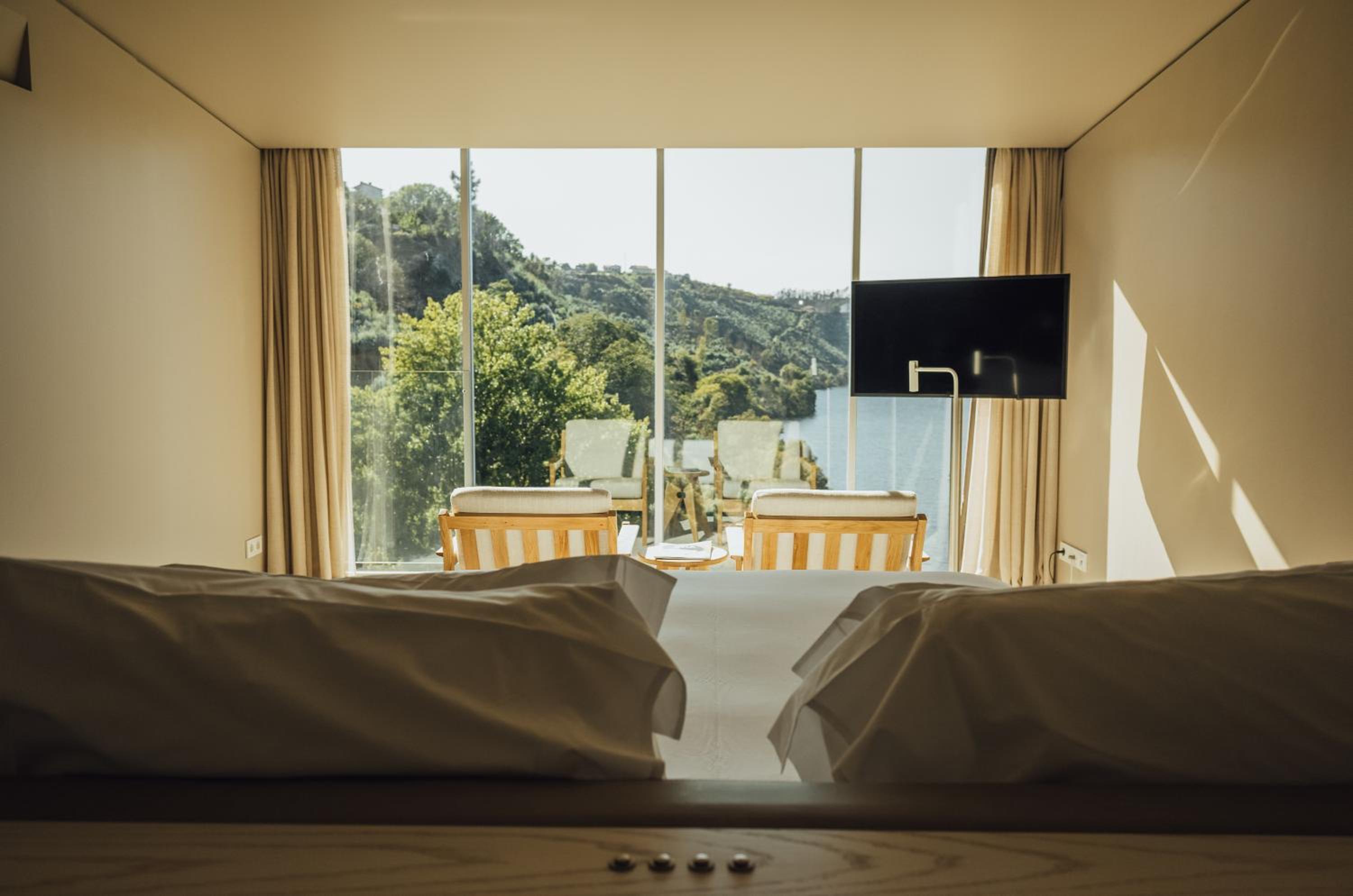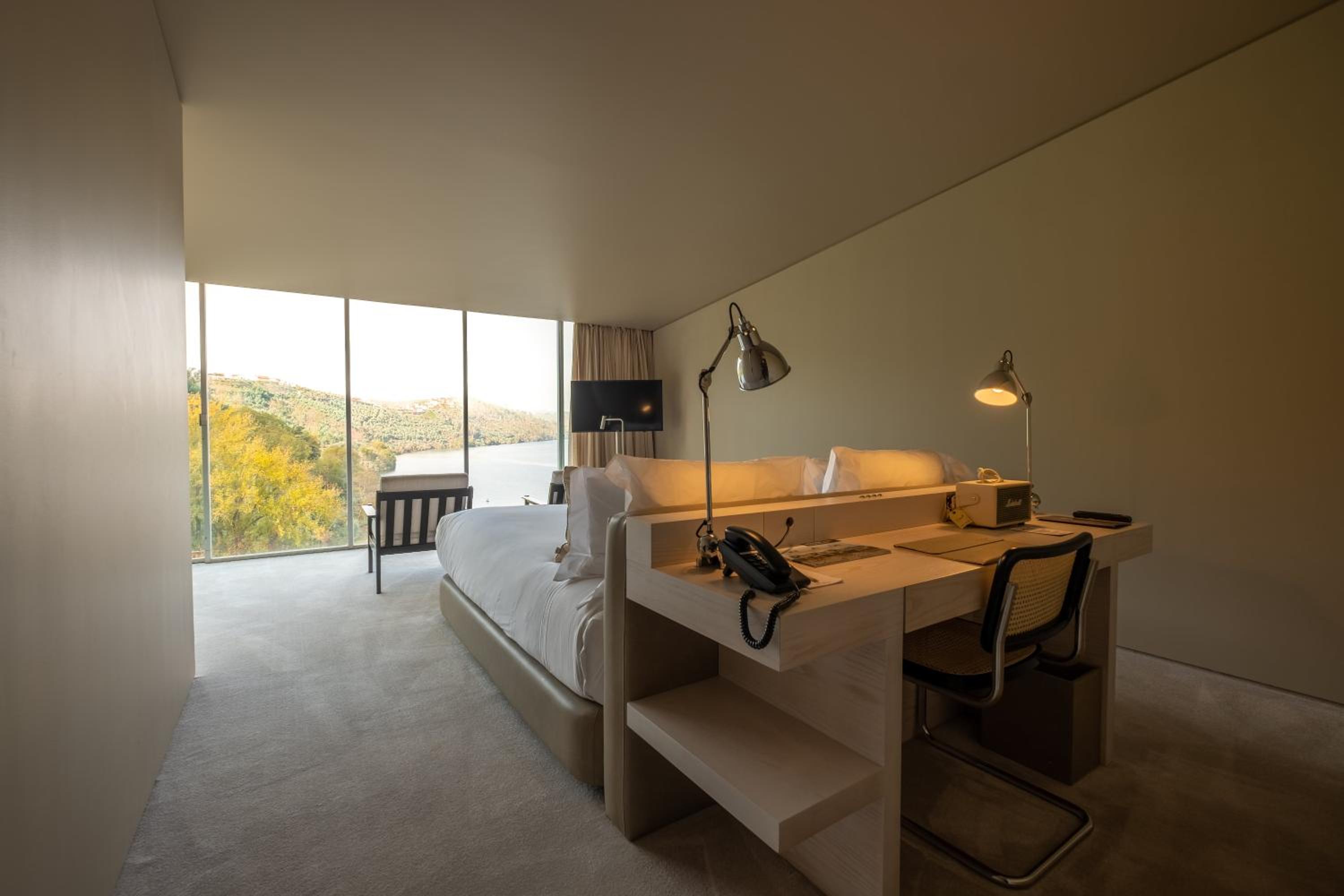 Octant Douro offers 55 rooms and 6 suites, all featuring natural light and panoramic views. Each unit is equipped with modern amenities including a flat-screen TV and free WIFI. The bathrooms are luxurious, with free-standing tubs and complimentary toiletries.