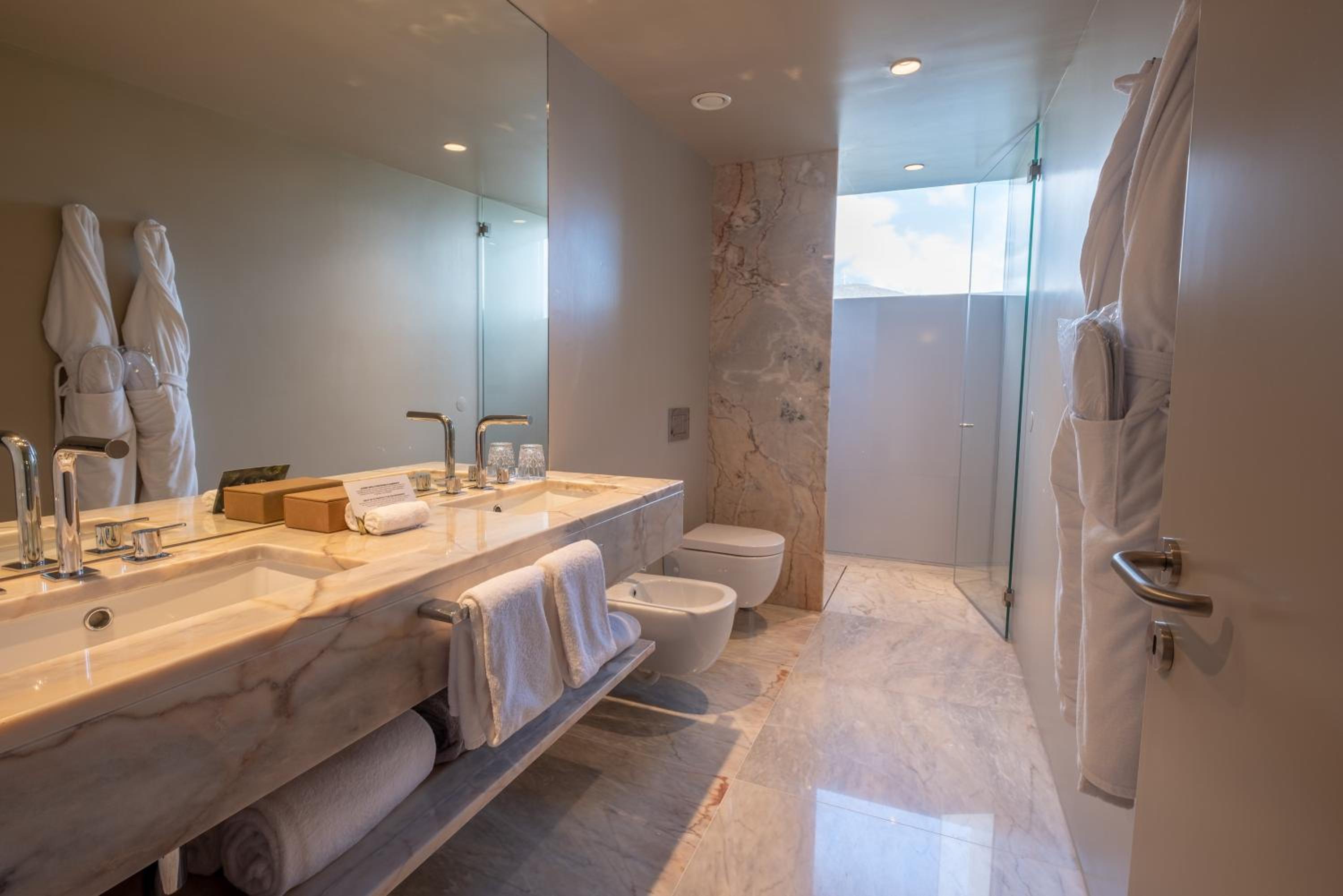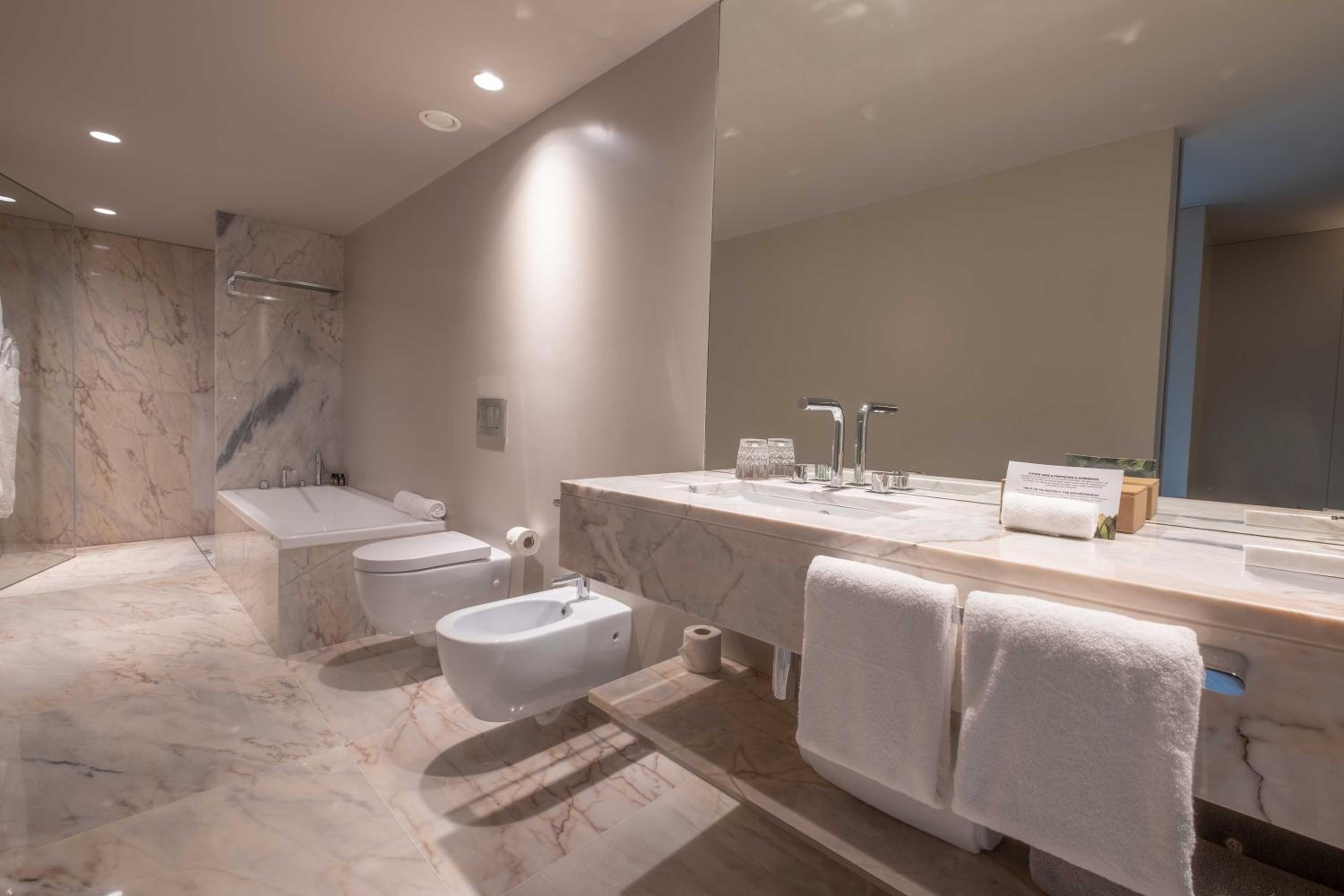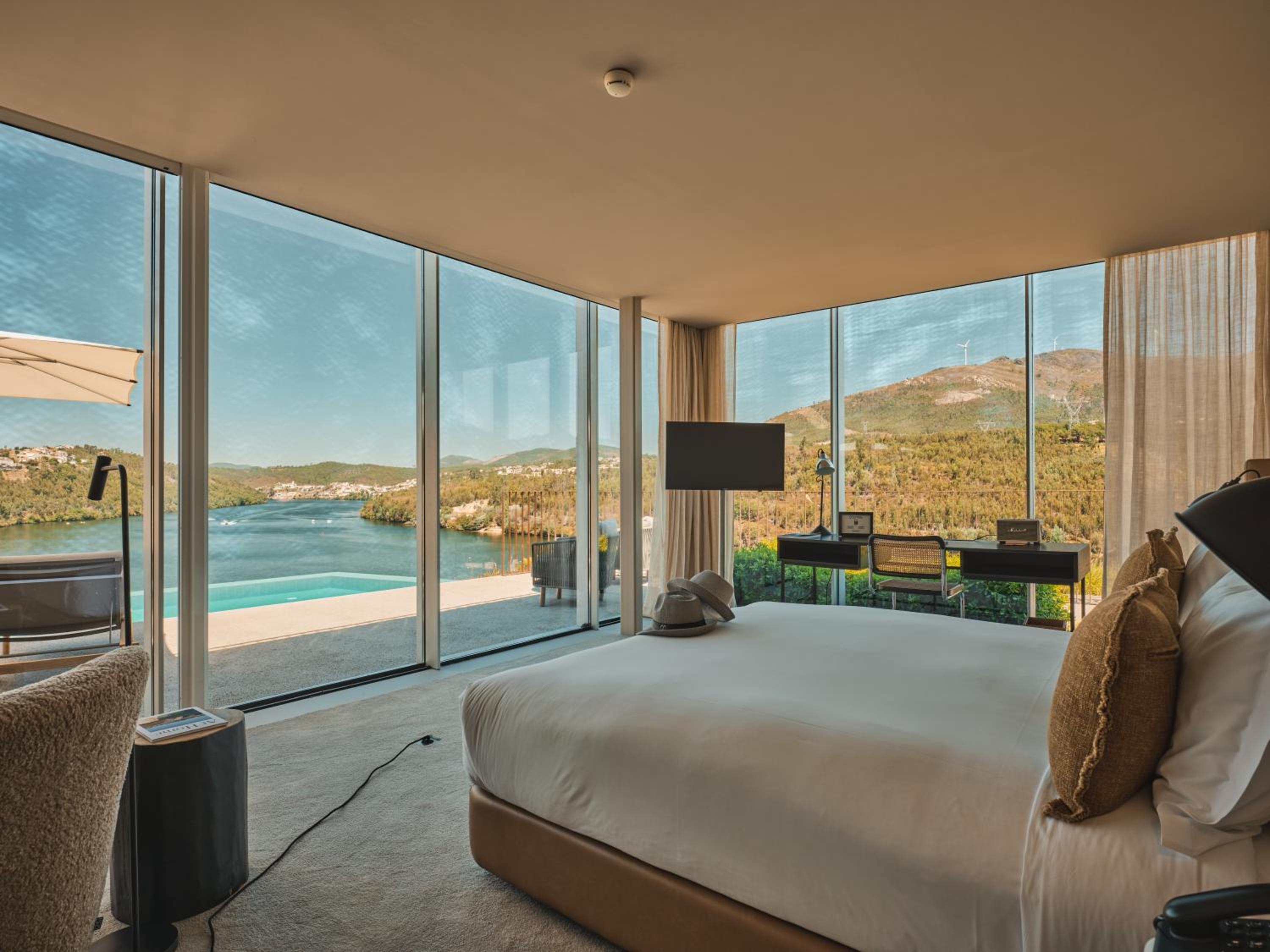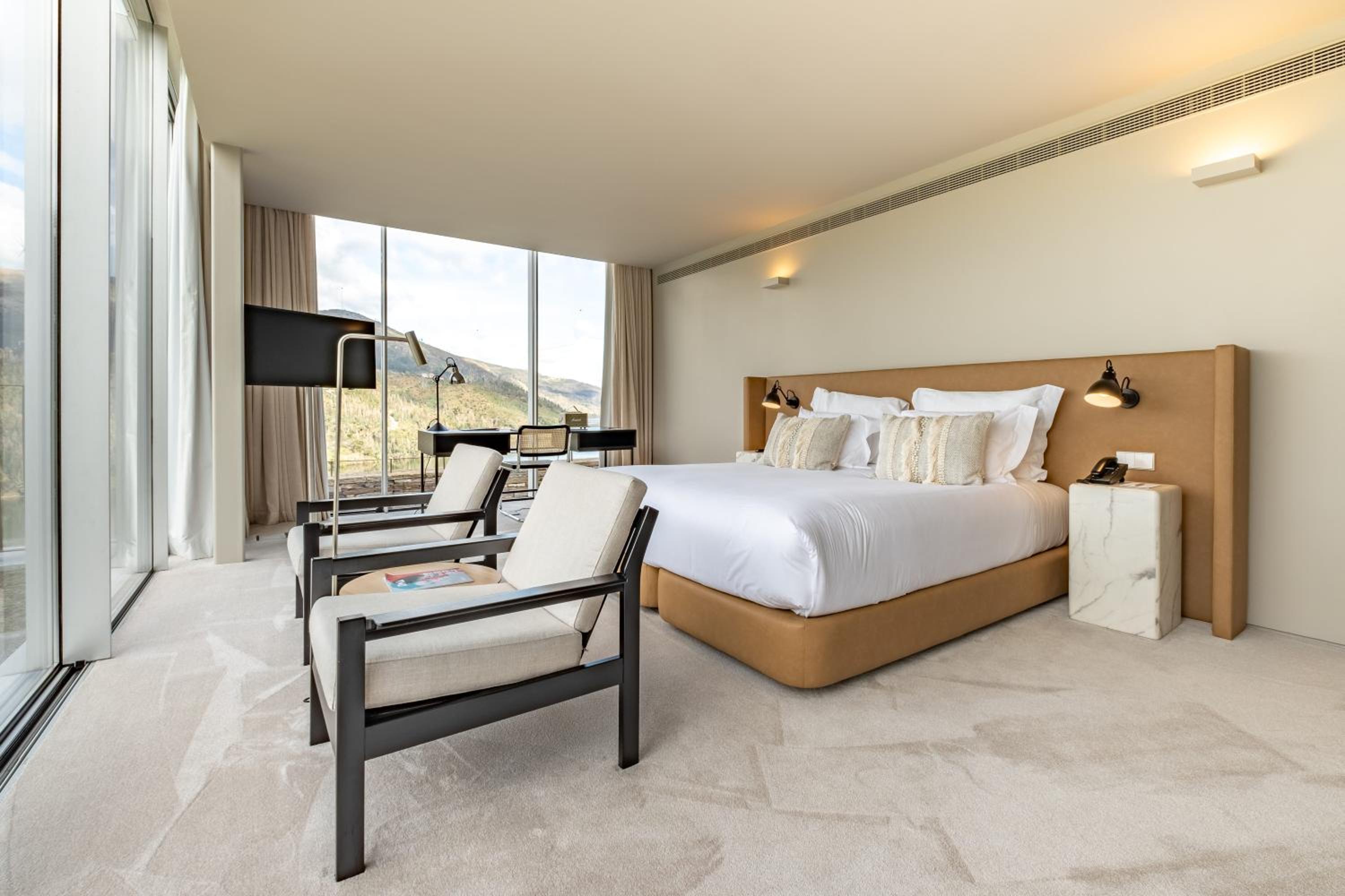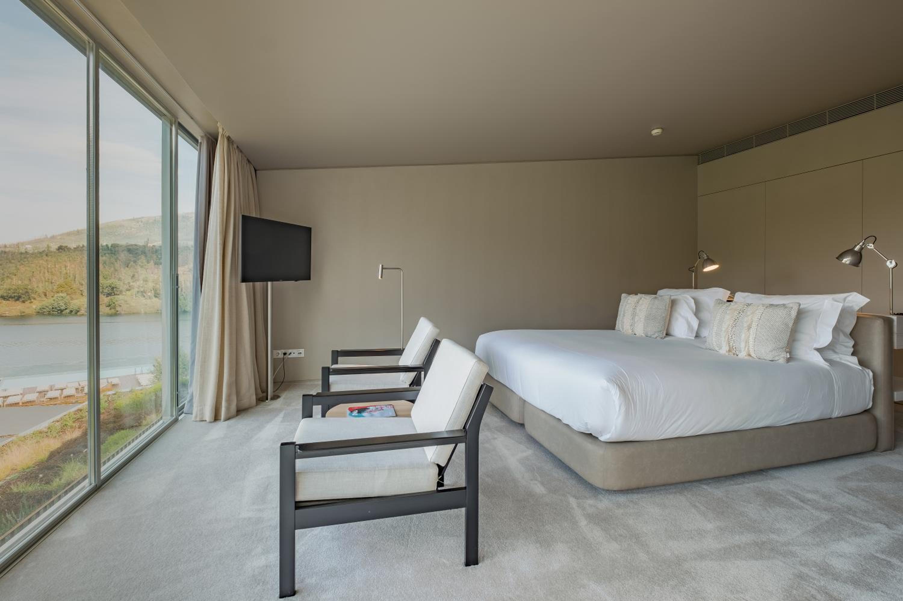 Octant Douro offers 55 rooms and 6 suites, all featuring natural light and panoramic views. Each unit is equipped with modern amenities including a flat-screen TV and free WIFI. The bathrooms are luxurious, with free-standing tubs and complimentary toiletries.