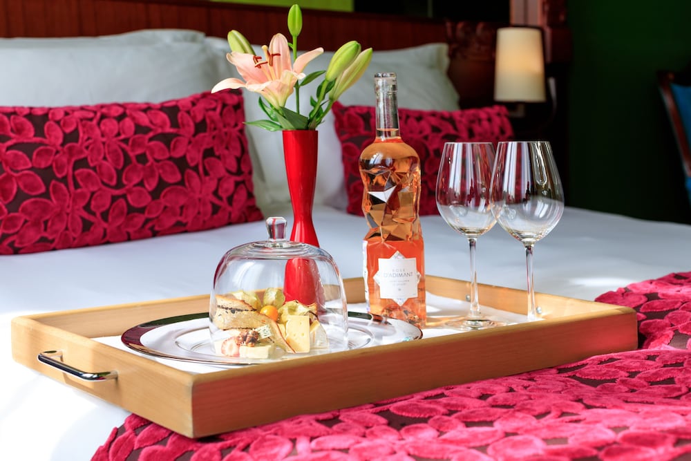 Individually-wrapped food options are available through room service