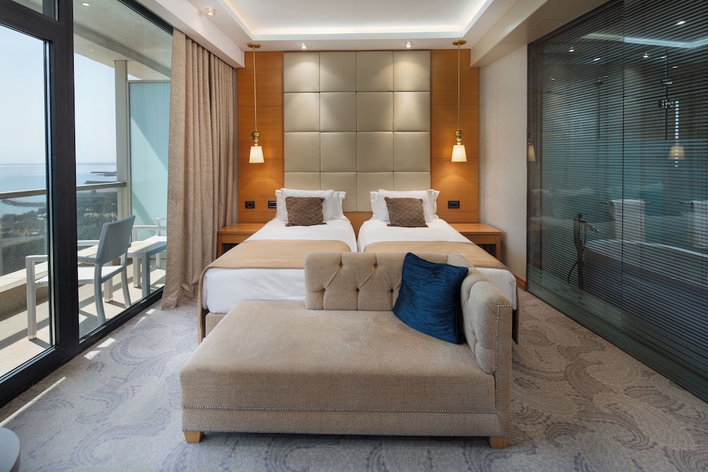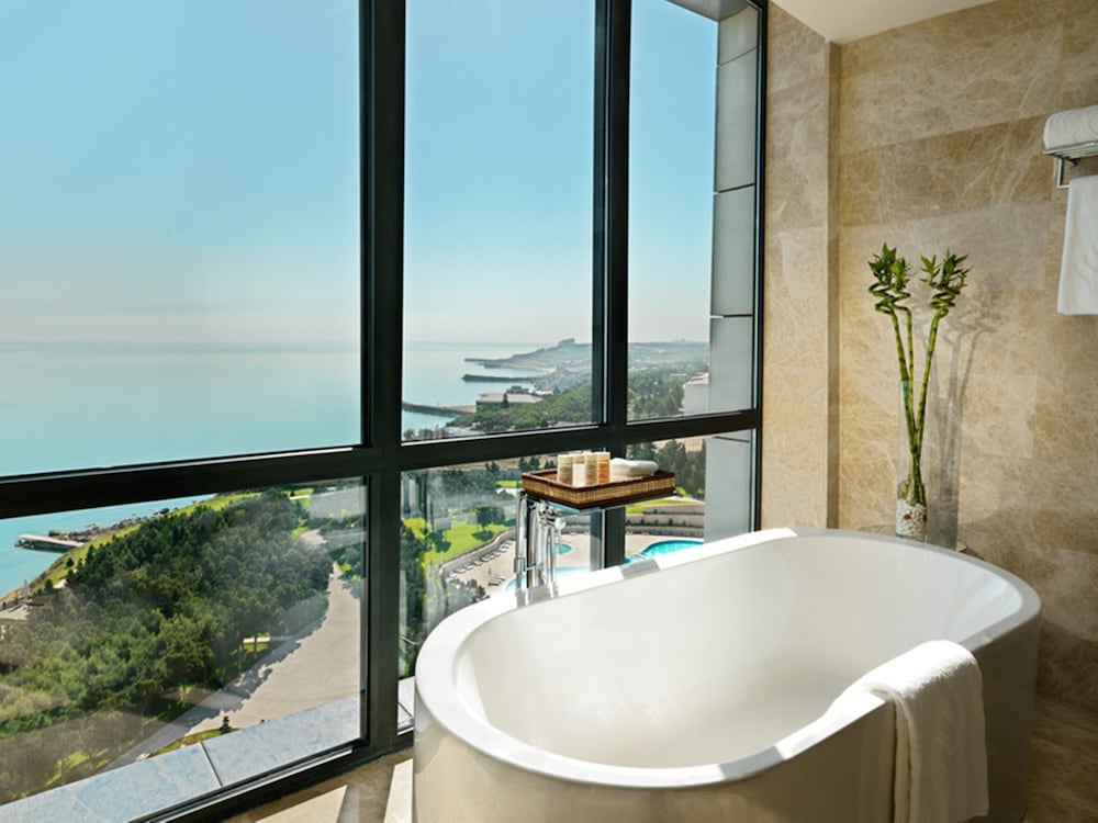 Beautiful sea view (deluxe room) and nice walking area with little forest inside. Season has not started yet so beach was not ready to enjoy it. We didn’t have hot water in the beginning, but they fixed it quickly. Spa and gym are of a very high standard. What we didn’t like is extra charge (47 AZN) for the dog. Overall great experience, will come again