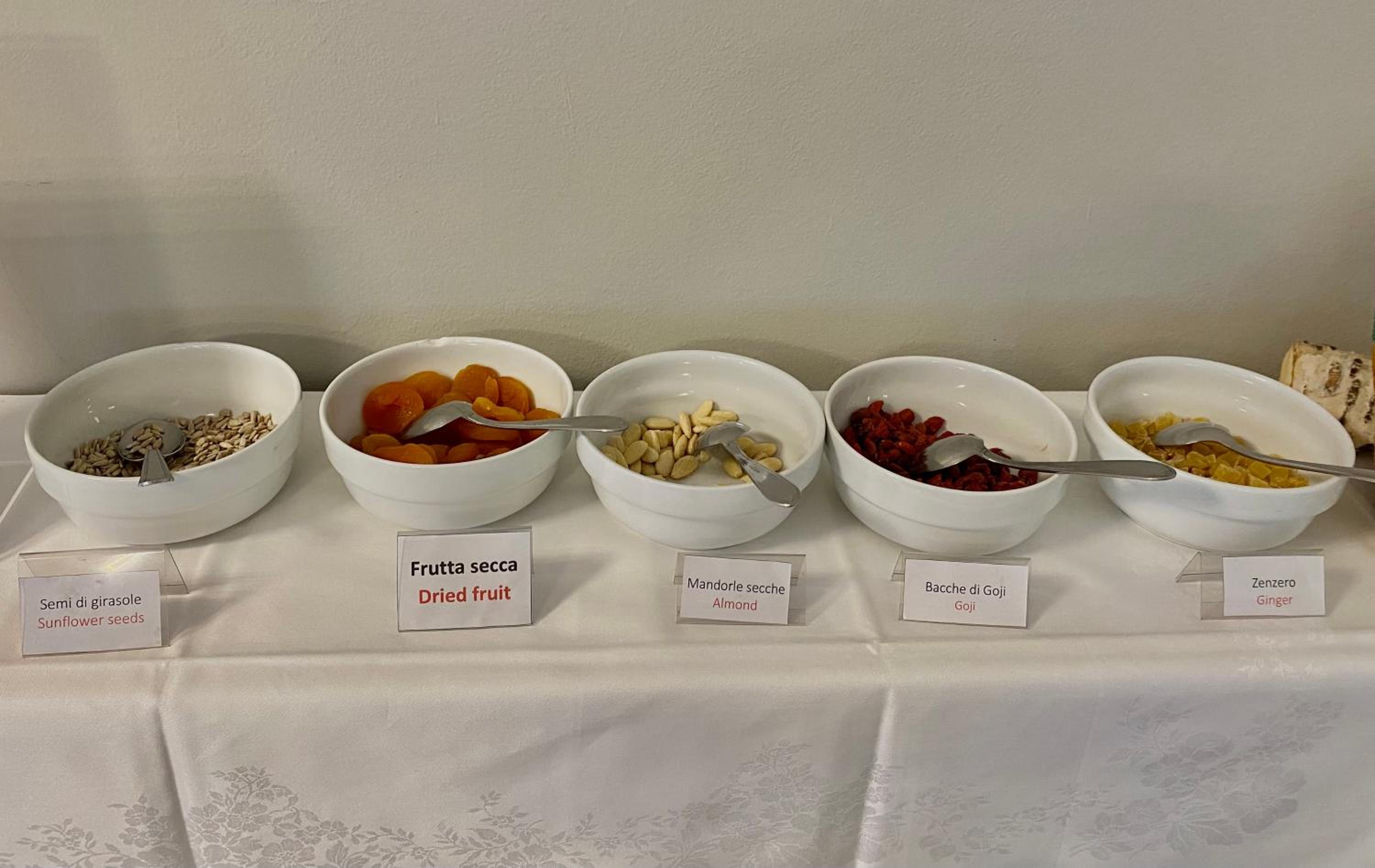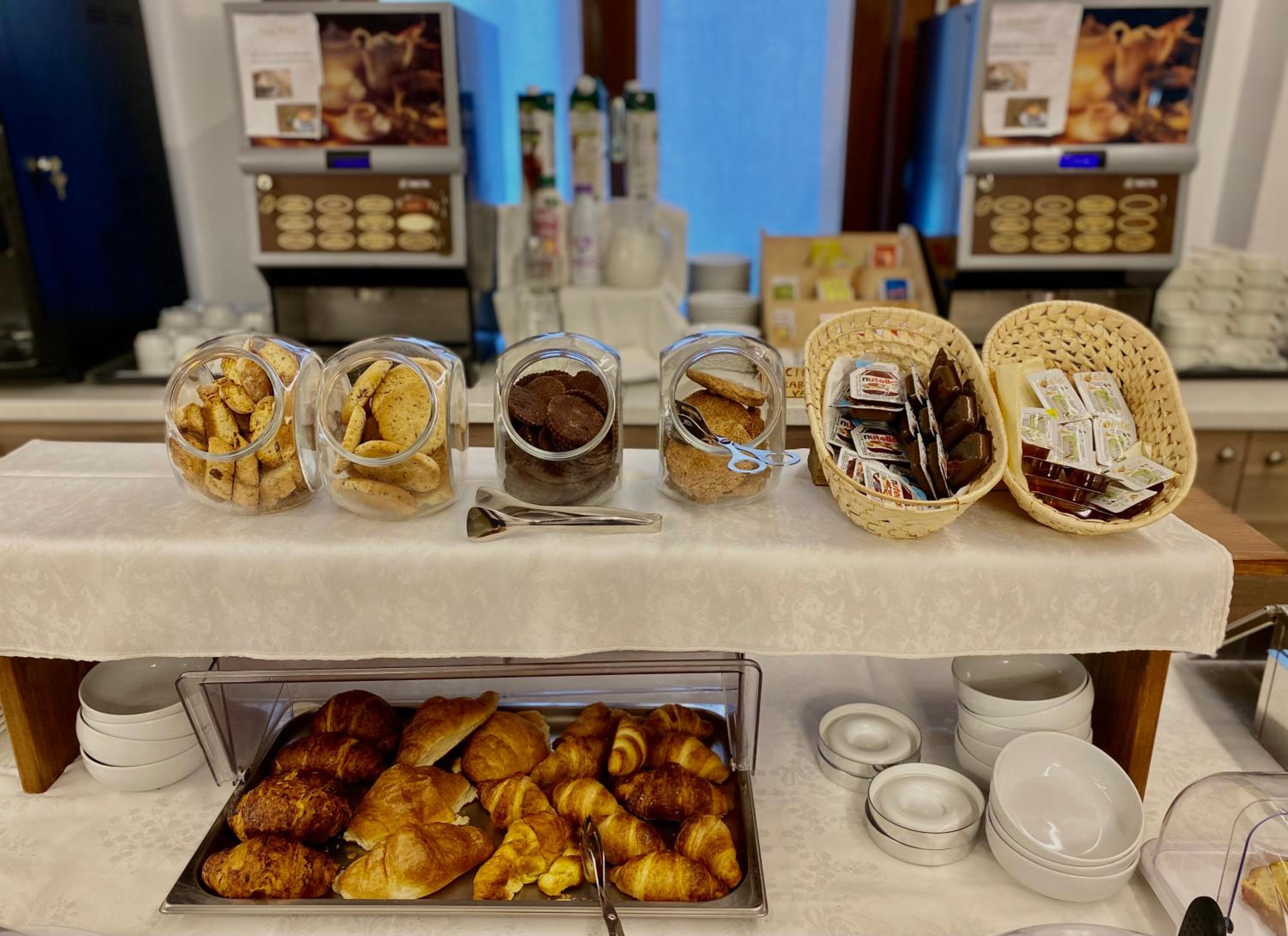 Brioche al tavolo e bevande self e buffet a richiesta incomprensibile per colpa della cameriera(bionda) non professionale con mancanza totale di gentilezza. Materie prime da migliorare e viaggiando molto posso riferire che molte cose sono da migliorare ad esempio la mancanza di lenzuola nel letto.