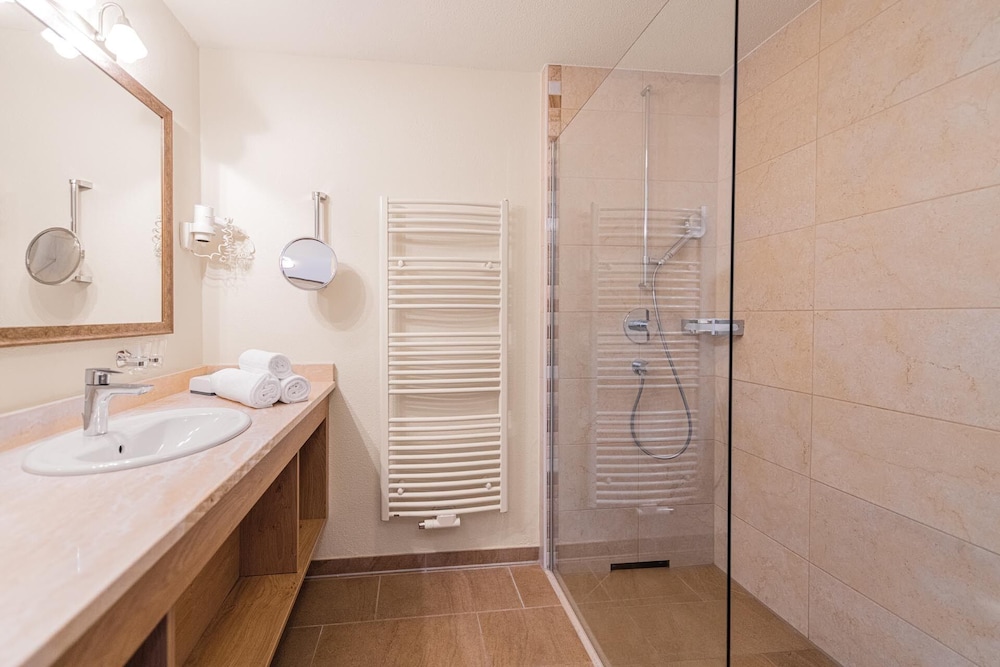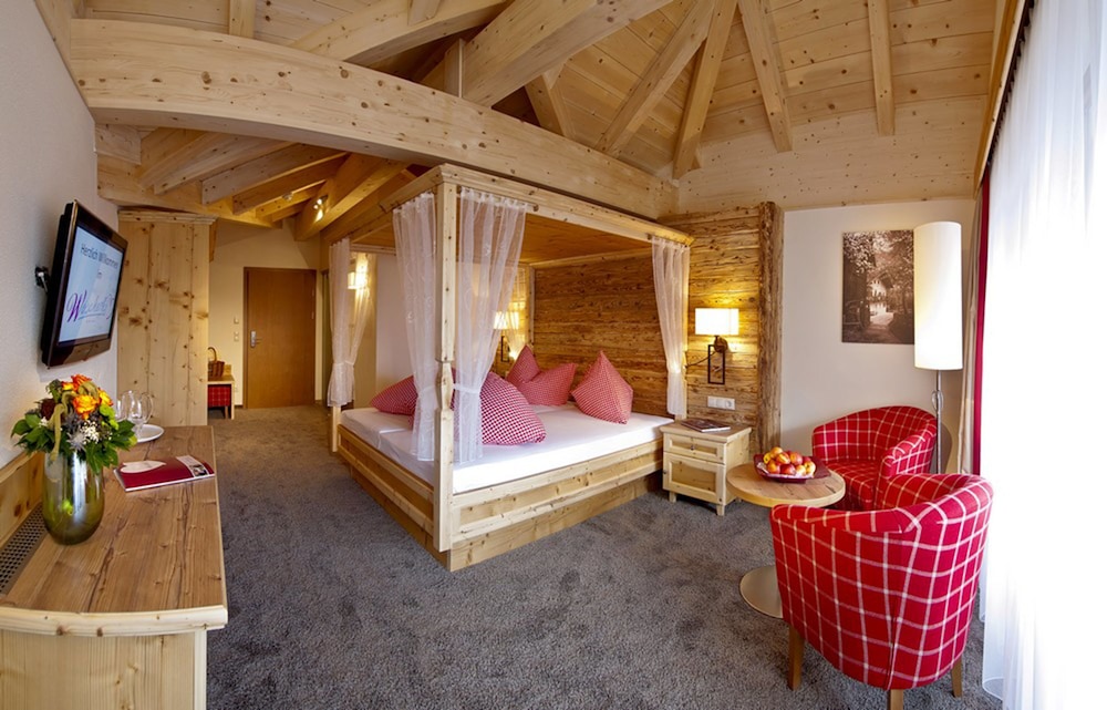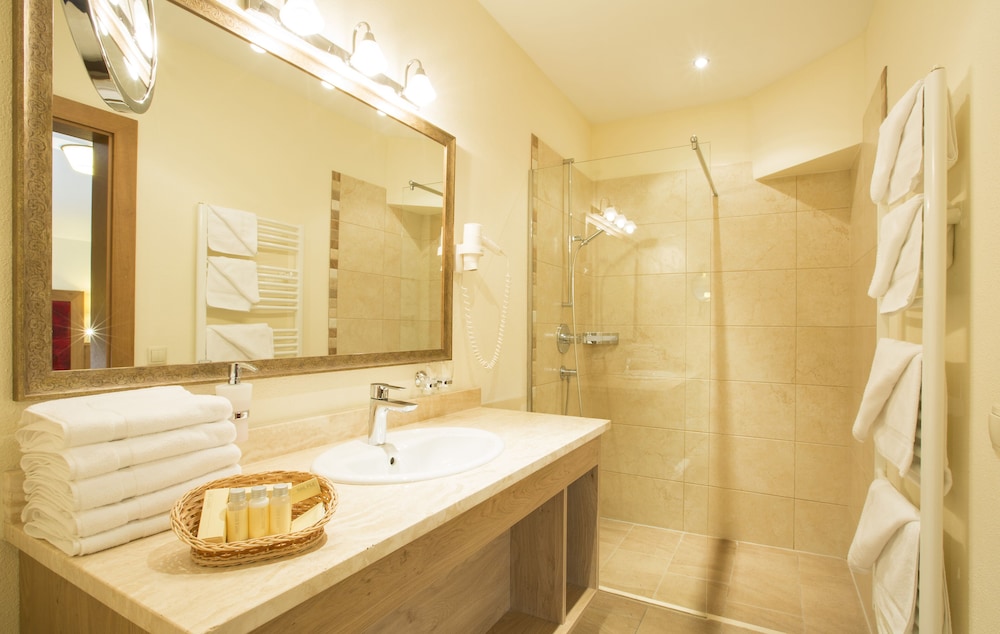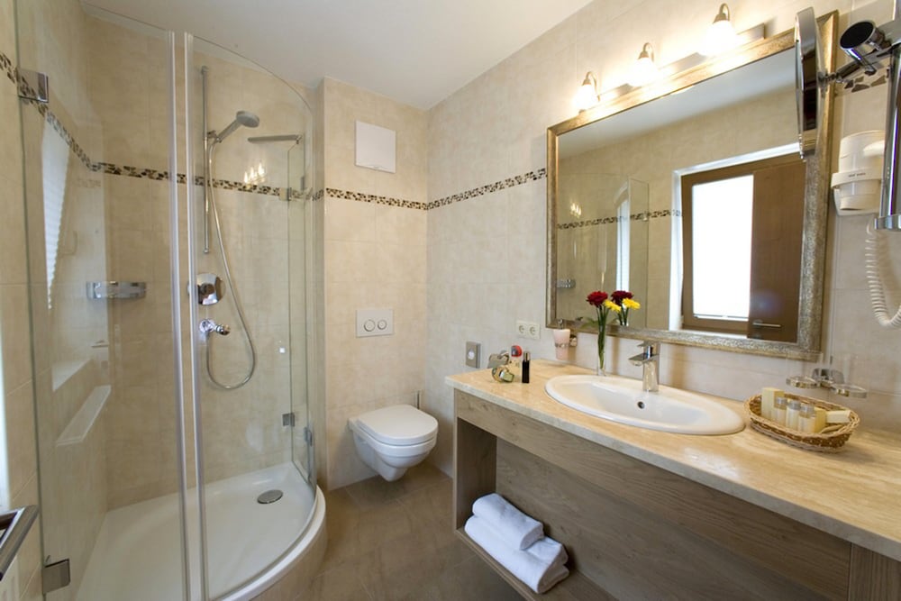 Nice hotel in beautiful surroundings. A family feeling spa hotel in classic all style, even the staff dressed traditionally. Everyone was very welcoming and chit-chatting with guests. Nice relaxing outside pool area where we spent most of the time. Free lunch och cake buffet every day at 13.30. Rooms are ok but the pool area was the nicest part of the hotel