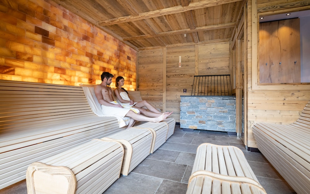 Indulge in massages, body treatments, and facials at the spa, then unwind in one of the two outdoor swimming pools after a day on the slopes.