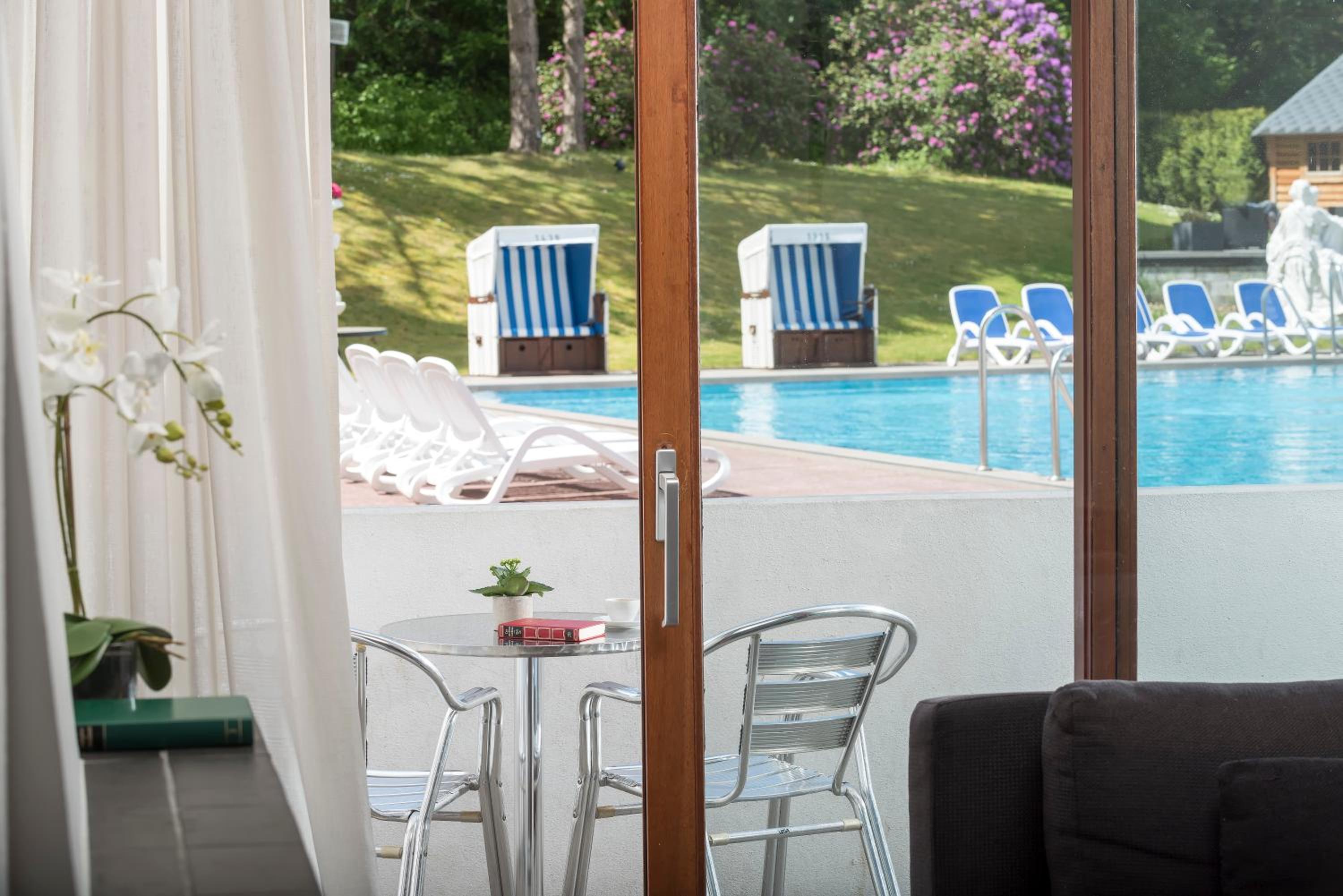 Sehr sehr positiv zu erwähnen ist der Sport und Wellnessbereich des Hotels. Ein kleiner moderner Fittnessraum kann benutzt werden, Knabberfische warten auf Füße zum abknabbern😀,Massagen können zu vernünftigen Preisen gebucht werden und nicht zu vergessen die verschiedensten Saunen wenn man mag. Das Schwimmbad ist sehr ordentlich, nicht klein und hat ein etwa 20x15m großes Außenbecken das immer auf 28Grad erwärmt ist. Abend nett beleuchtet, kann man bis 21Uhr seine Bahnen ziehen. Auch hier ist der Renovierungsbedarf zu erkennen, beeinträchtigt jedoch in keinem Fall die Nutzung und Qualität des Schwimmbades. Wir haben 5 schöne Tage im "Hotel des Nordens" erlebt, mit Ausflügen nach Flensburg und ins 30min entfernte Sønderborg in Dänemark(ein tolles Städtchen an der Ostsee, nur zu empfehlen).