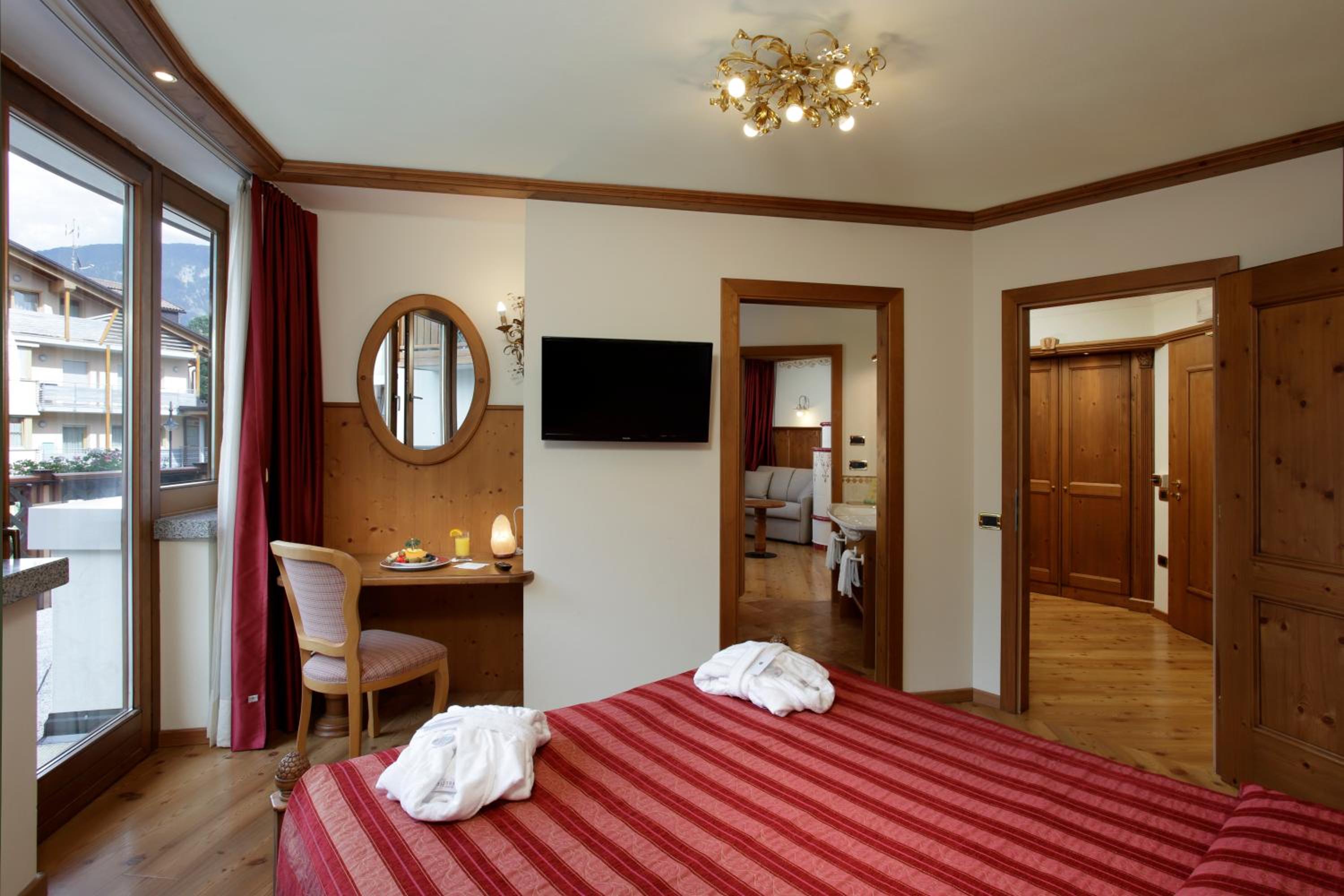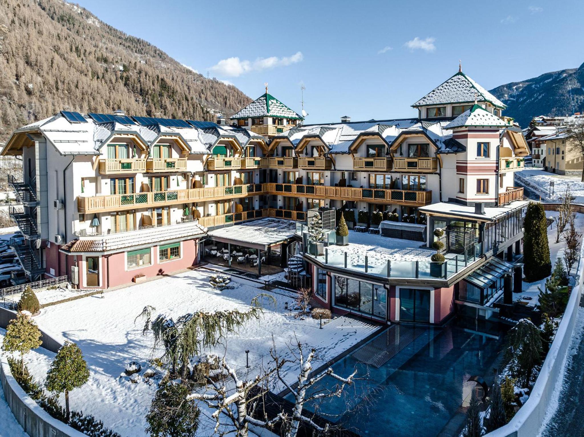 Hotel accogliente con servizi e accoglienza al top. Ottime le piscine, calda all'esterno e normale all'interno. Bella la Spa. Colazione ottima per tutti i gusti dolce e salato che sia. La cena tipo gourmet, un esperienza ogni sera mai ripetitivi. Personale al top, educazione e pulizia ai massimi livelli. BRAVI! HOTEL silenzioso bellissima la stanza superior da preferire. Tanti i parcheggi esterni gratuiti. Posizione ottimale per Madonna di campiglio, passo del tonale, parco naturale dello Stelvio. Complimenti! Molte strutture dovrebbero prendere da voi l'esempio.