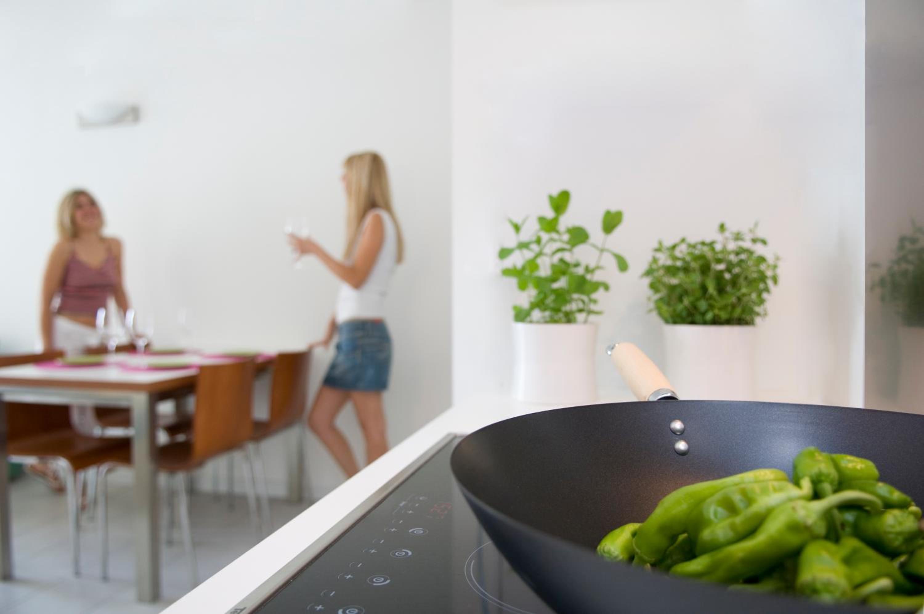 Enjoy air-conditioned apartments with a spacious living area, fully equipped kitchenette, and a private bathroom with a washing machine for your convenience.