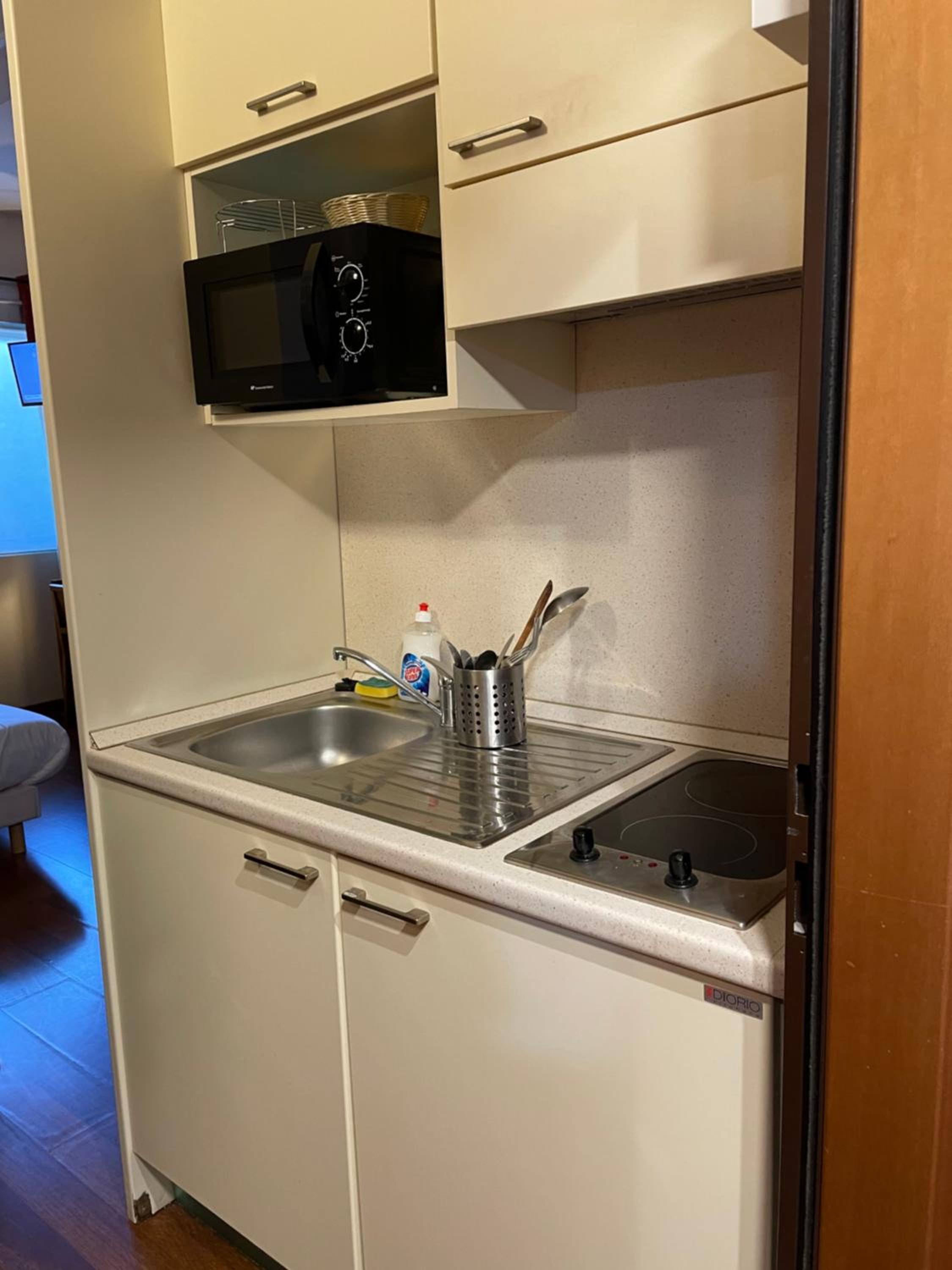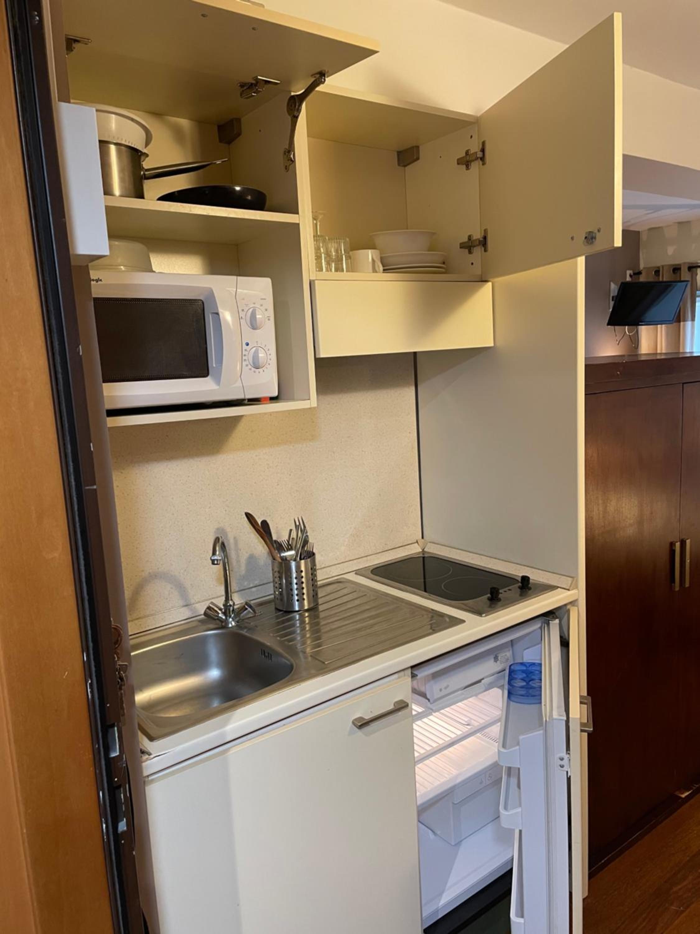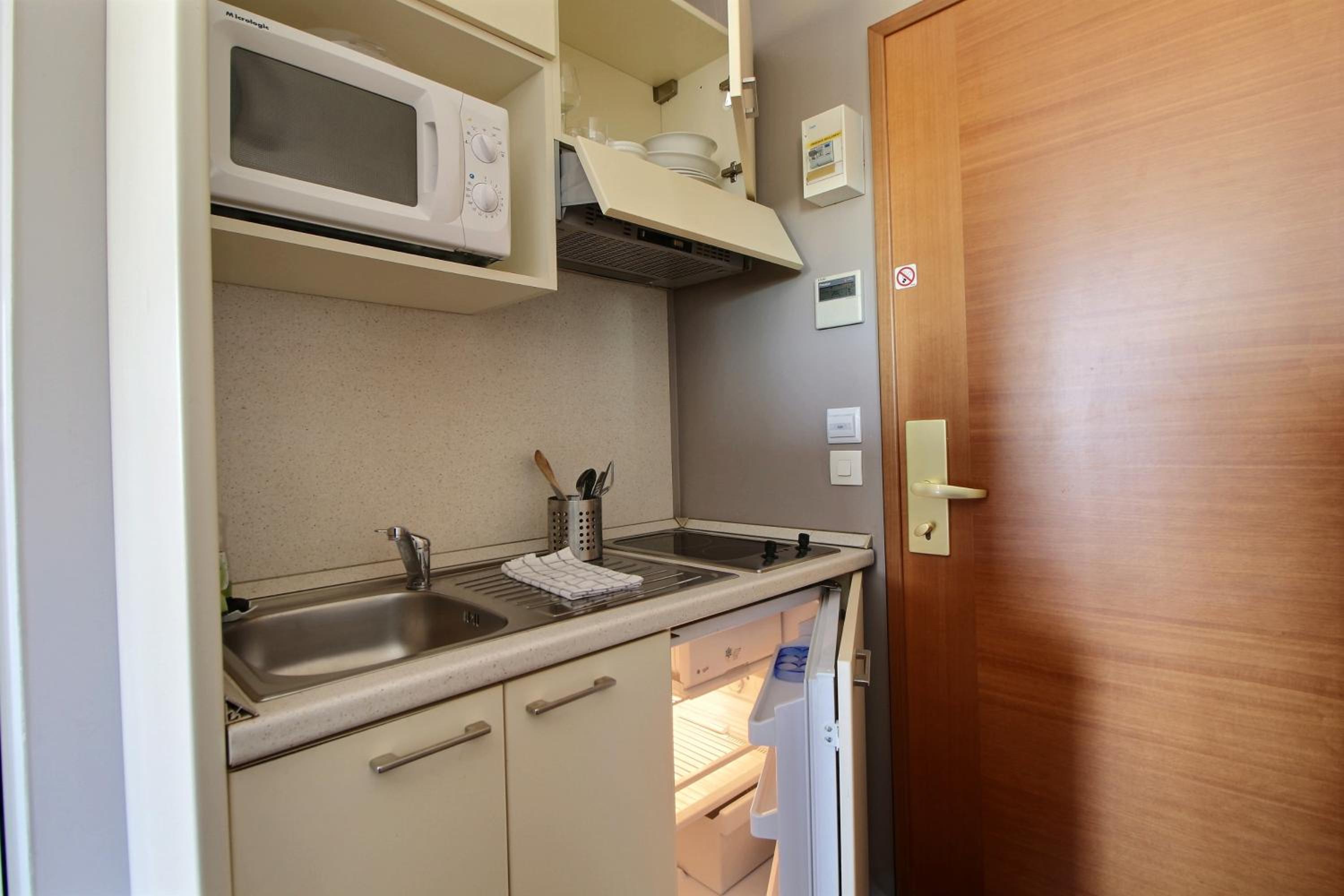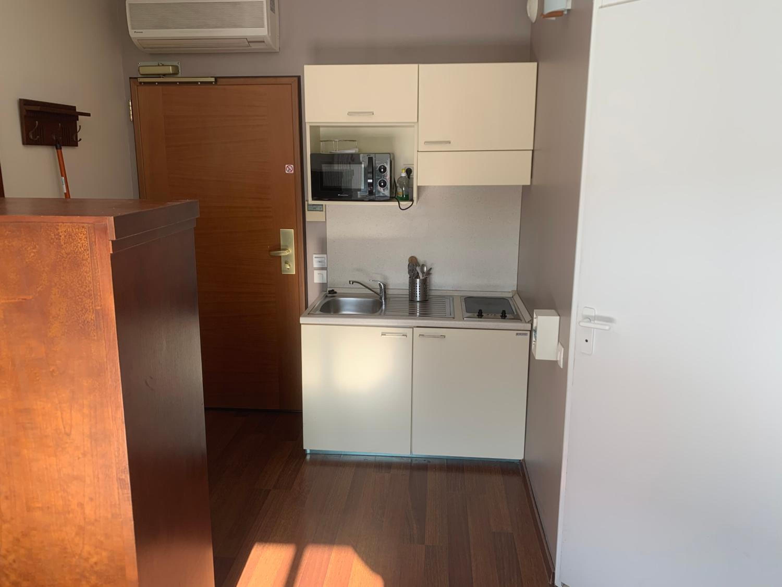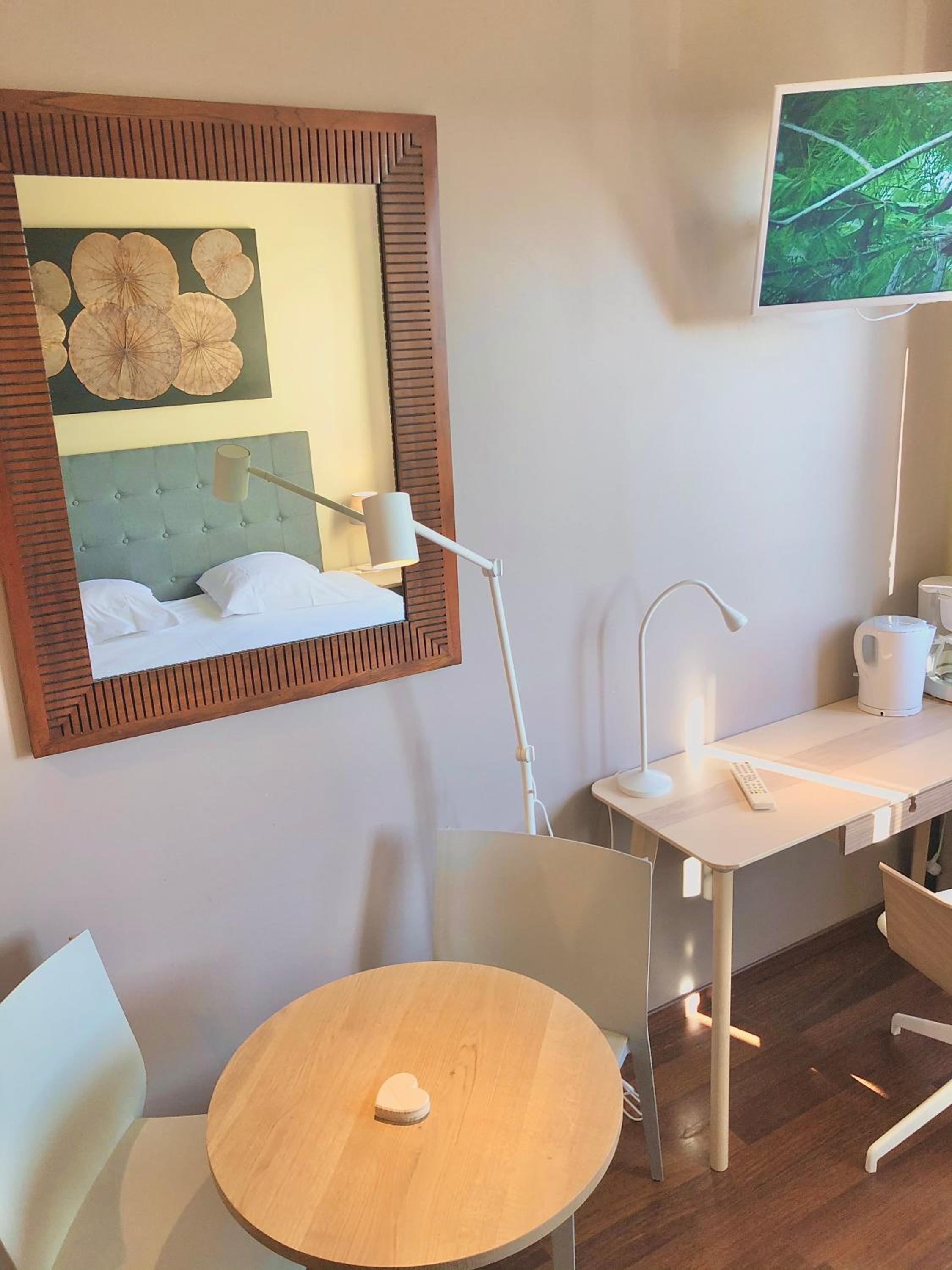 Le cadre et la décoration de l'hôtel et des chambres, les équipements petite kitchenette bien pratique.