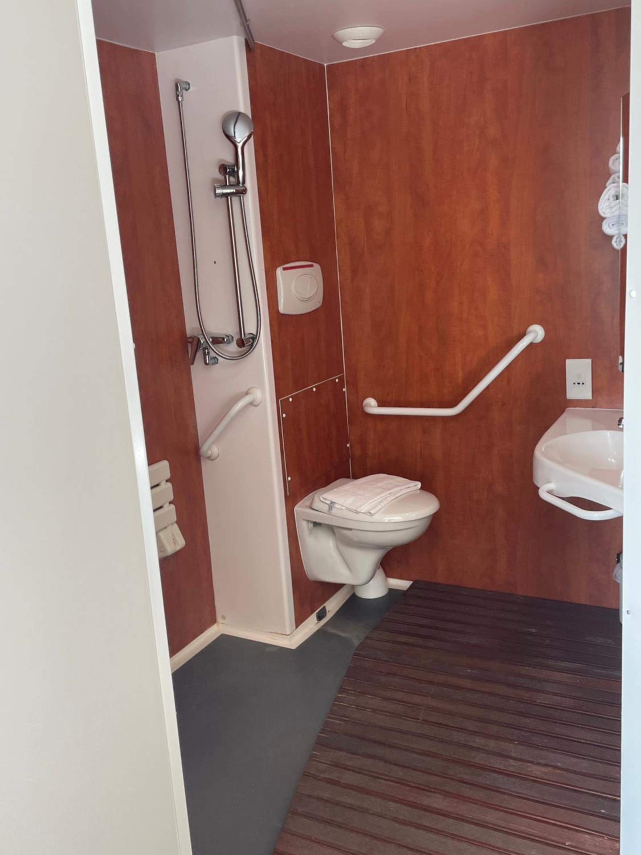 The shower cubicle was too small, and they offer only really tiny sachets of shower gel