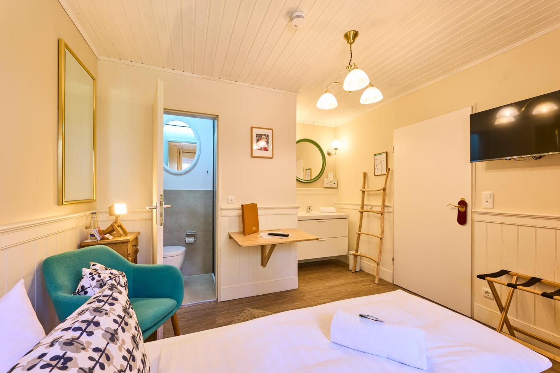 Sehr freundliche Begrüßung, tolles Ambiente, spannende Inneneinrichtung, wo man ständig neue Ausstellungsstücke oder Bilder entdecken kann. Freundliches und hilfsbereites Personal, sehr gute Küche und ein leckeres Frühstück.