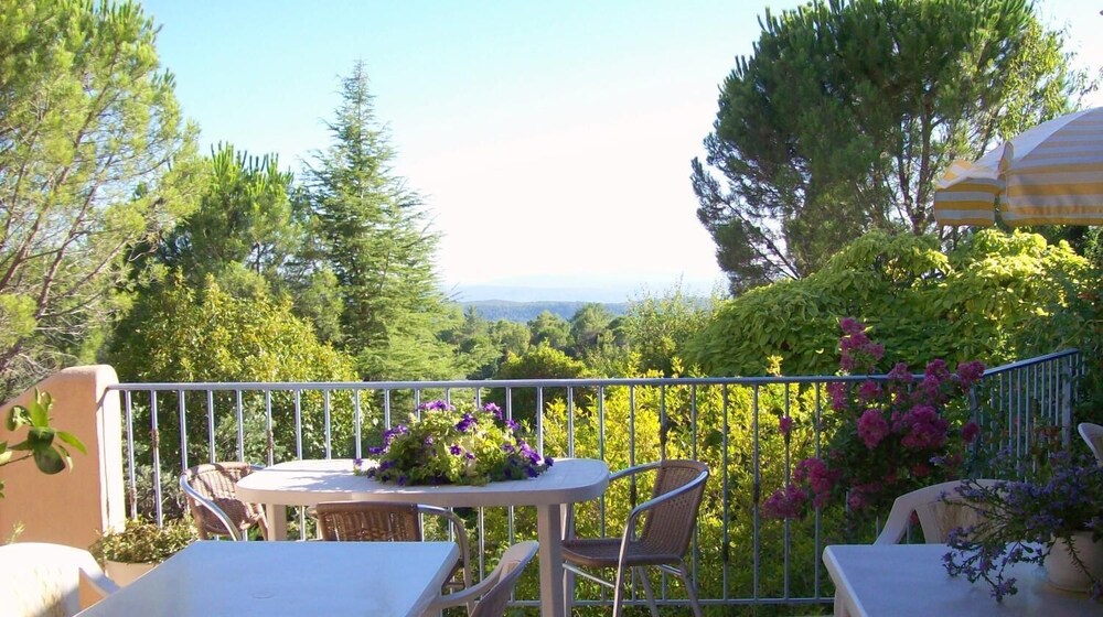 This is a delightful family hotel with wonderful views. It's near the village of Tourtour which is very pretty. We were made so welcome by the owner. The home cooked food was delicious at dinner with dishes like guinea fowl in olive sauce. Breakfast on the terrace was a real treat overlooking the green valley with mountains in the distance. There is a good sized swimming pool too. Our modern room had floor to ceiling windows opening out onto the countryside with no houses in view.