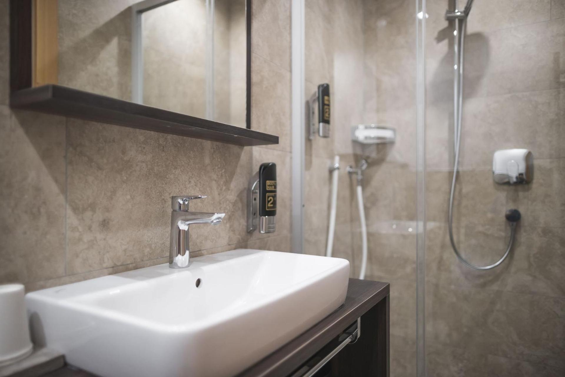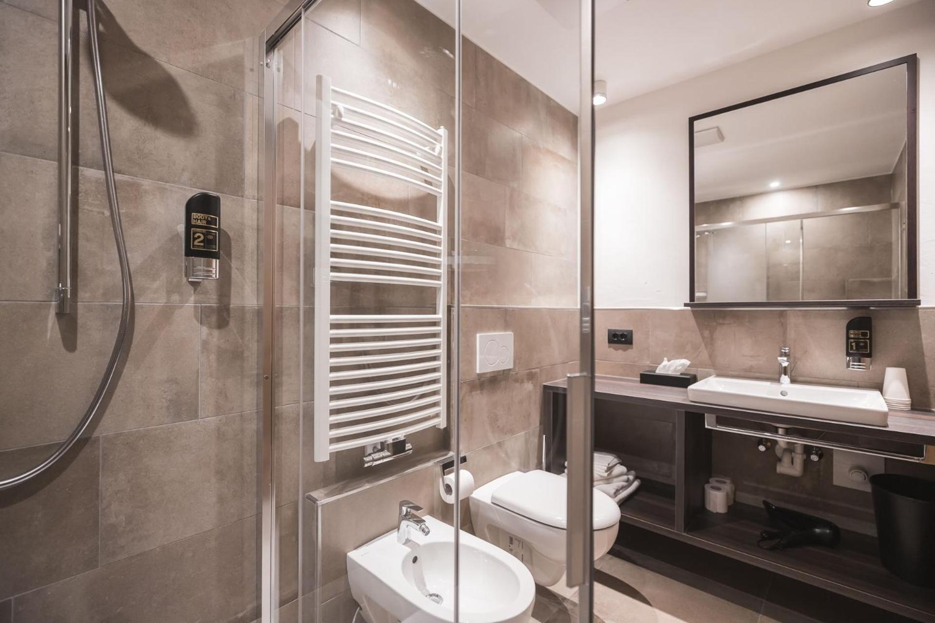Ottima colazione, camera molto grande con bagno doppio( uno con doccia lavandino e altro con wc e lavandino). Personale disponibile e attento. Posizione centrale con ampio parcheggio