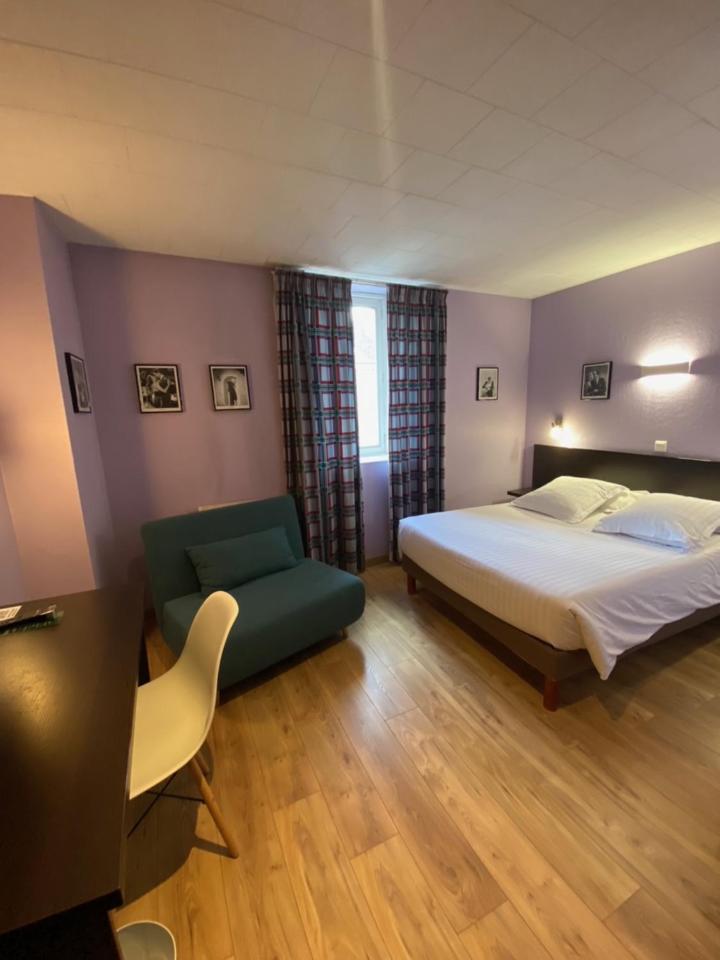 La chambre était propre, avec baignoire ce qui est très appréciable. Grande chambre spacieuse et cosy (Rimbaud) ,vue sur la ville et sous les toits (chambre 301) avec beaucoup d'espace de rangements. Parking difficile d'accès car entrée étroite et à l'équerre mais permettant de laisser son véhicule en sécurité pour un prix non exorbitant : 6 euros. Petit déjeuner copieux et bon avec des produits frais (fromages ,charcuterie, fruits et laitages. Accueil au top par une charmante dame souriante et très blagueuse, vous donnant tous les renseignement utiles pour votre séjour. Le seul vrai point faible ; pas d'ascenseur et chambre au troisième étage, donc pour les personnes âgées ou à mobilité réduite cela reste compliqué. Sinon pour le reste: bon rapport qualité au final.