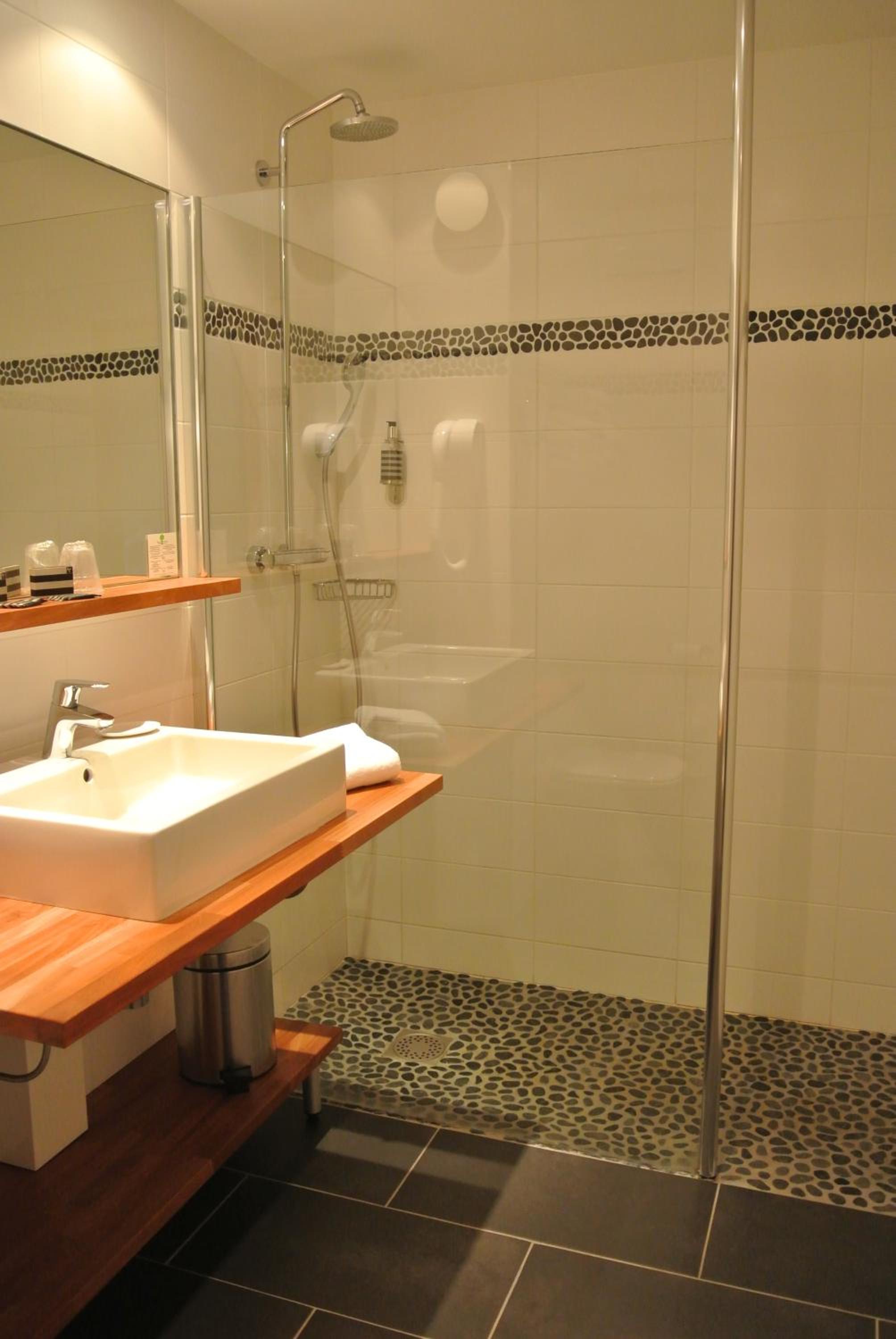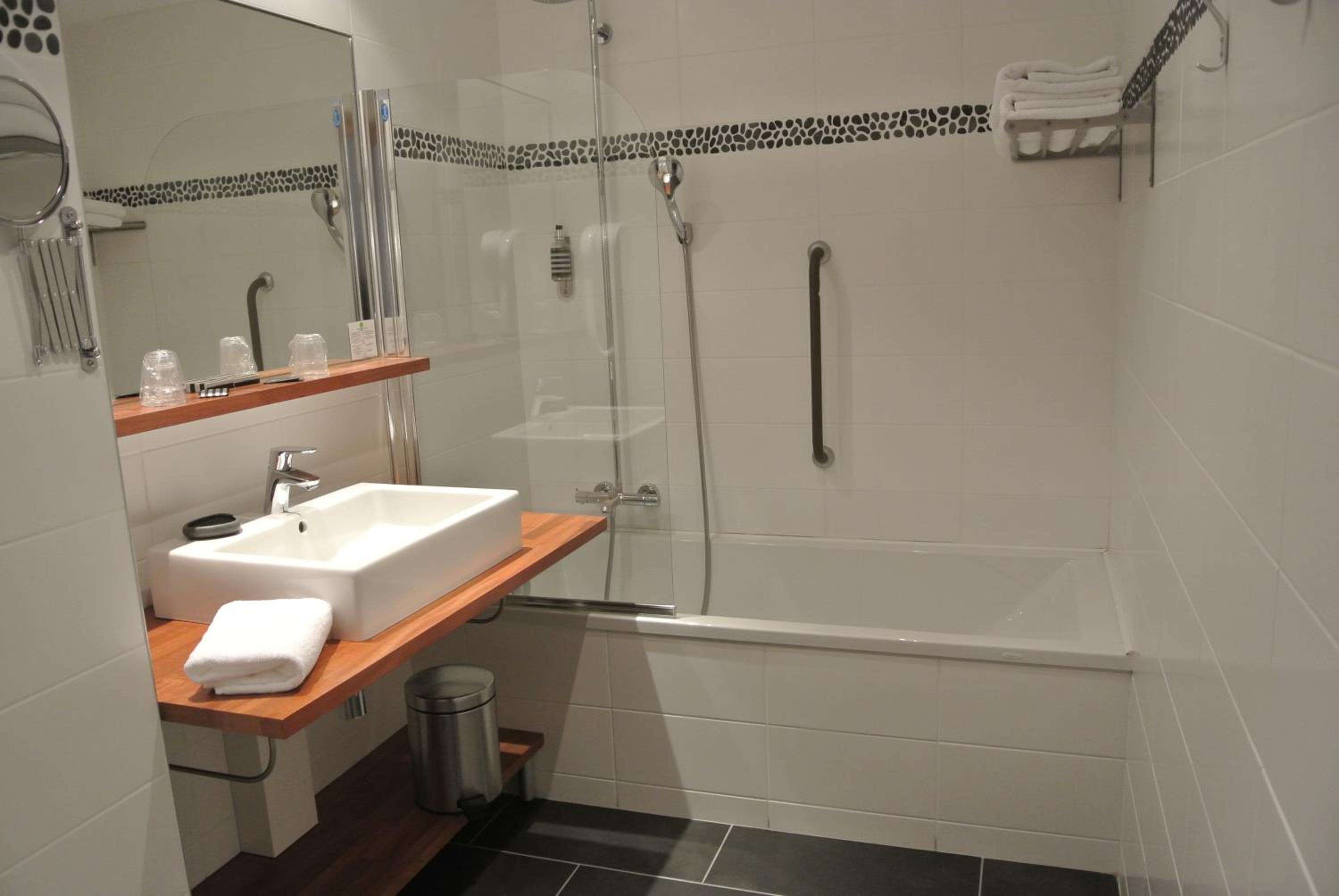 La baignoire, j'aurais préféré une douche de plain pied comme dans d'autres chambres, les petits savons pourraient être remplacés par du savon en flacon, la petite table un peu bancale.