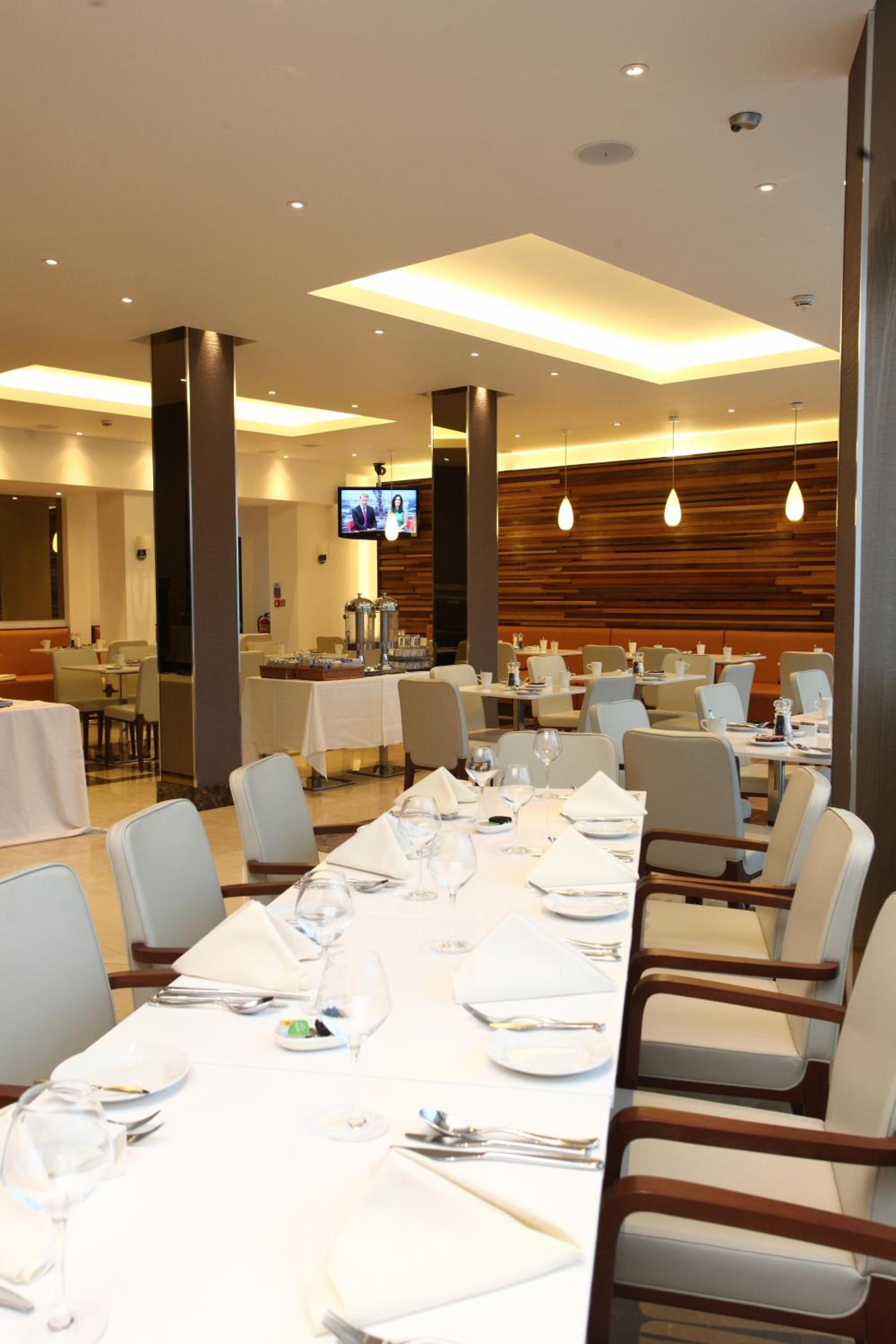 Indulge in a variety of wines and cocktails at the hotel's own bar area, complemented by a menu offering full English or continental breakfast options. Whether unwinding after a long day of travel or starting your morning off right, the bar and restaurant provide a convenient and delicious dining experience.