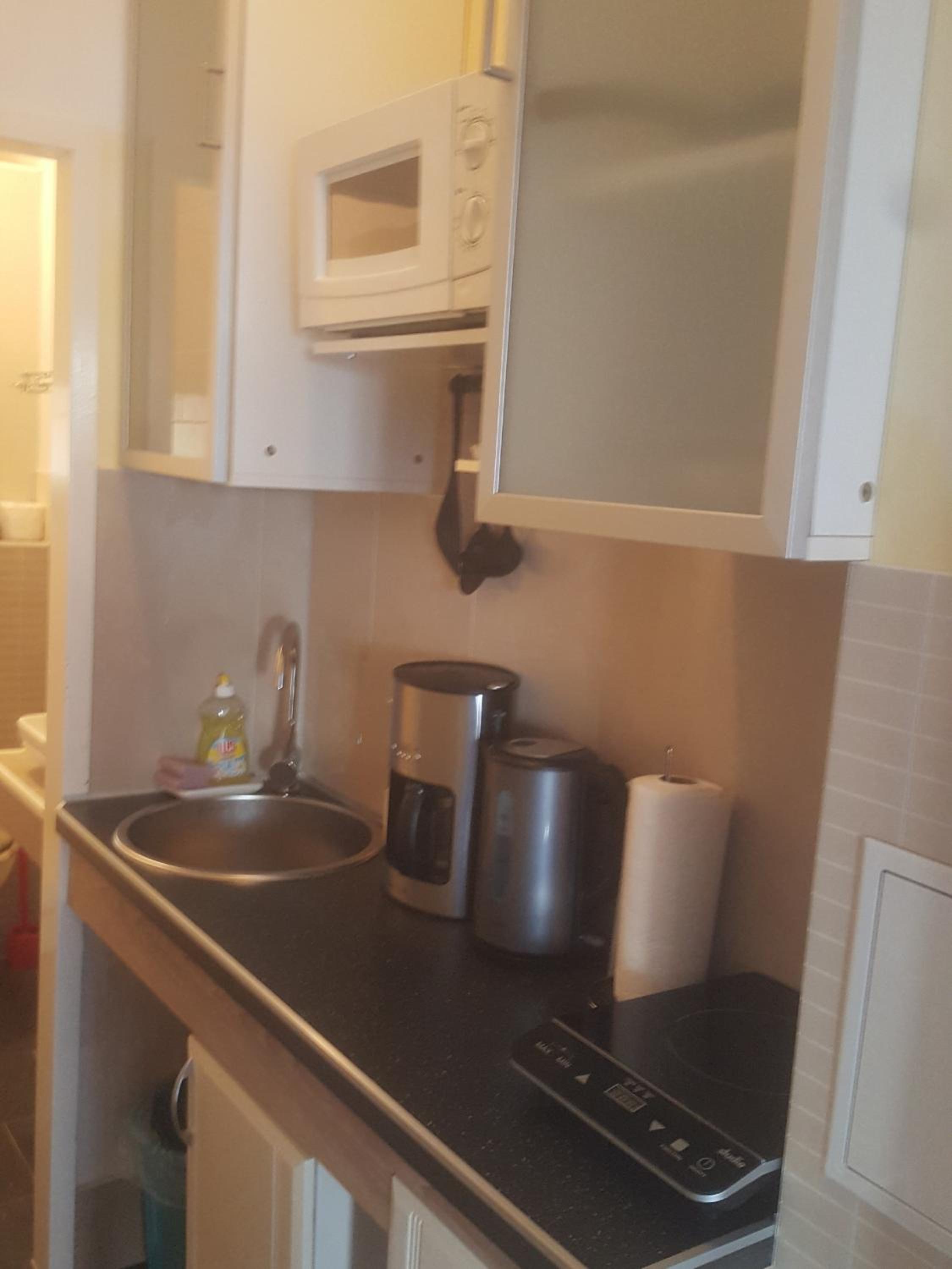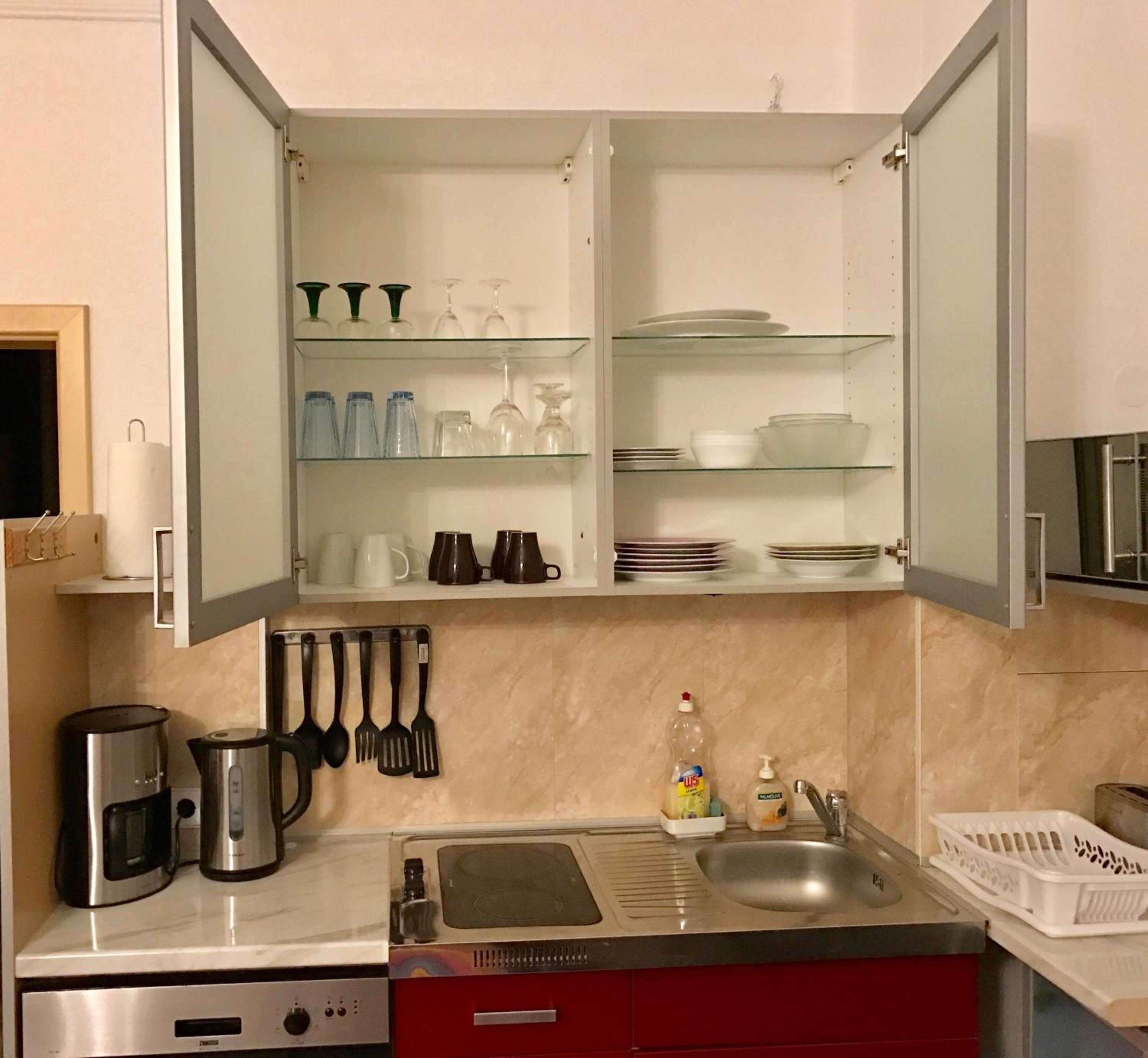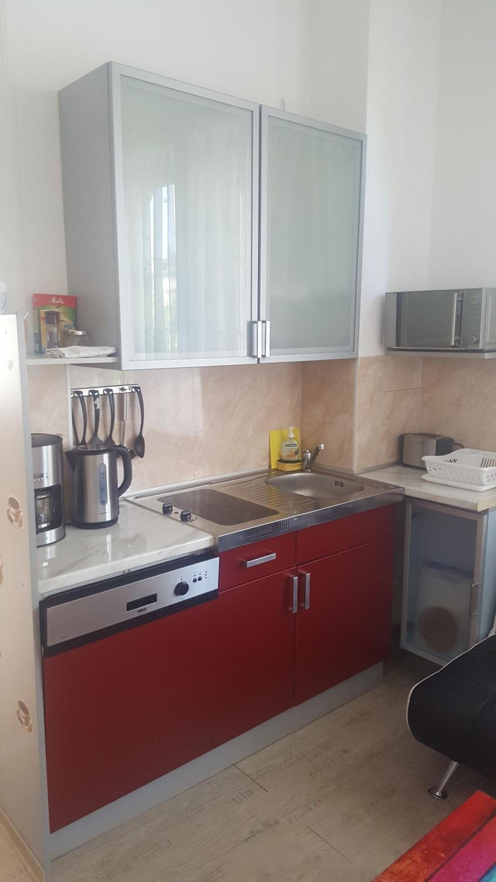Die Küche war völlig verdreckt und verklebt. Die Mikrowelle von innen fast verschimmelt. Die Spülmaschine lief unten Wasser raus der Kühlschrank war ebenfalls mit dem Eisfach defekt. Eine Kaffeemaschine war auch nicht vorhanden sowie überhaupt kein Geschirr