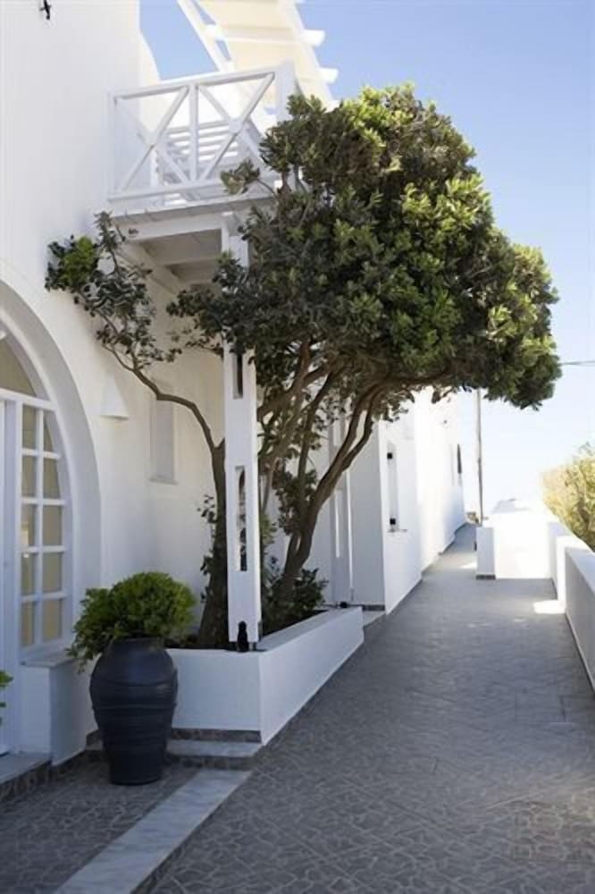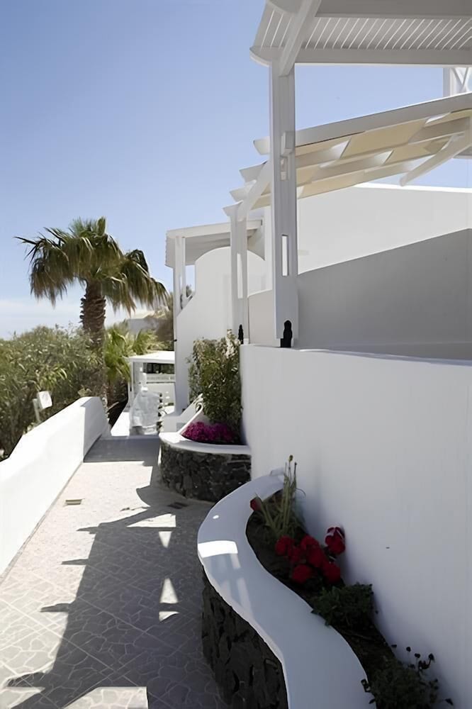 Enjoyed our stay. Location was ideal, very easy and short walk to Fira. Staff were excellent - very helpful in organising day cruise and hire car. Pool area very nice. Room fine, bathroom a bit basic, but overall a good choice.
