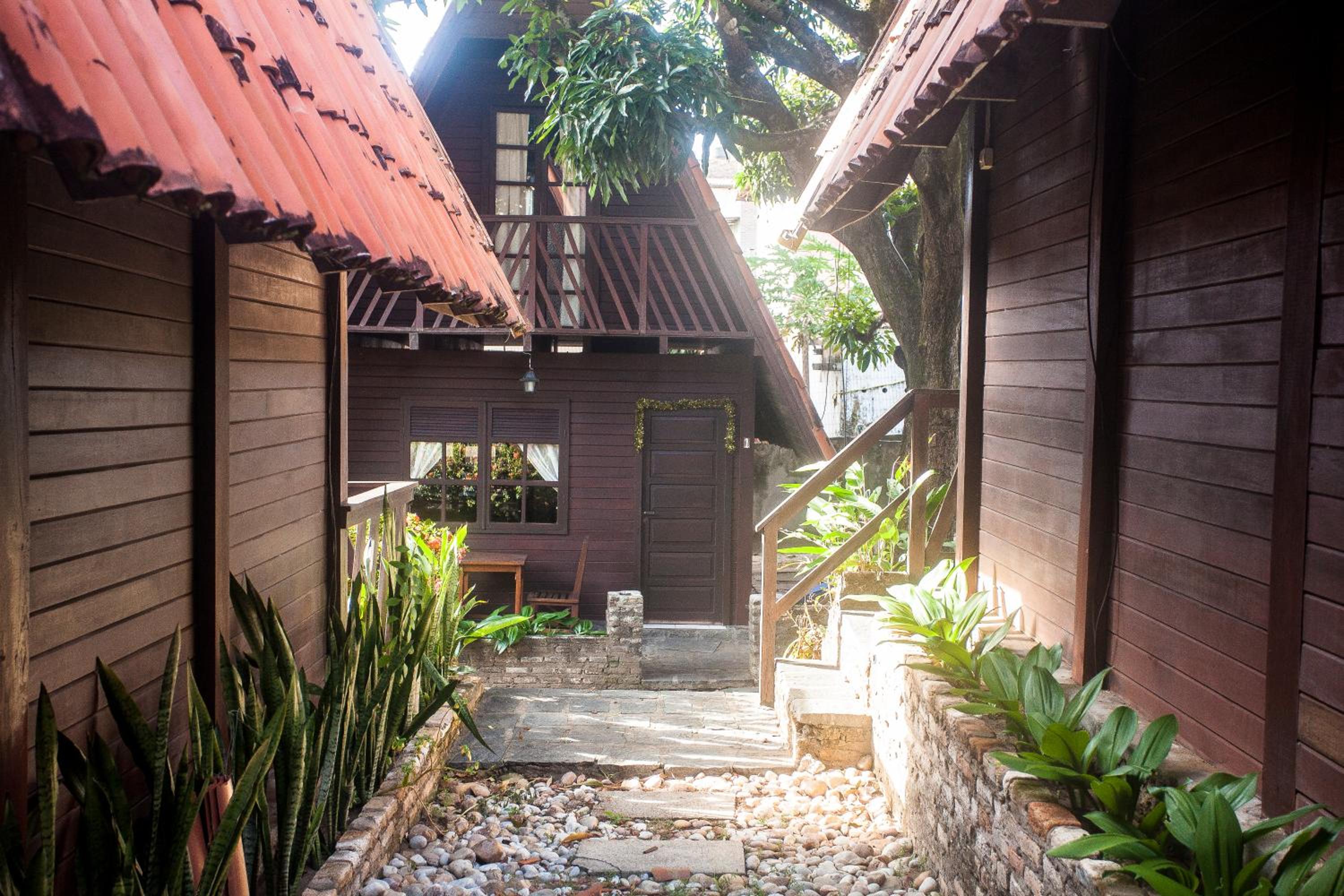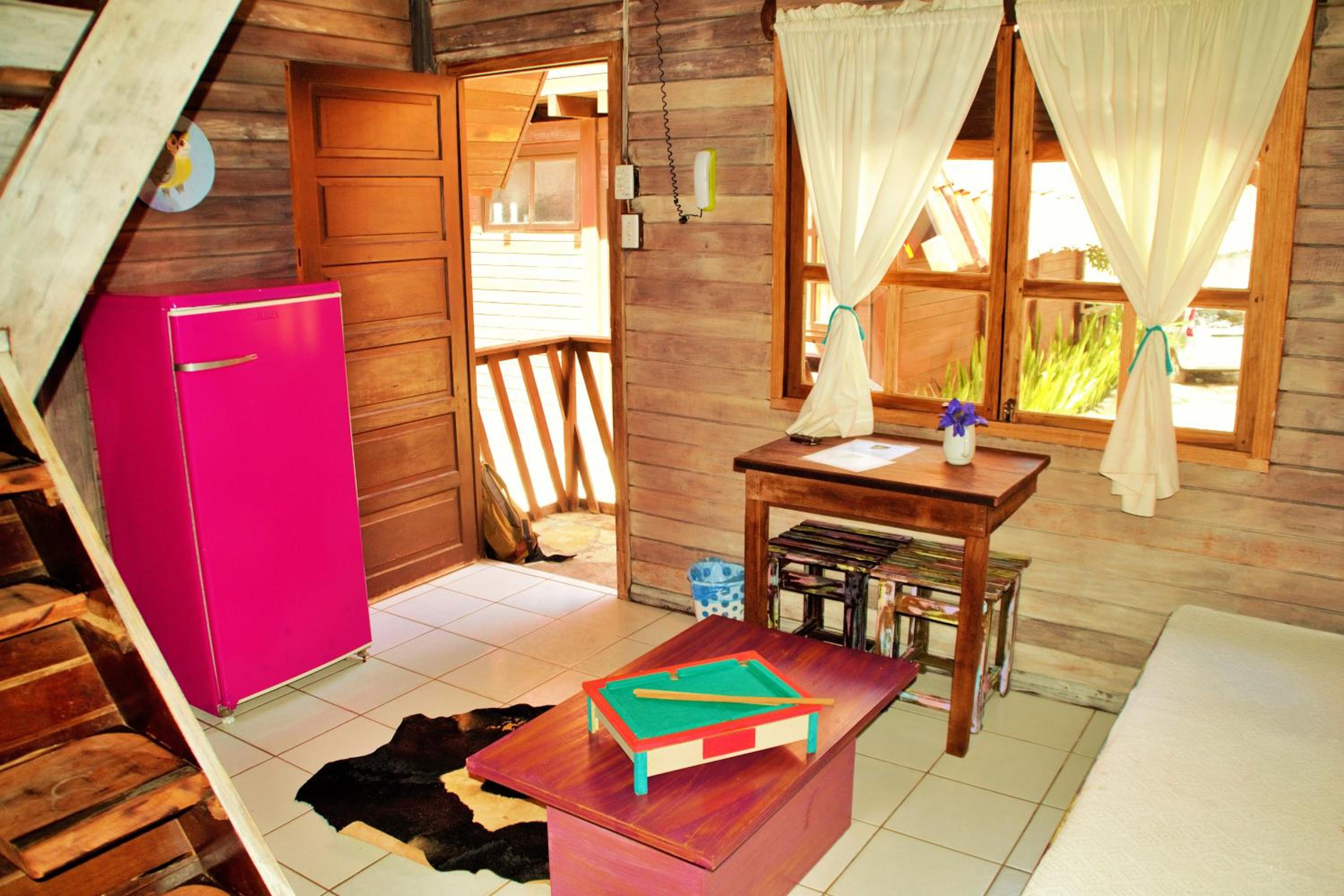 El patio, se siente como si estuvieras en un pequeño bosque, entorno natural donde se pueden ver pequeñas lagartijas, monos y sarigueñas. La relación calidad precio. Recepción 24 hs. Camas cómodas. Sin insectos/animales en la habitacion.