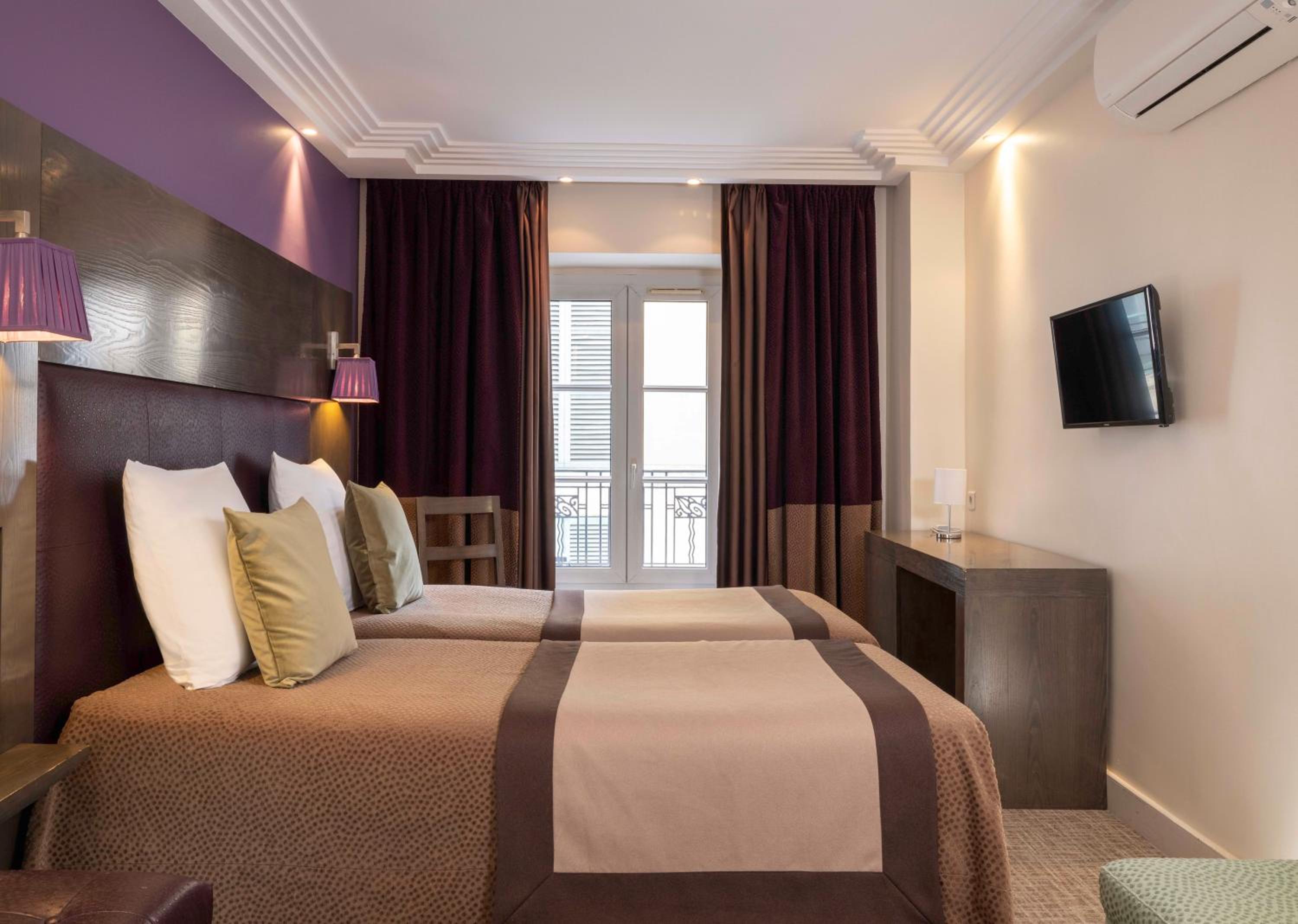 Comfortable Rooms: Relax in our air-conditioned rooms equipped with modern amenities such as a flat-screen TV, free Wi-Fi, and a work space. Some rooms even feature a charming balcony with panoramic views of Paris.