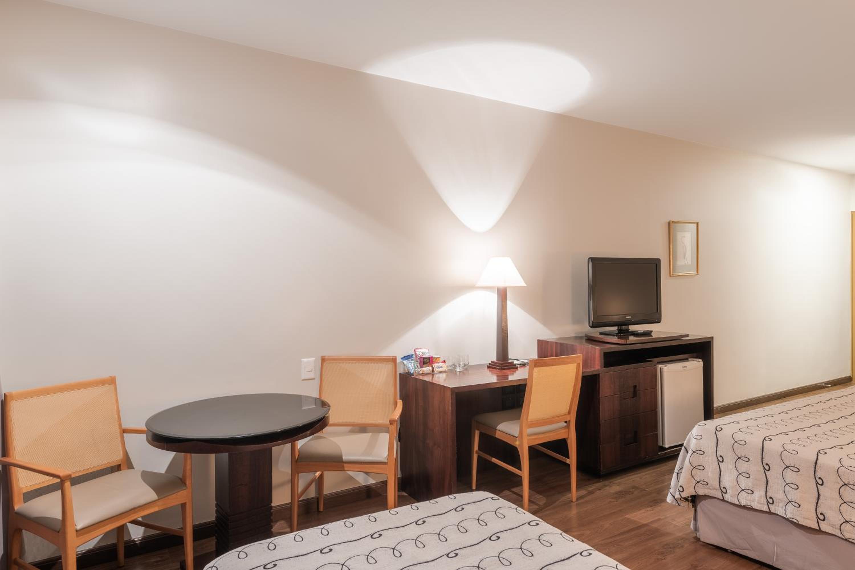 A acomodação é ótima, com cama confortável, ar condicionado ótimo, além de TV, frigobar e secador. Há também uma mesinha ótima para quem precisa trabalhar por lá. O banheiro é bonito e confortável.
