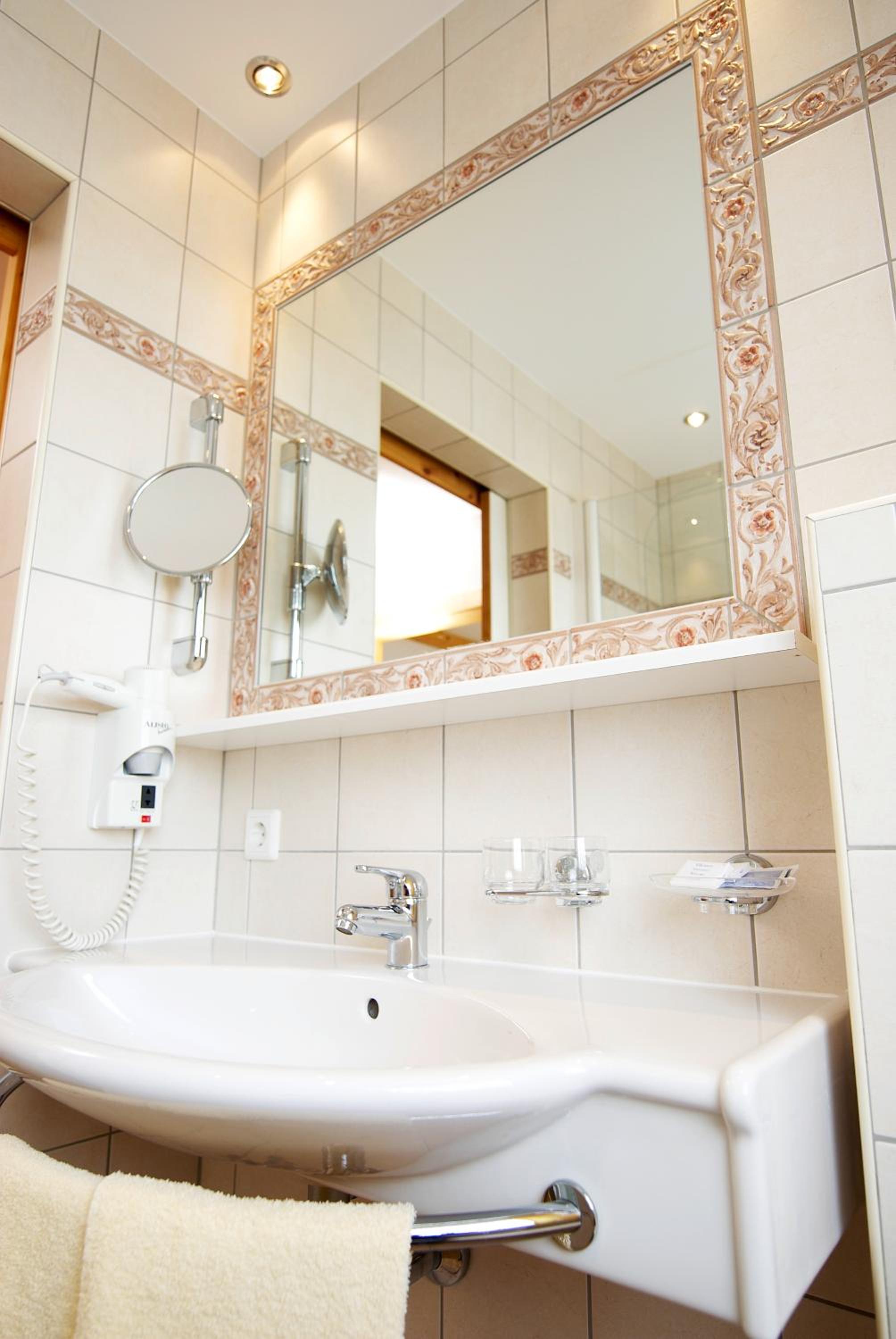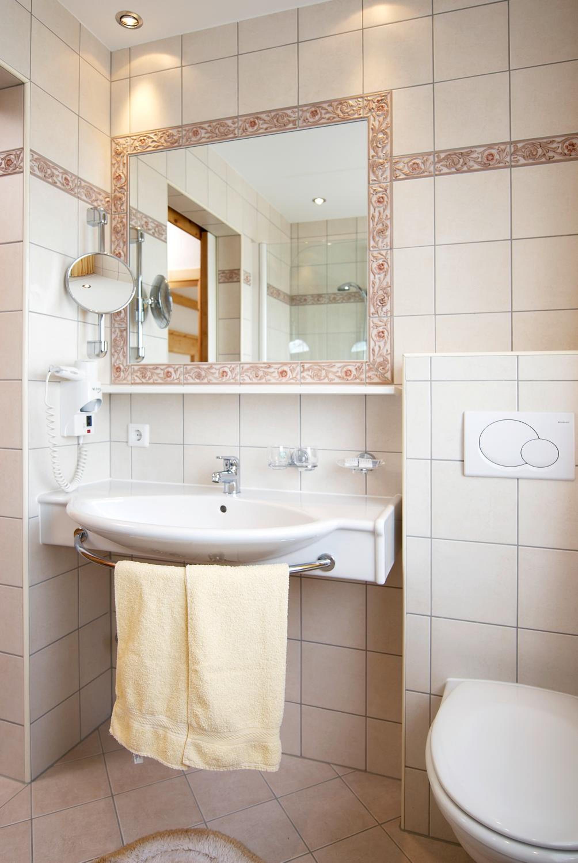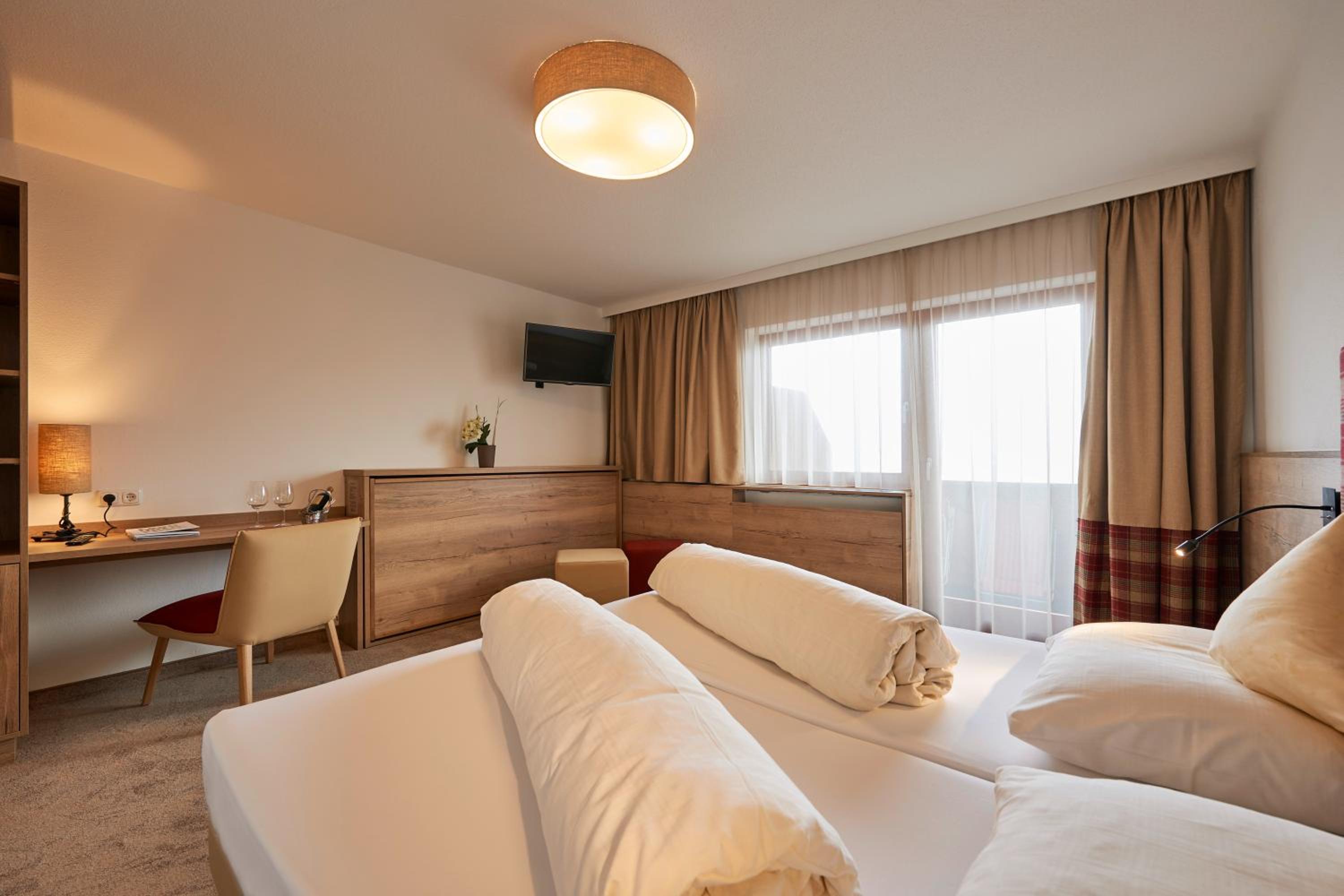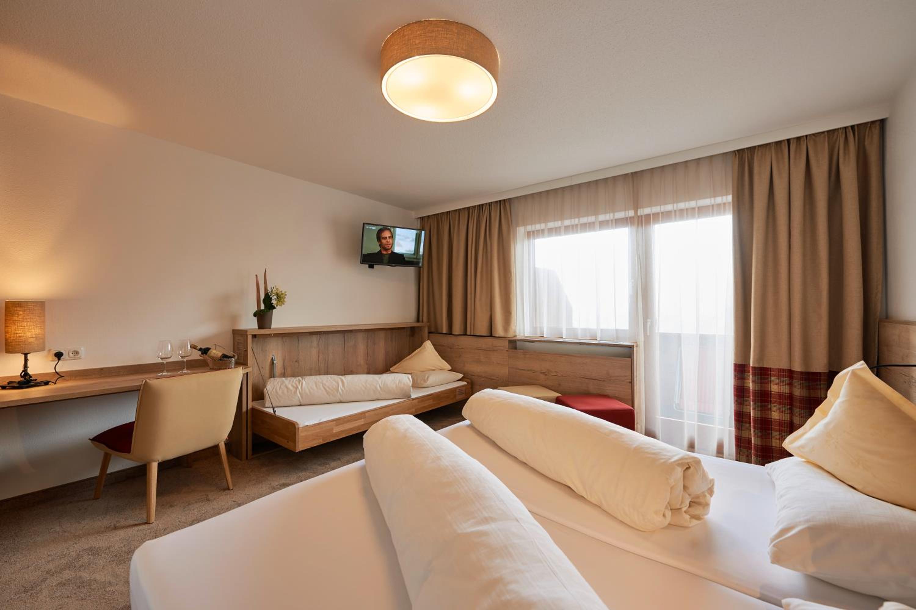 Alpine Charm with Modern Comfort: The spacious Alpine-style rooms with satellite TV, bathrooms featuring a hairdryer, and some with balconies boasting stunning mountain views ensure a comfortable stay with a touch of luxury.