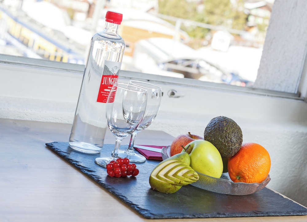 Breakfast is included and served from 7:00 a.m. to 10:00 a.m. at the resturant next to the reception. Although the selection is not extensive, it is more than sufficient to start the day. Guests can enjoy bacon, eggs, breads, salads, cold dishes, and daily sweets in a spacious dining area. A coffee machine is available in the room, and a water dispenser is conveniently located next to the reception desk. There are also several lounge areas for relaxation—a smaller one on the reception floor and a larger one on the fifth floor, where you can admire the magnificent view of the Eiger.