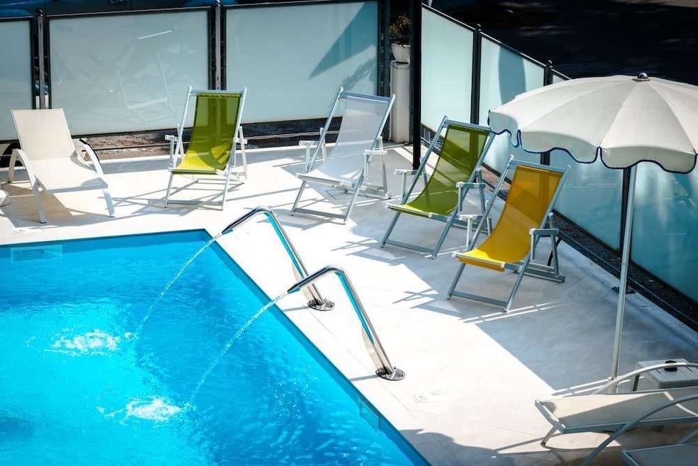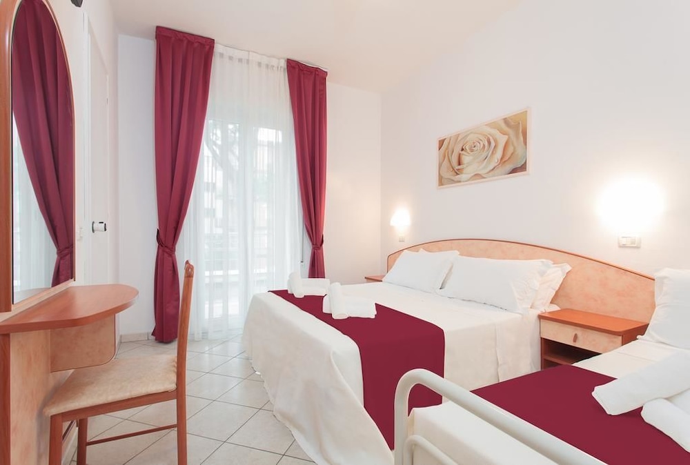 Sono stata in questo albergo per un week-and con degli amici.l'albergo è carino,non abbiamo usato la piscina ma sembrava pulita e con lettini per tutti,inoltre è comodissima la possibilità di avere ad uso gratuito lettini ed ombrellone ad uno stabilimento balneare bello e con tutto quello che serve a soli 5 min a piedi.le nostre camere erano nell'attico,un po' piccole ma la vista che si godeva da lassù,la terrazza curata con l'accesso privato ed i lettini prendisole privati appena fuori dalla camera hanno ripagato la scomodità.