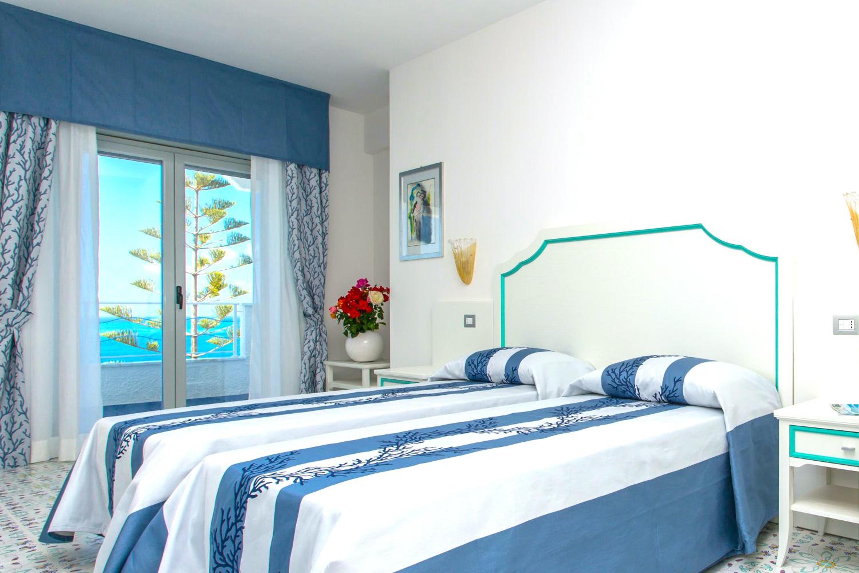 Hotel Ferretti in Diamante offers classic-style rooms with modern amenities including air conditioning, flat-screen TVs, and private balconies. Some rooms even provide stunning sea views, ensuring a comfortable and scenic stay for every guest.