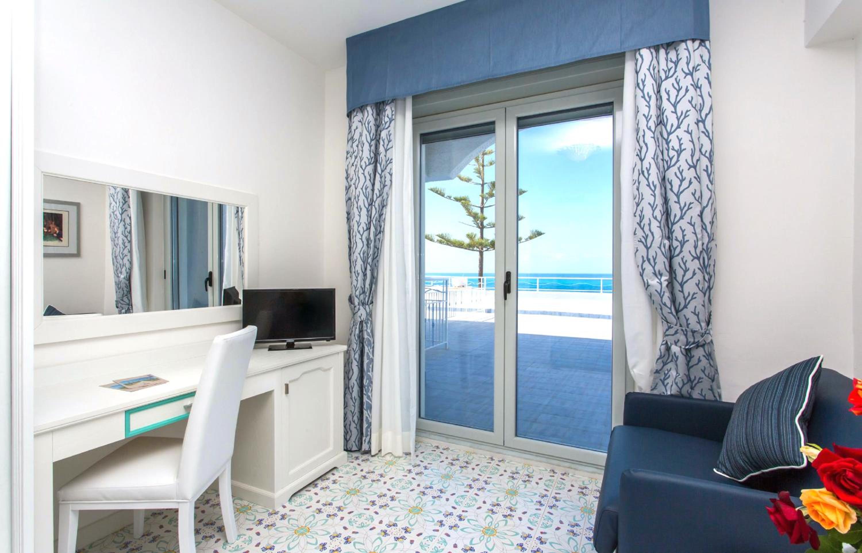 L’hotel est bien situé, les chambres un peu petites ont vue sur la mer avec une grande terrasse.