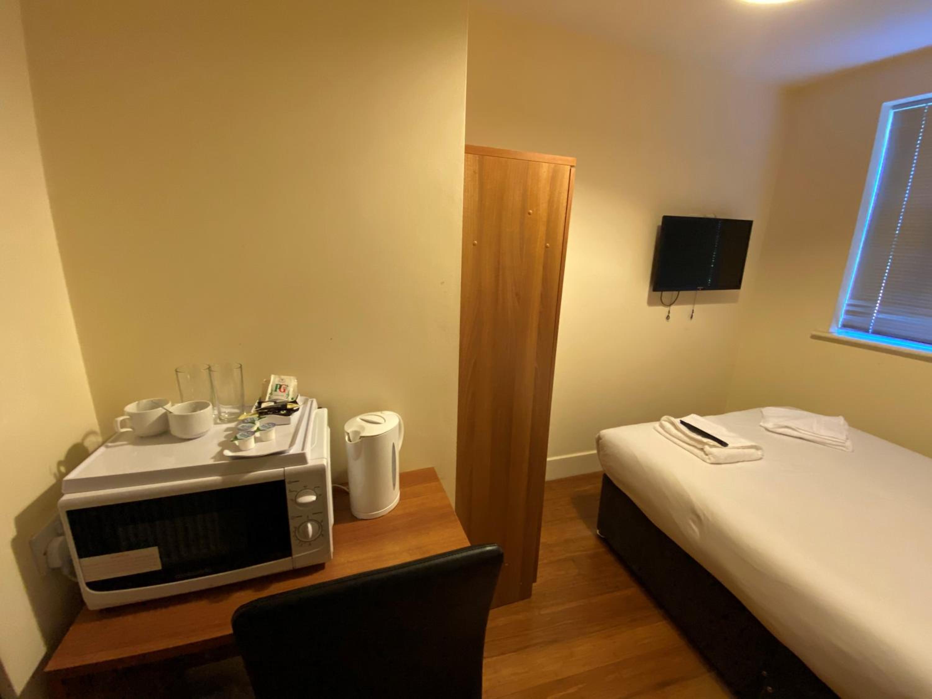 The room was well equiped, fridge,microwave, kettle. All clean and nearly new.