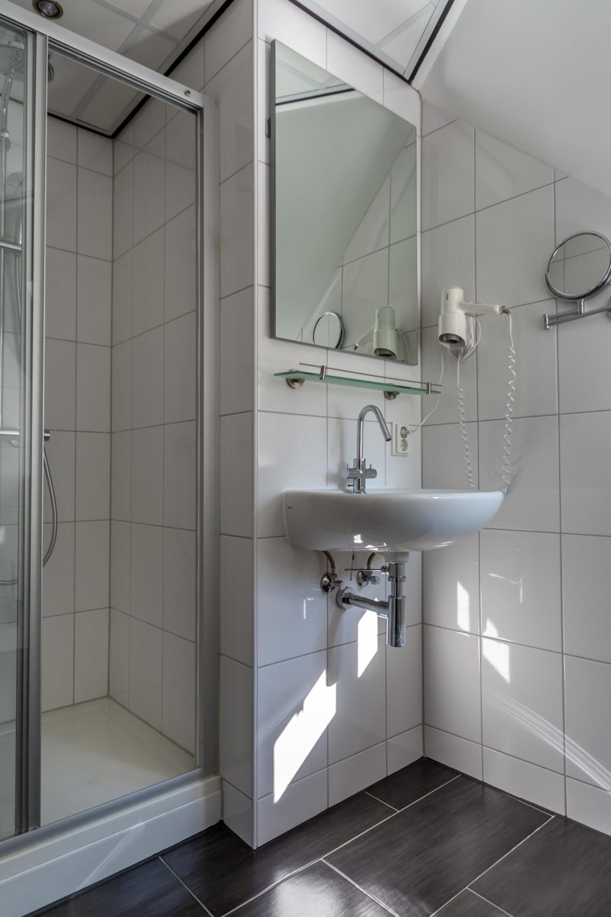 Douche cabine was nauw. Maar nu ben ik ook nogal breed