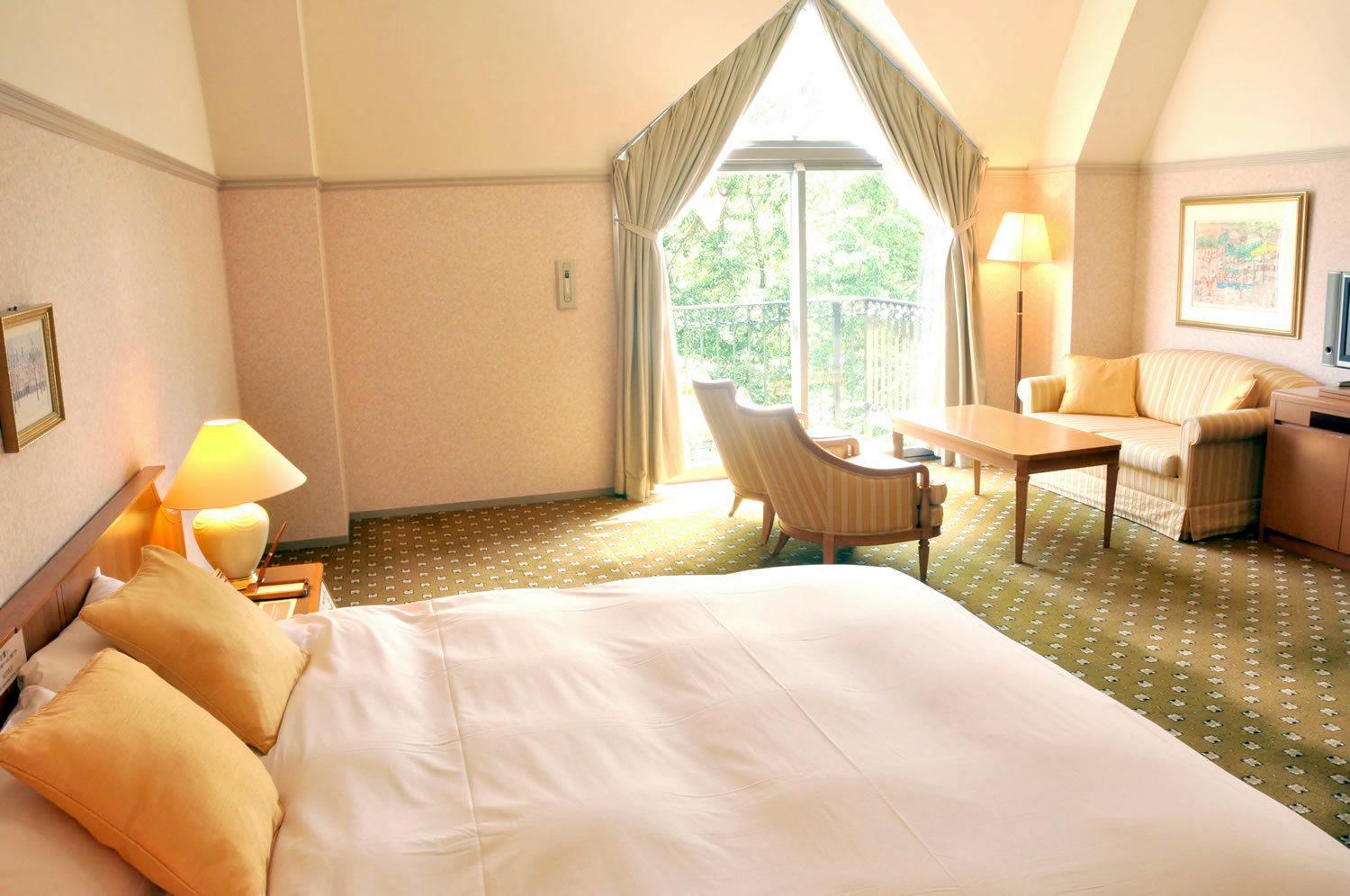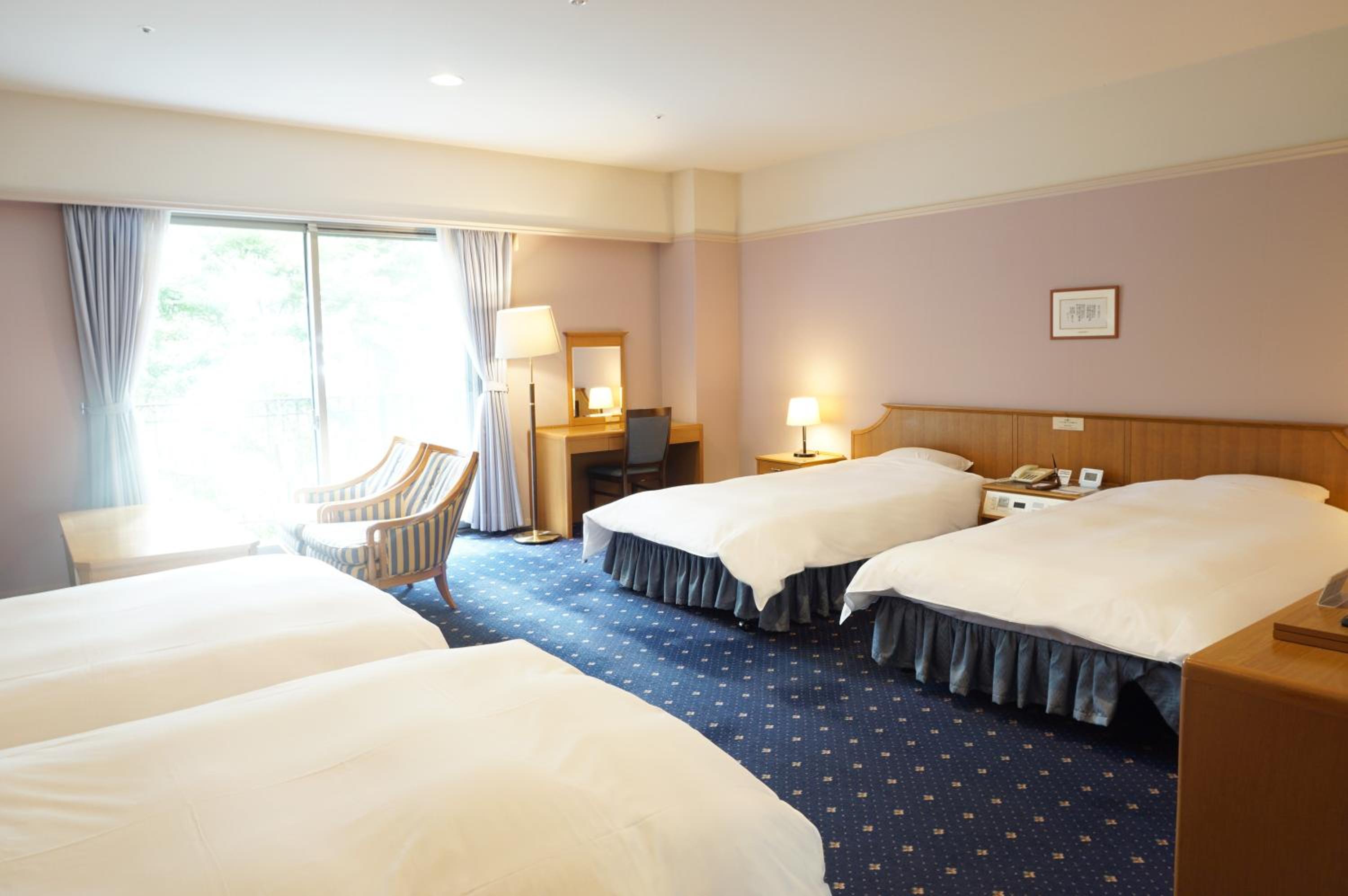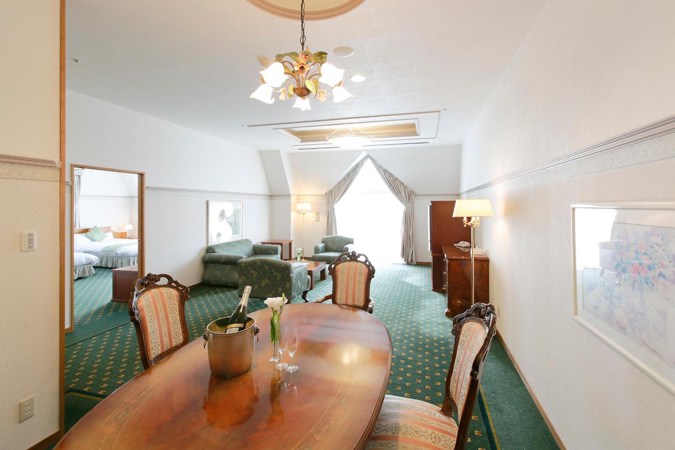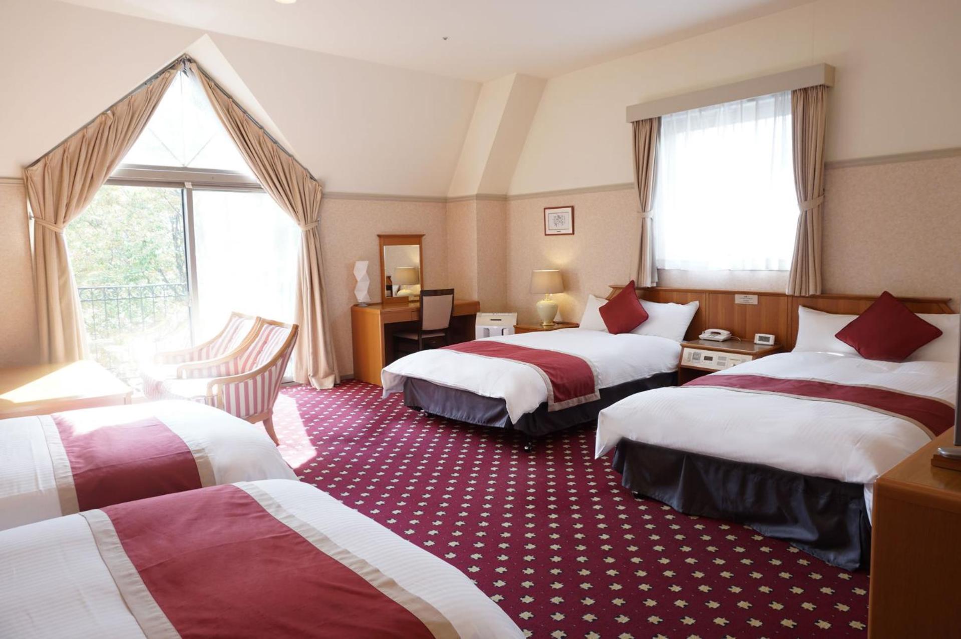 Hotel Floracion Nasu offers a unique experience with luxurious Western rooms and traditional Japanese-style rooms overlooking the picturesque Nasu Highland. Each room is equipped with modern amenities including a flat-screen TV, fridge, and complimentary green tea.