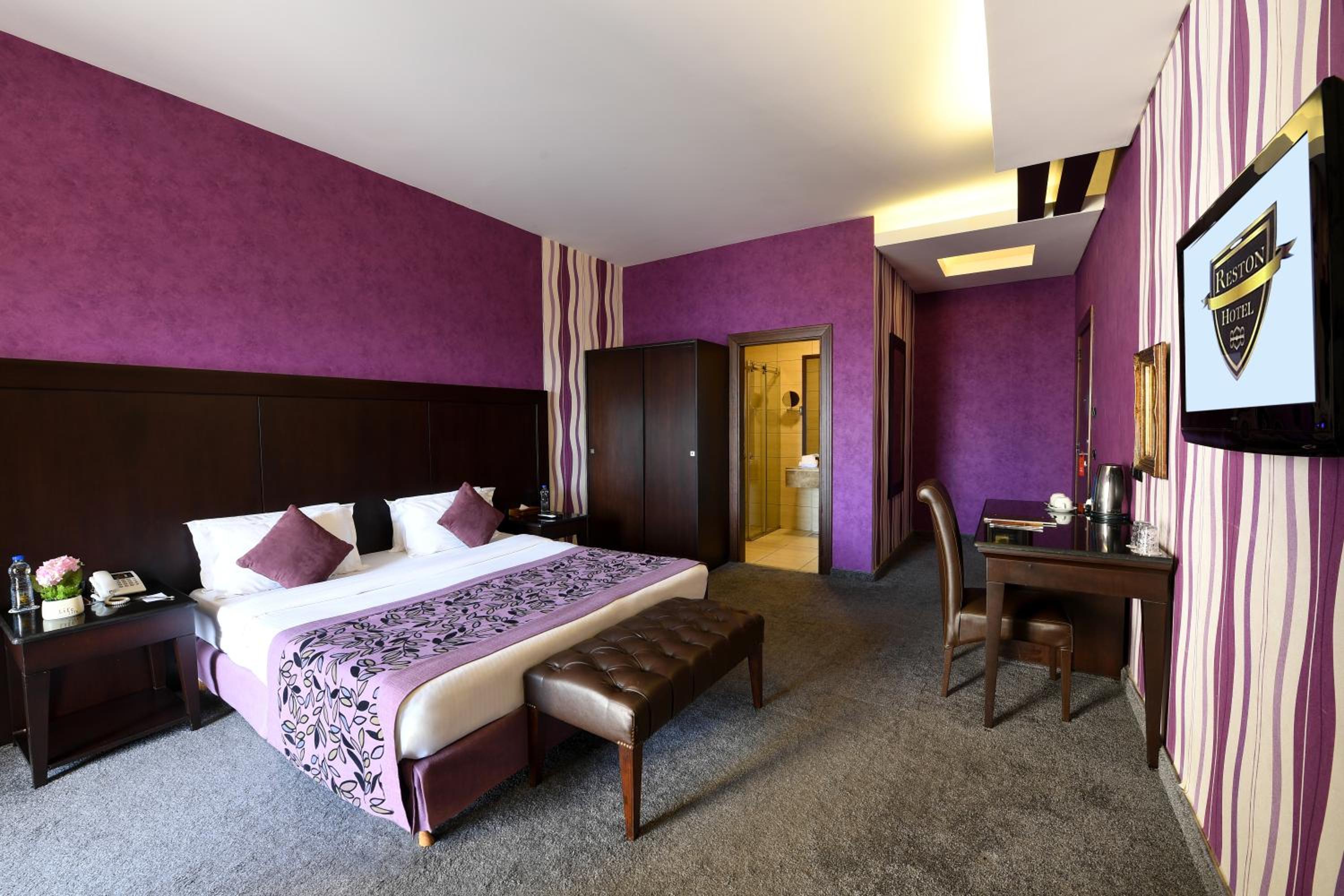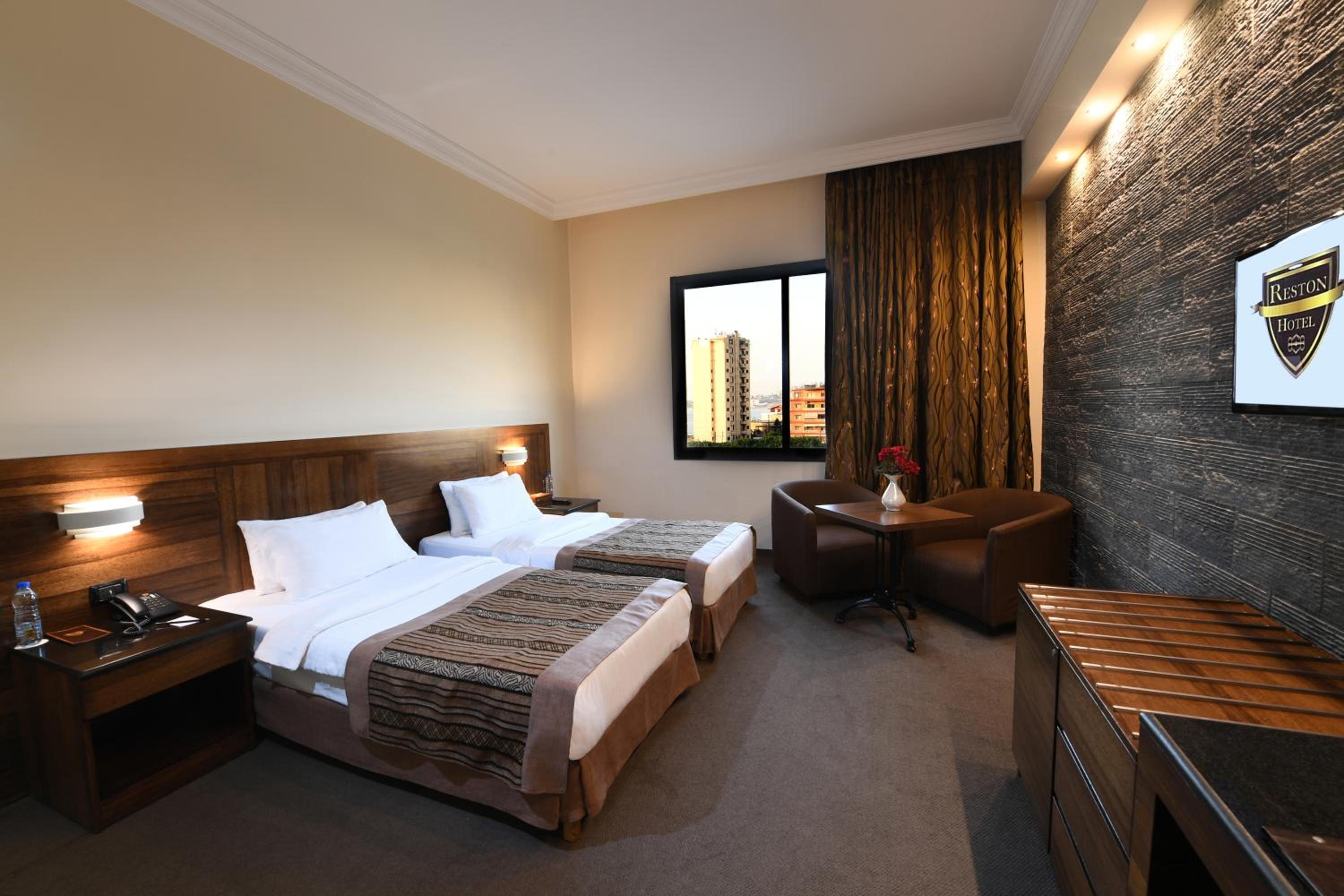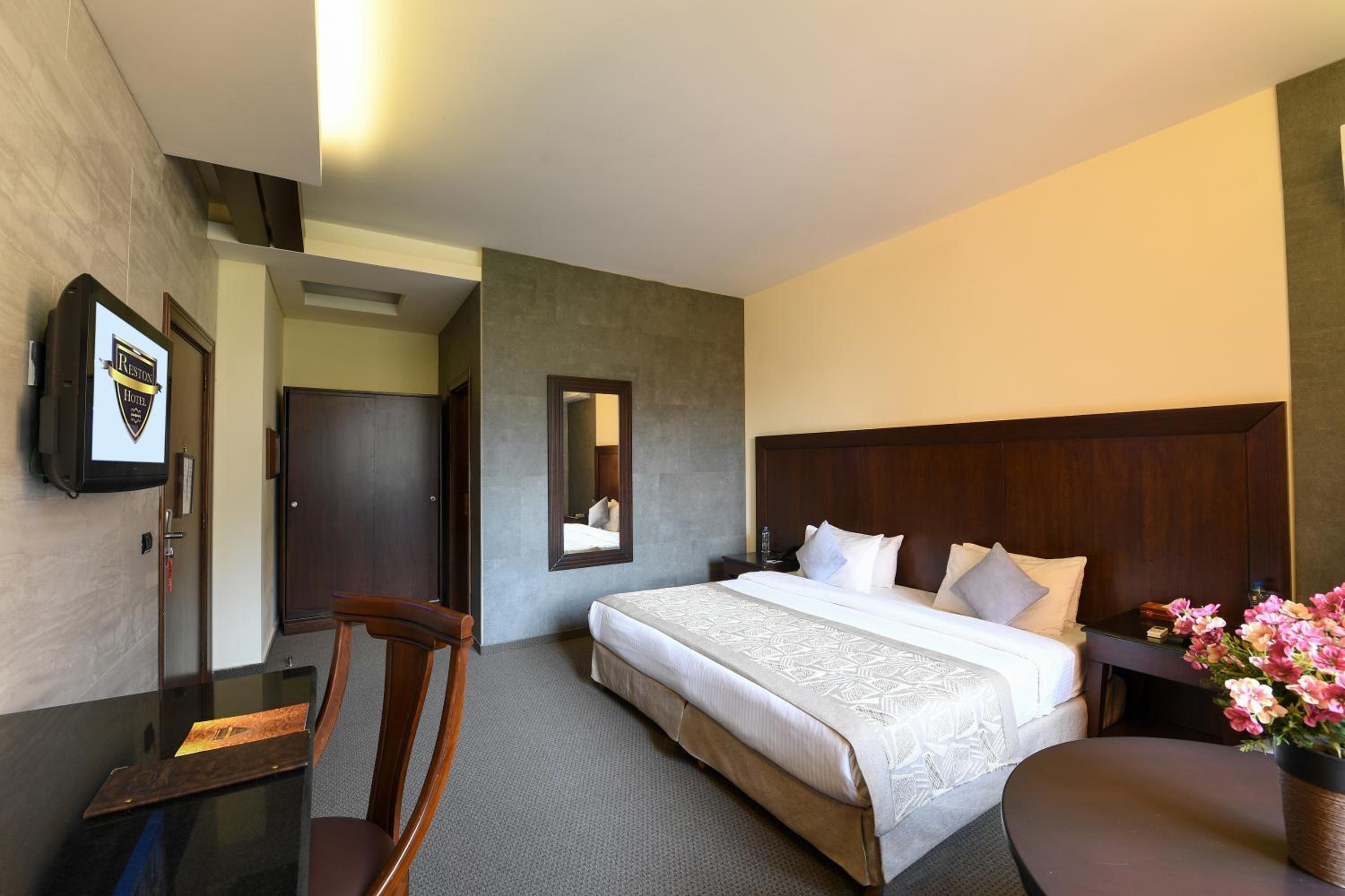 Spacious Rooms with Modern Amenities: The air-conditioned rooms at The Reston feature a satellite TV, minibar, and work desk. Enjoy the modern decor, tiled floors, and private bathroom for a comfortable stay.
