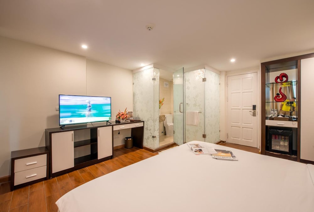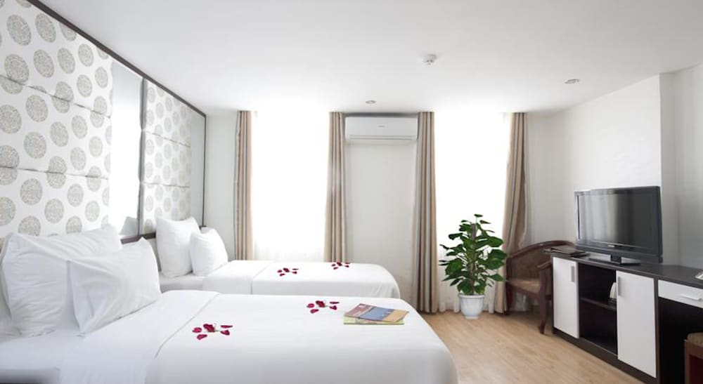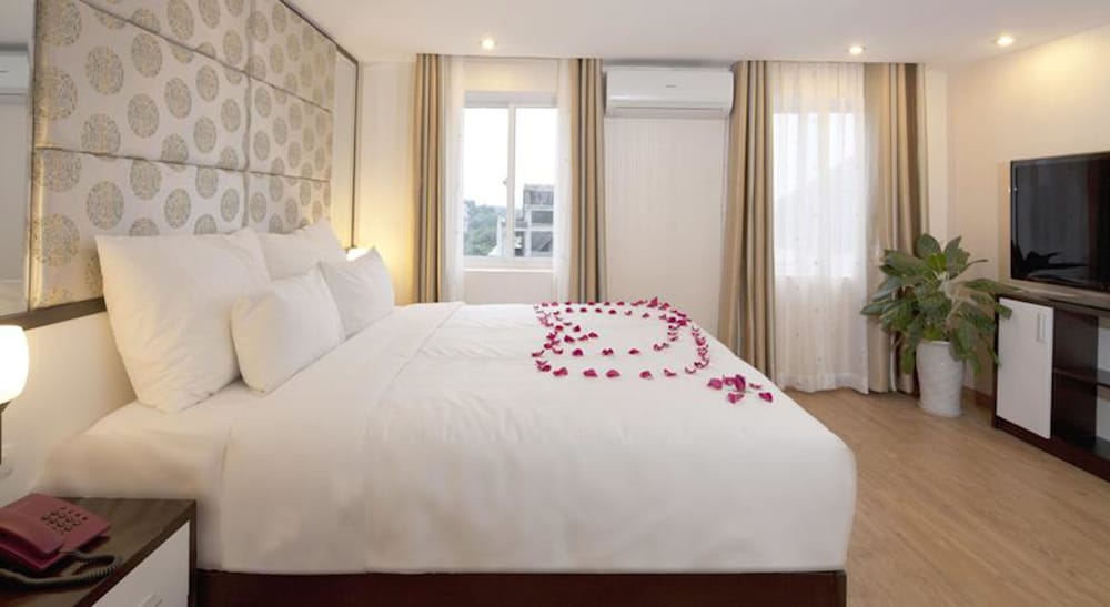 We stayed at the rising dragon for 4 nights and the staff were excellent. They gave us a room on a higher floor upon request to reduce noise and it was so quiet! They also gave lots of info for tours and how to get to Ha Long Bay. They allowed us to store our large bags there while we went on a 2 day trip to Ha Long Bay. The location is close to everything in old town and make walking feasible to the outdoor sites as well. Bed was comfortable with lots of pillows, AC was great, and shower was nice too.