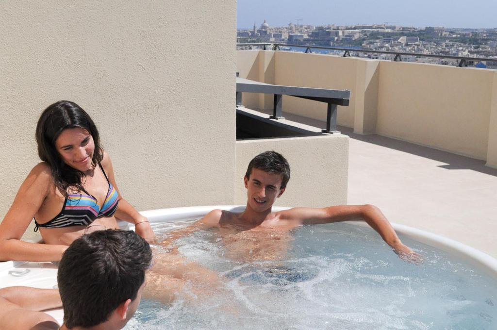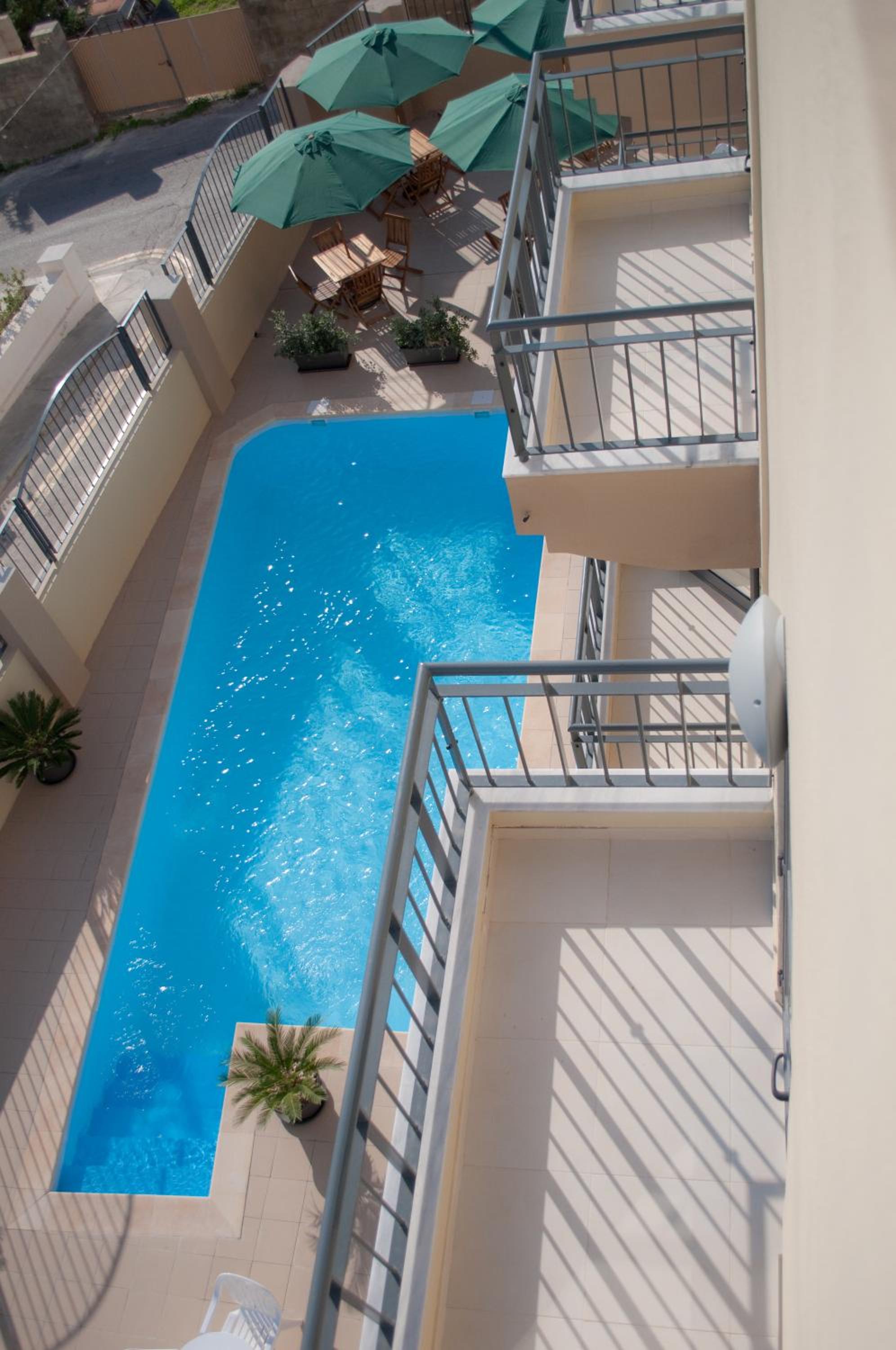 Unwind by the outdoor pool on the sun terrace, complete with loungers and parasols. Explore nearby sandy beaches or take a short drive to Malta International Airport.