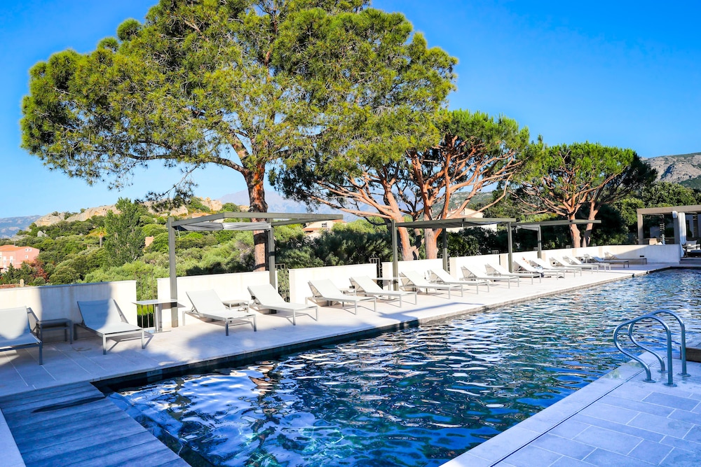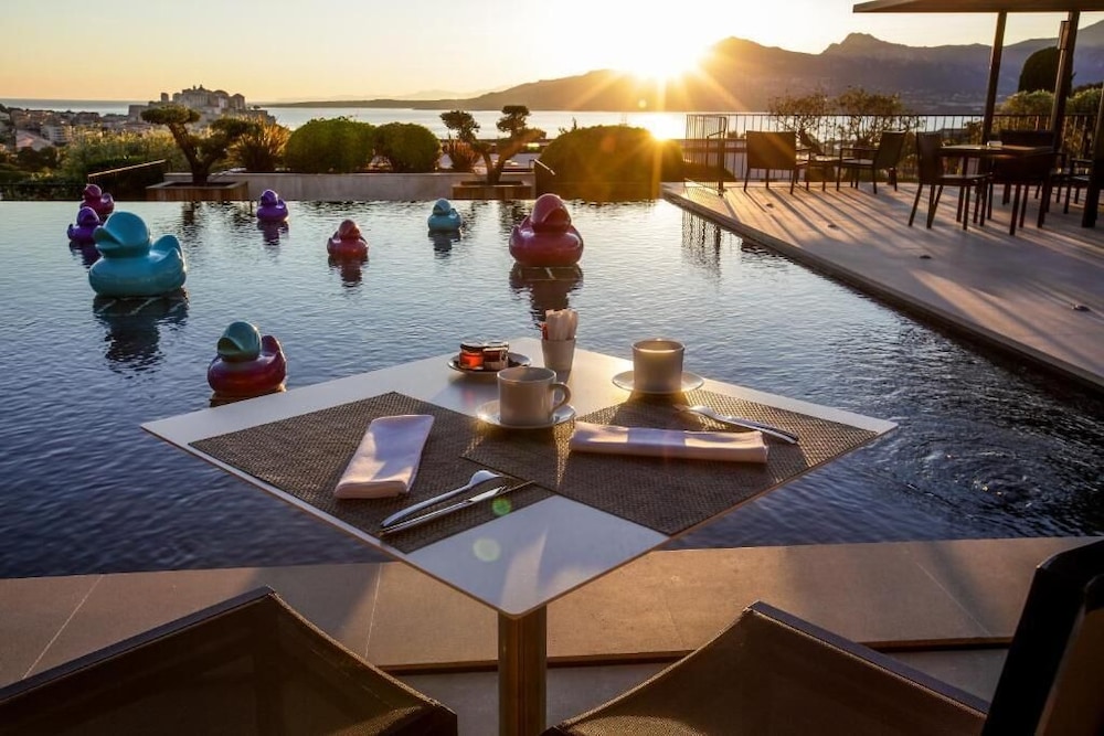 Très bel établissement. Ptit dej buffet de qualité ! Personnel attentif. Éloigné du centre de Calvi mais mise à dispo d’une navette A/R, payante : €15/j. très pratique et jusqu’à 23h. Chauffeurs flexibles et assez peu d'attente. Piscine extra, vue exceptionnelle sur tout Calvi et la Citadelle. Bassin pour les enfants. Par contre, douche extérieure chaude, impossible d’avoir du froidf et quand il fait 35 degrés, ce n’est pas très rafraîchissant !! 1 restaurant de qualité mais 2 j par semaine carte bistrot et c’est vraiment bistrot, soit succinct !