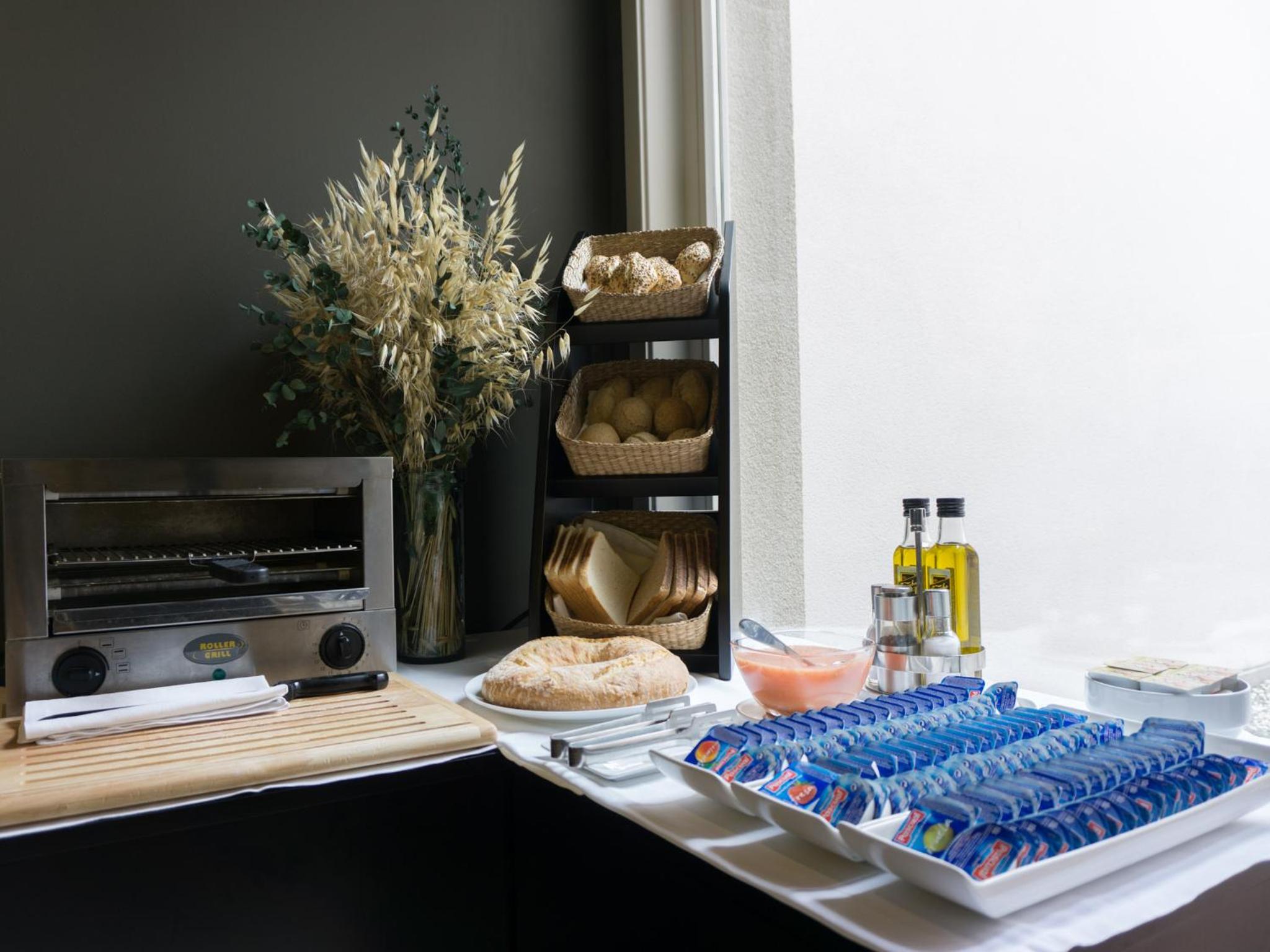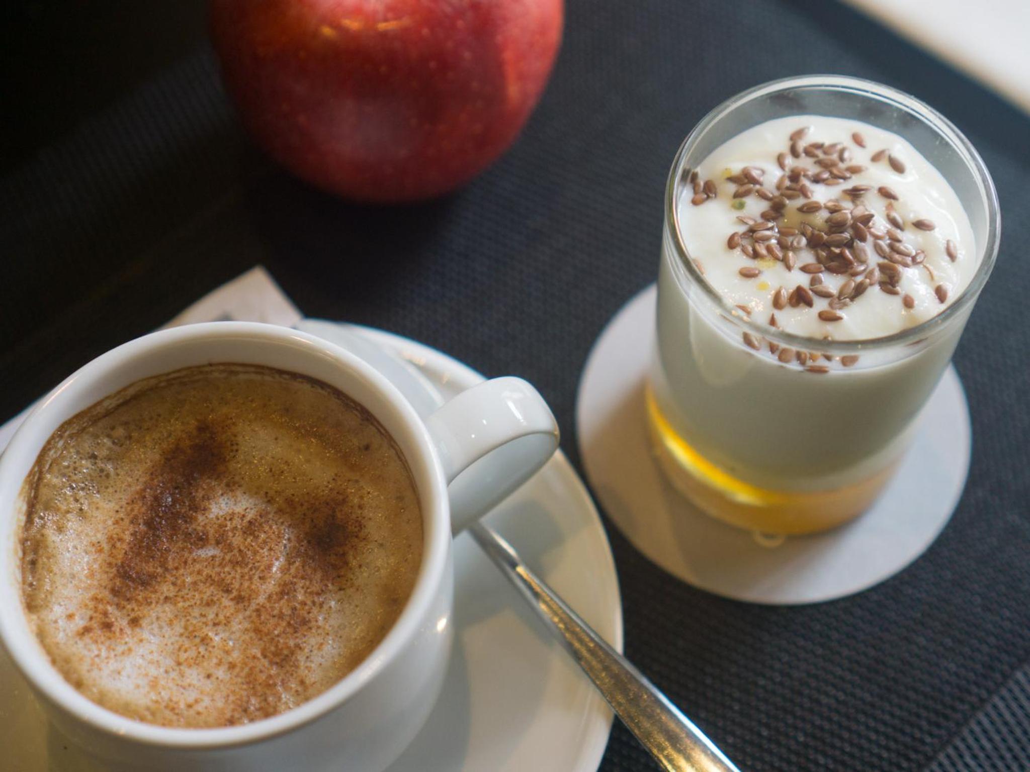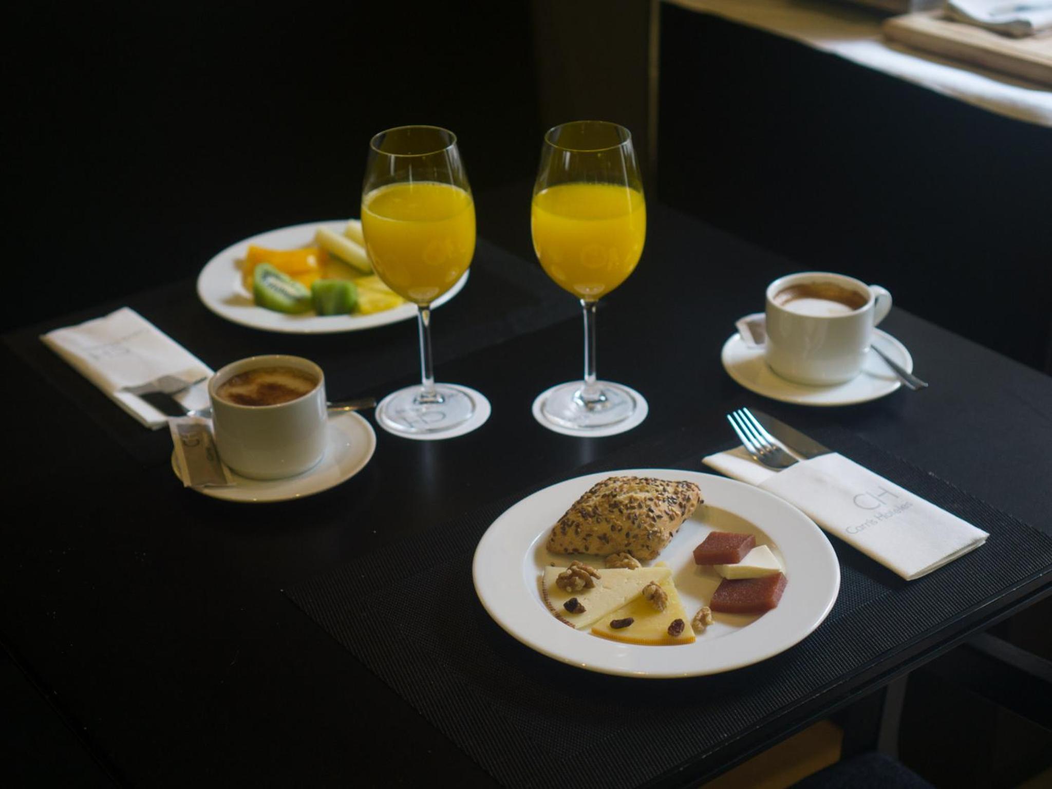 El desayuno genial porque nos trajeron el café de la cafetería y estaba muy bueno